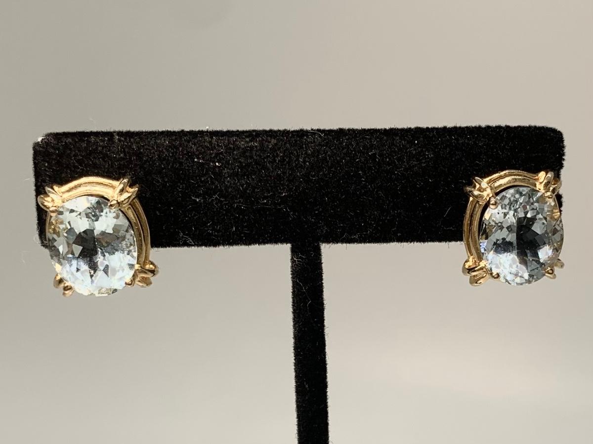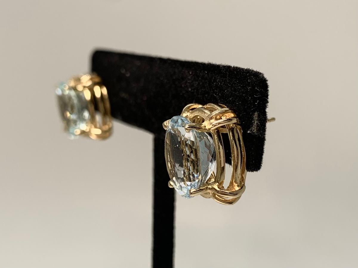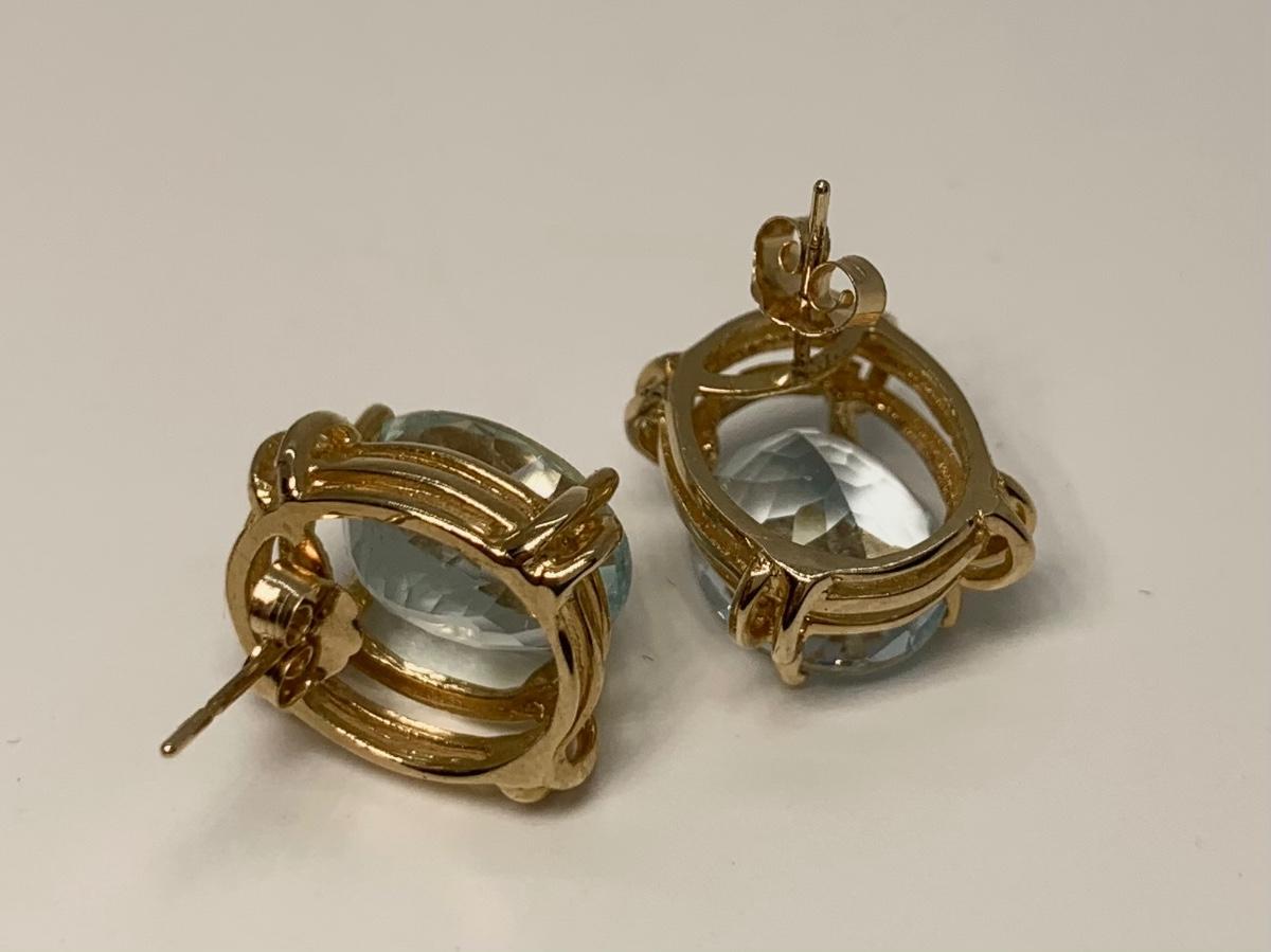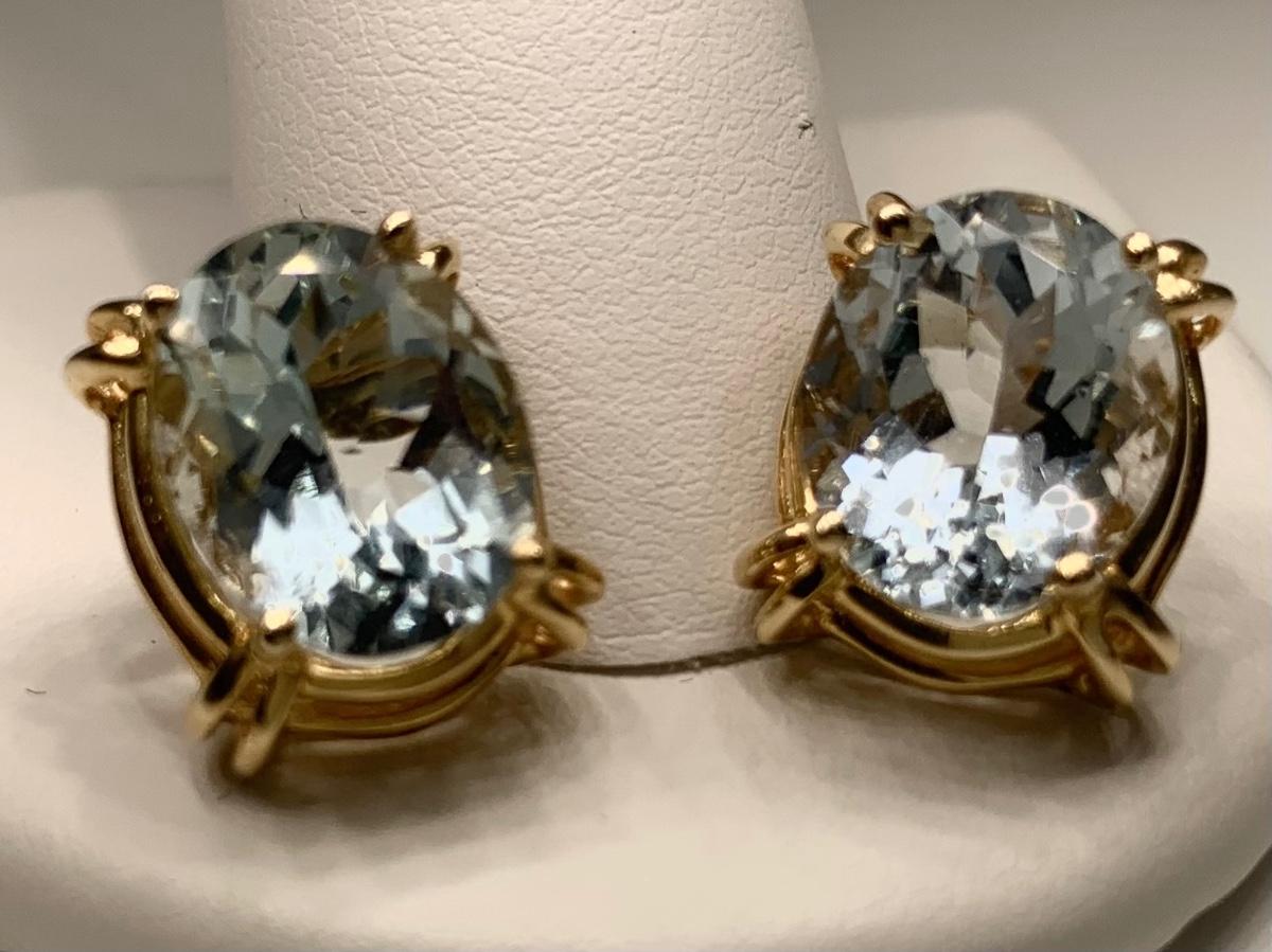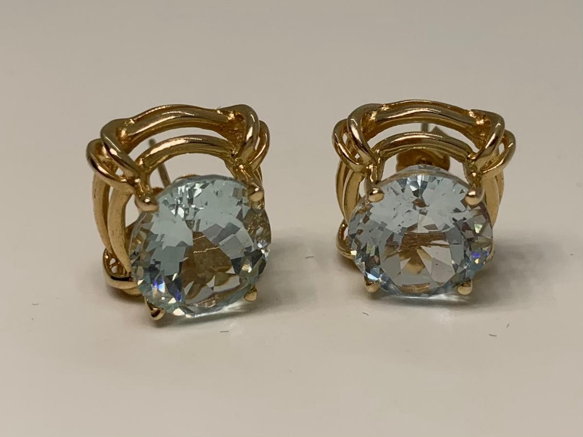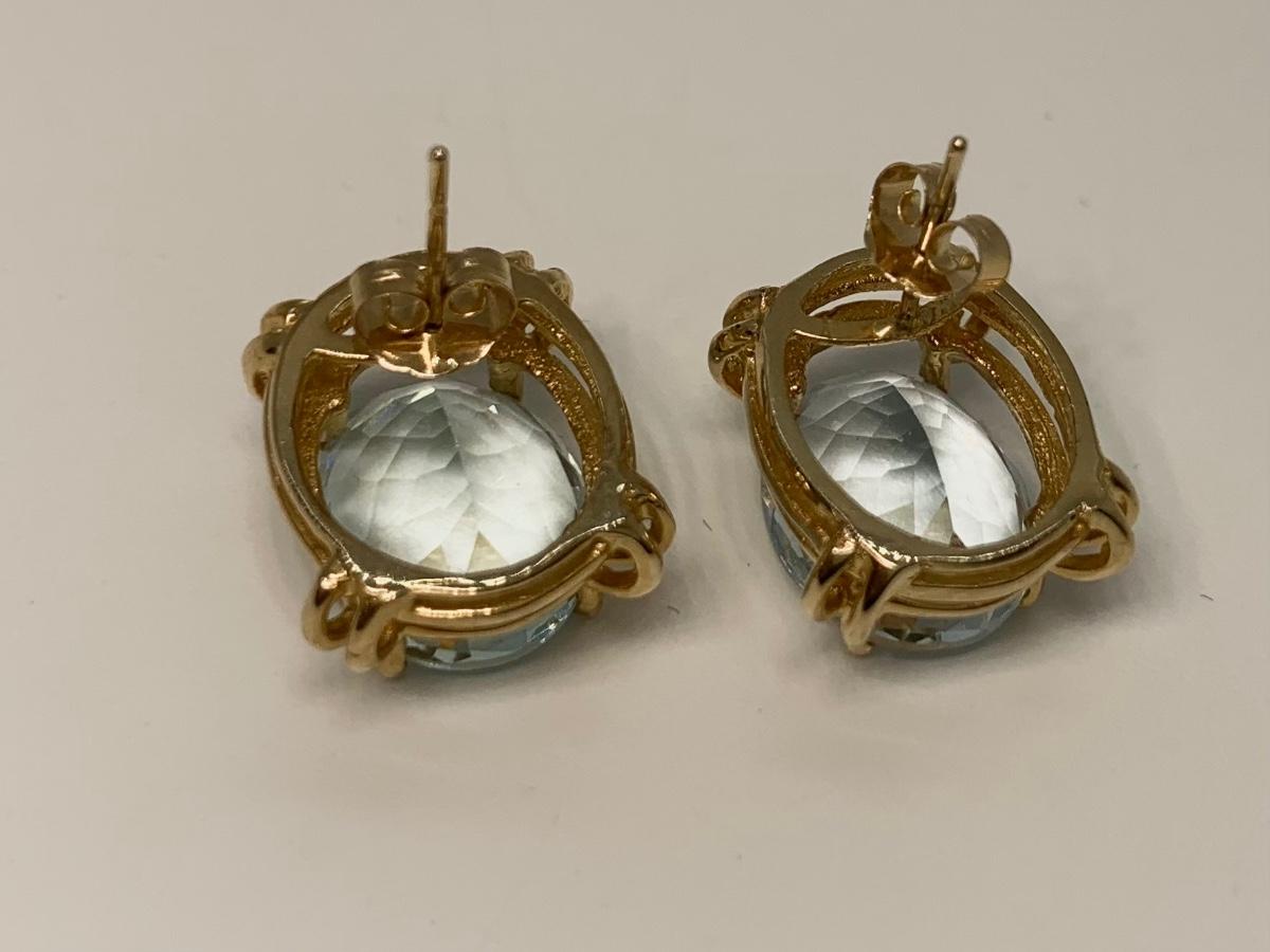 Tw 5g 14k Aqua Marine Necklace & Pierced Earrings Set  18.5" l chain