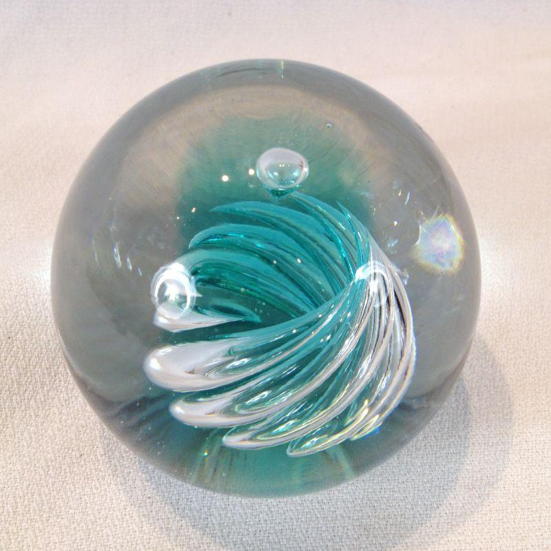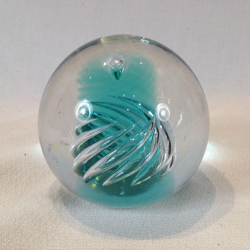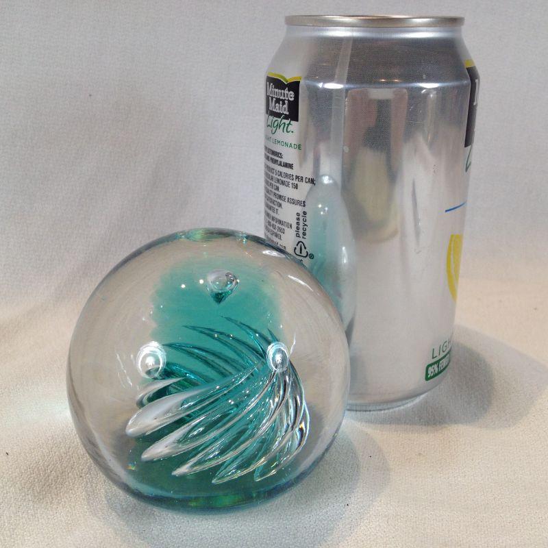 This lot is for a very attractive Ball Paper Weight with a touch of beautiful Aqua in the center swirl. It measures 3-inches diameter and in very good condition. No makers mark. From the Ft. Lauderdale estate.