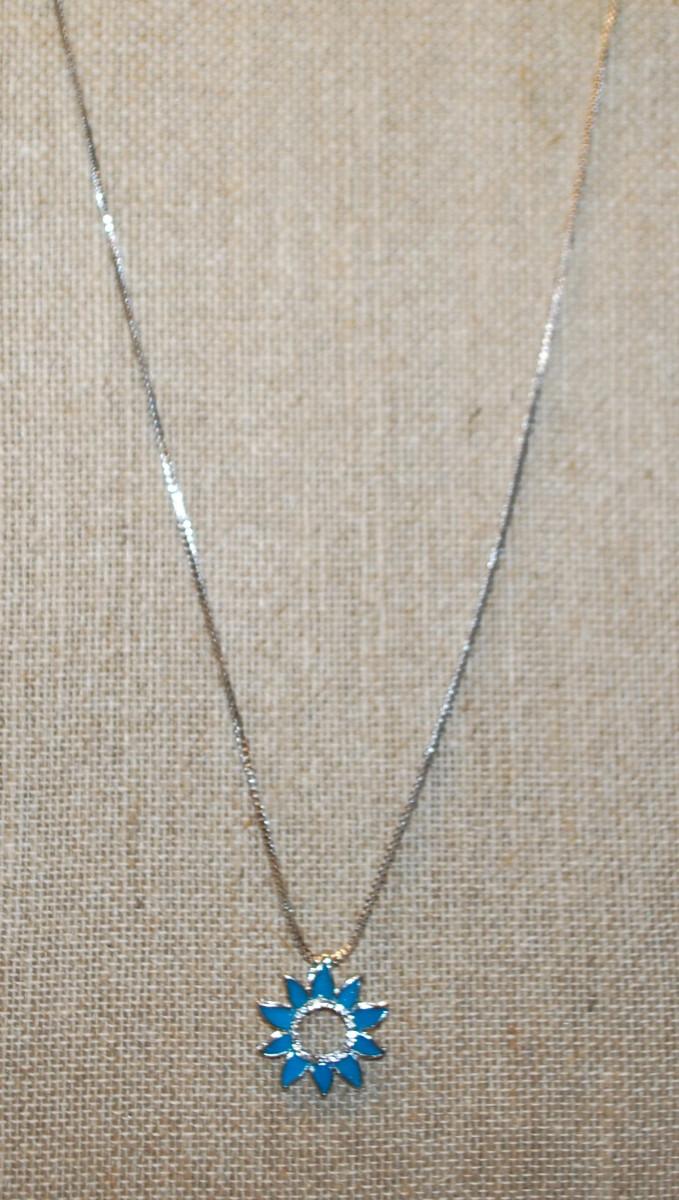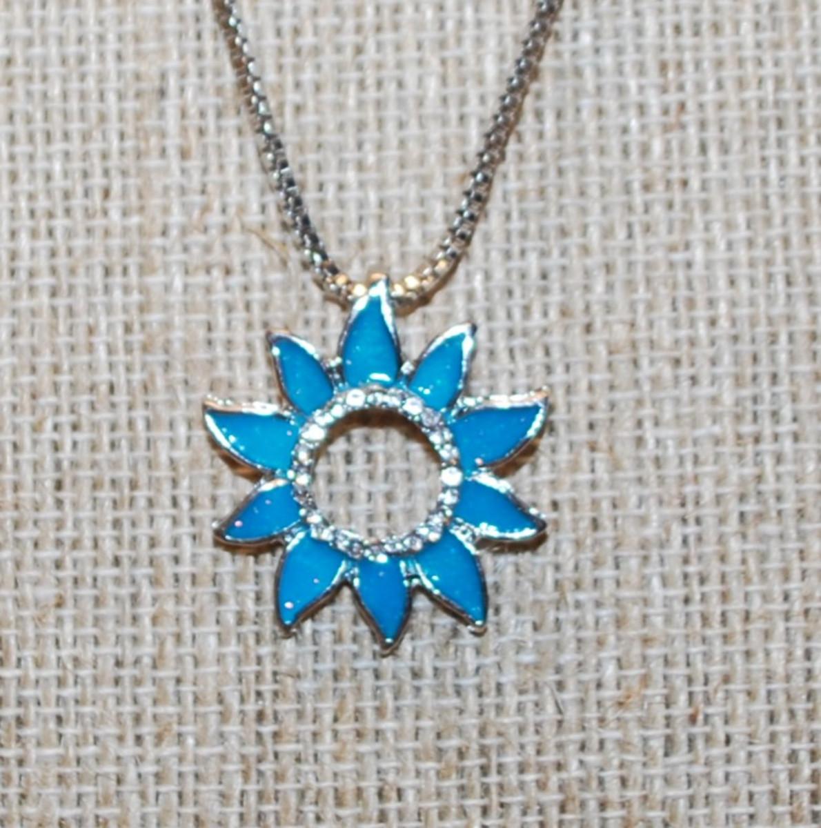 Aquamarine 10 Point Star Flower PENDANT (¾" circ.) on a Silver Tone ADJUSTABLE Chain 17"-19" L