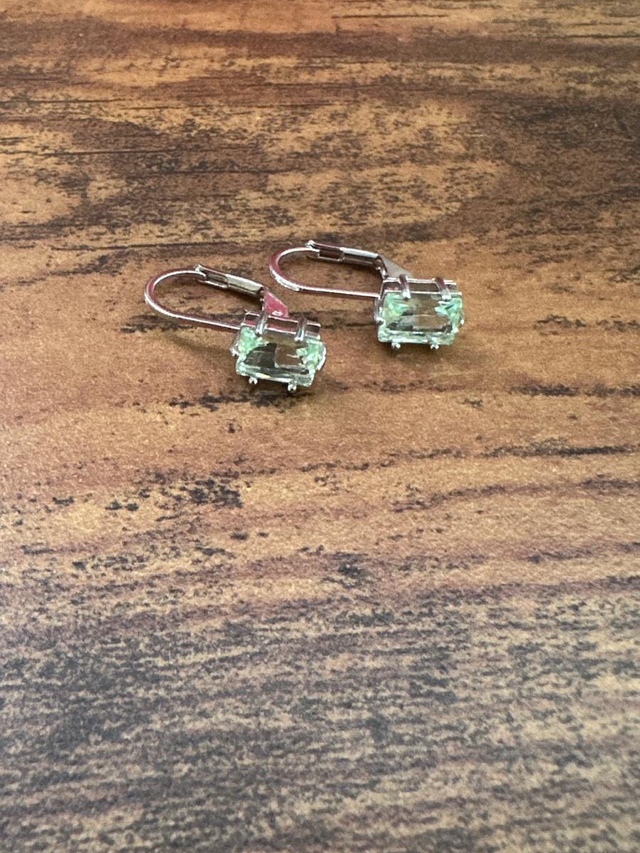 Aquamarine Colored Emerald Cut Earrings