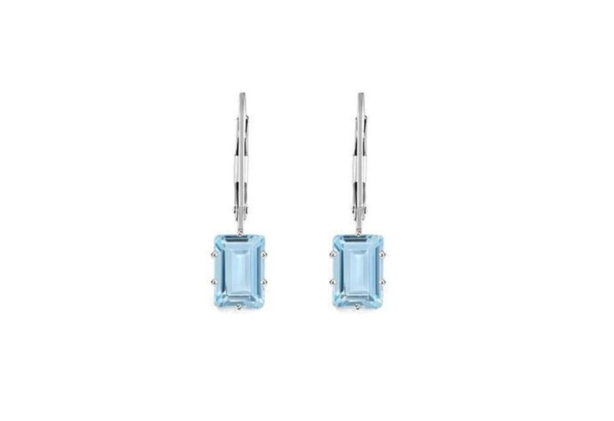Aquamarine Colored Emerald Cut Earrings