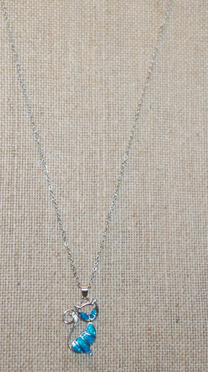 Aquamarine "Fancy Cat" PENDANT (1¼" x ¾") on a Silver Tone ADJUSTABLE Chain 17"-19" L
