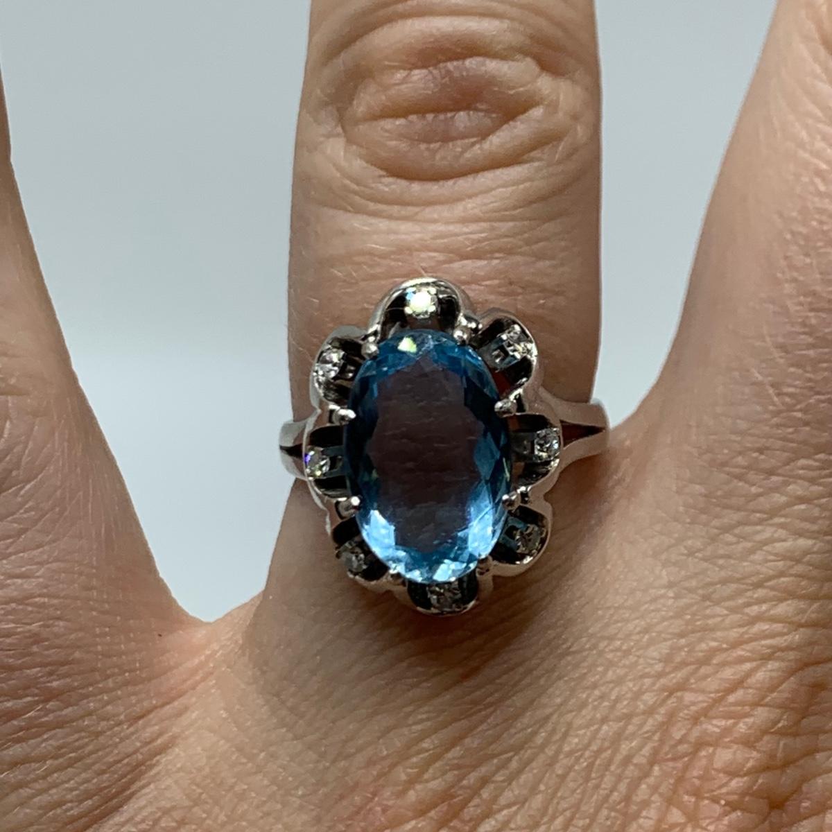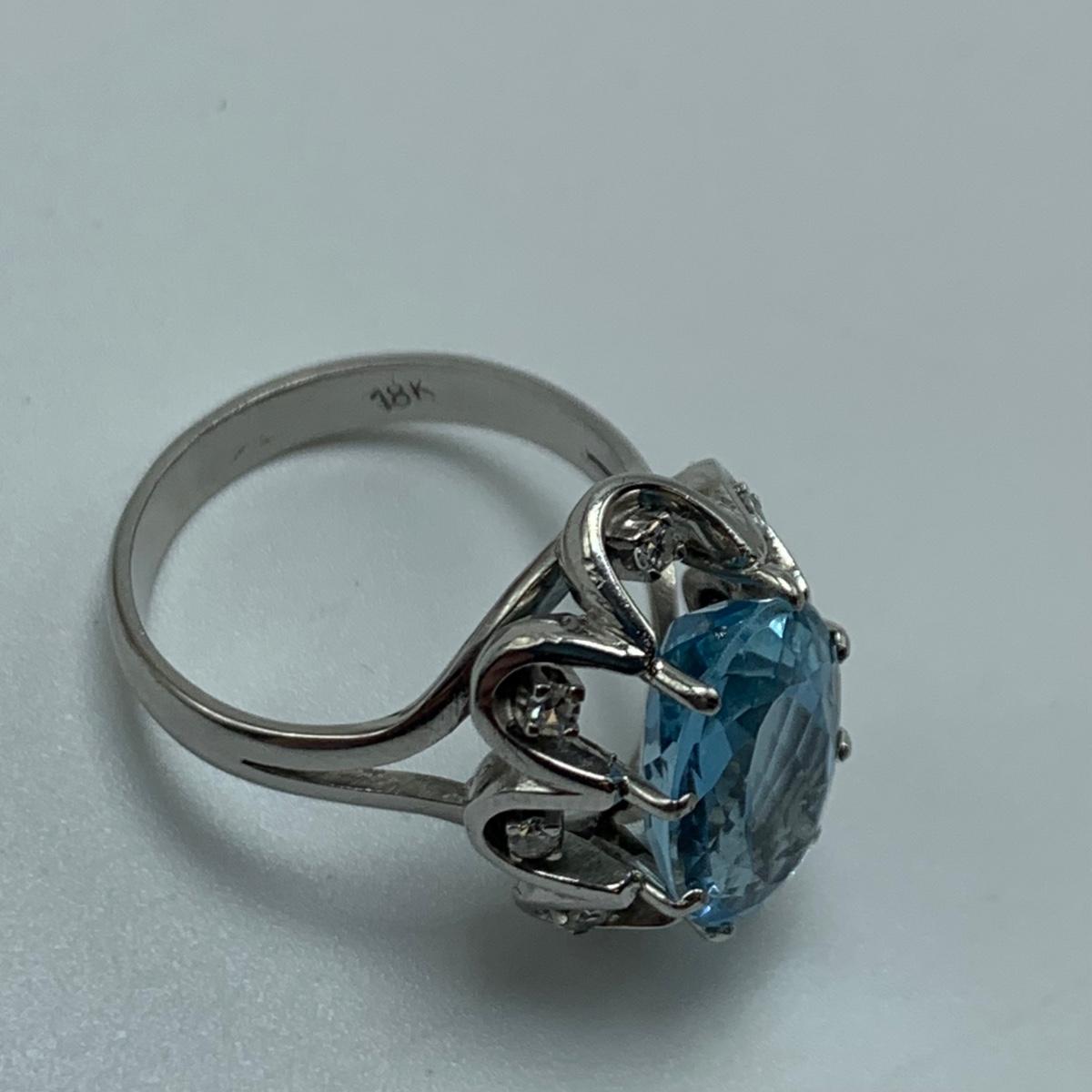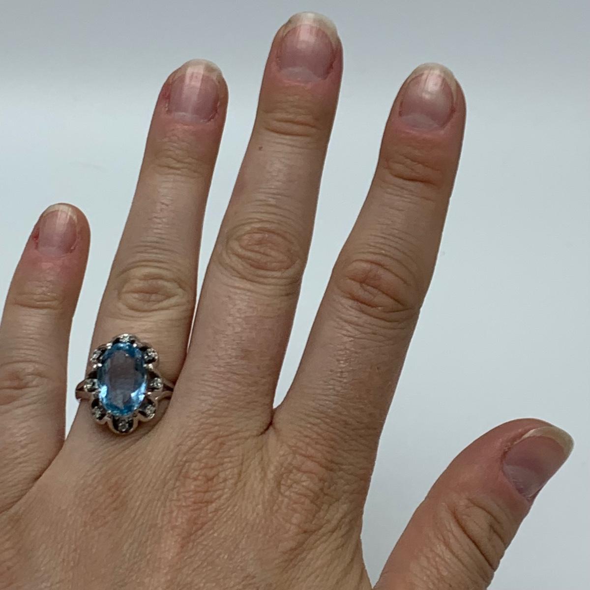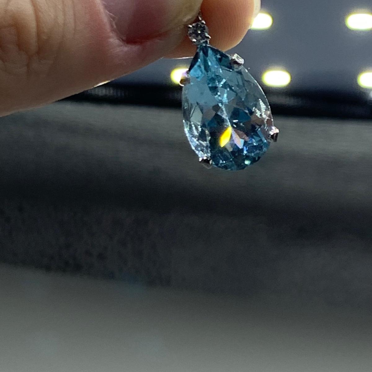 Gorgeous pear cut faceted gemstone that is aquamarine in color, with a small rhinestone sitting on top. Pendant is on a 15.5” chain marked 750 (signifying 18K). The gemstone on the ring is also aquamarine colored and is surrounded by eight small rhinestones in a floral shaped setting. Ring is stamped 18K. All sales are final. No returns or refunds. Please bid accordingly.