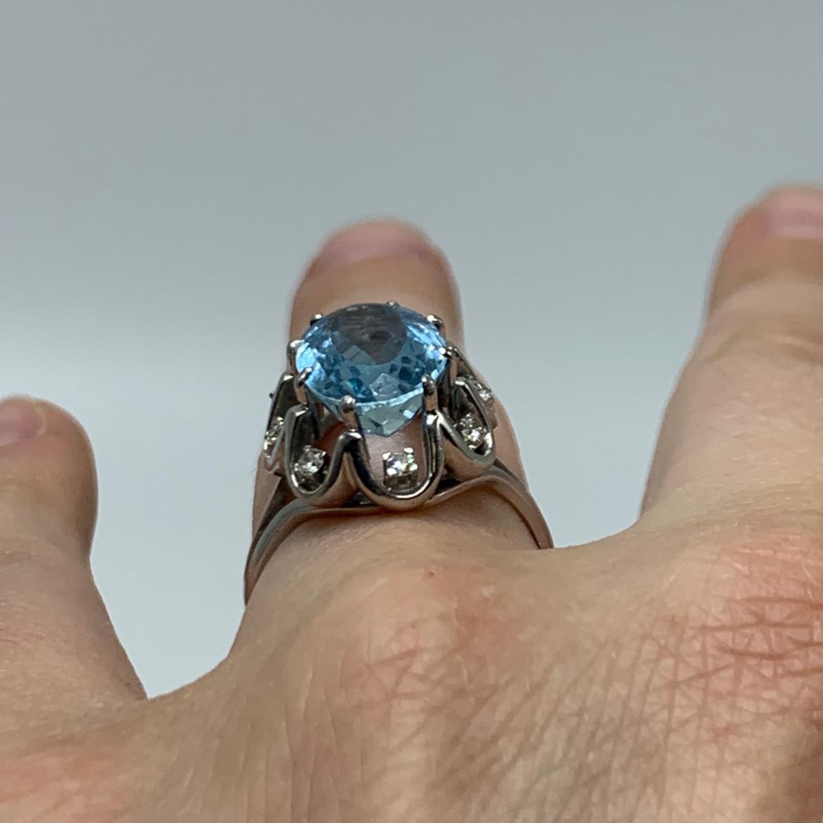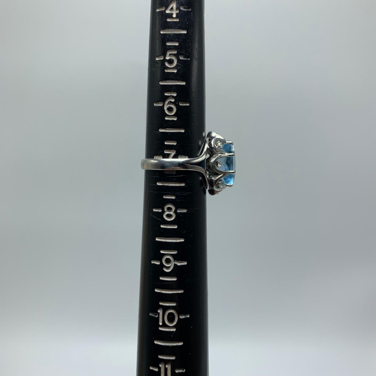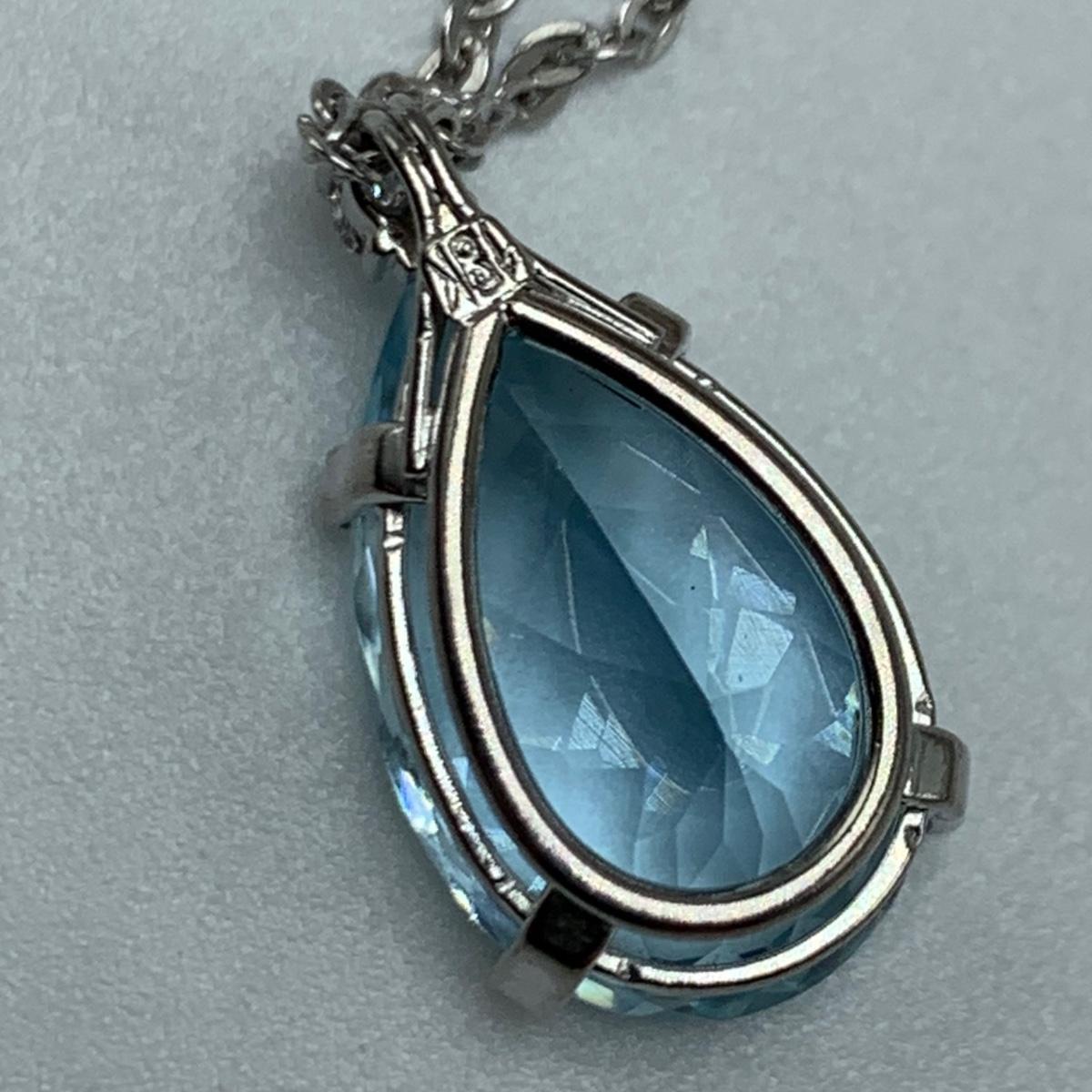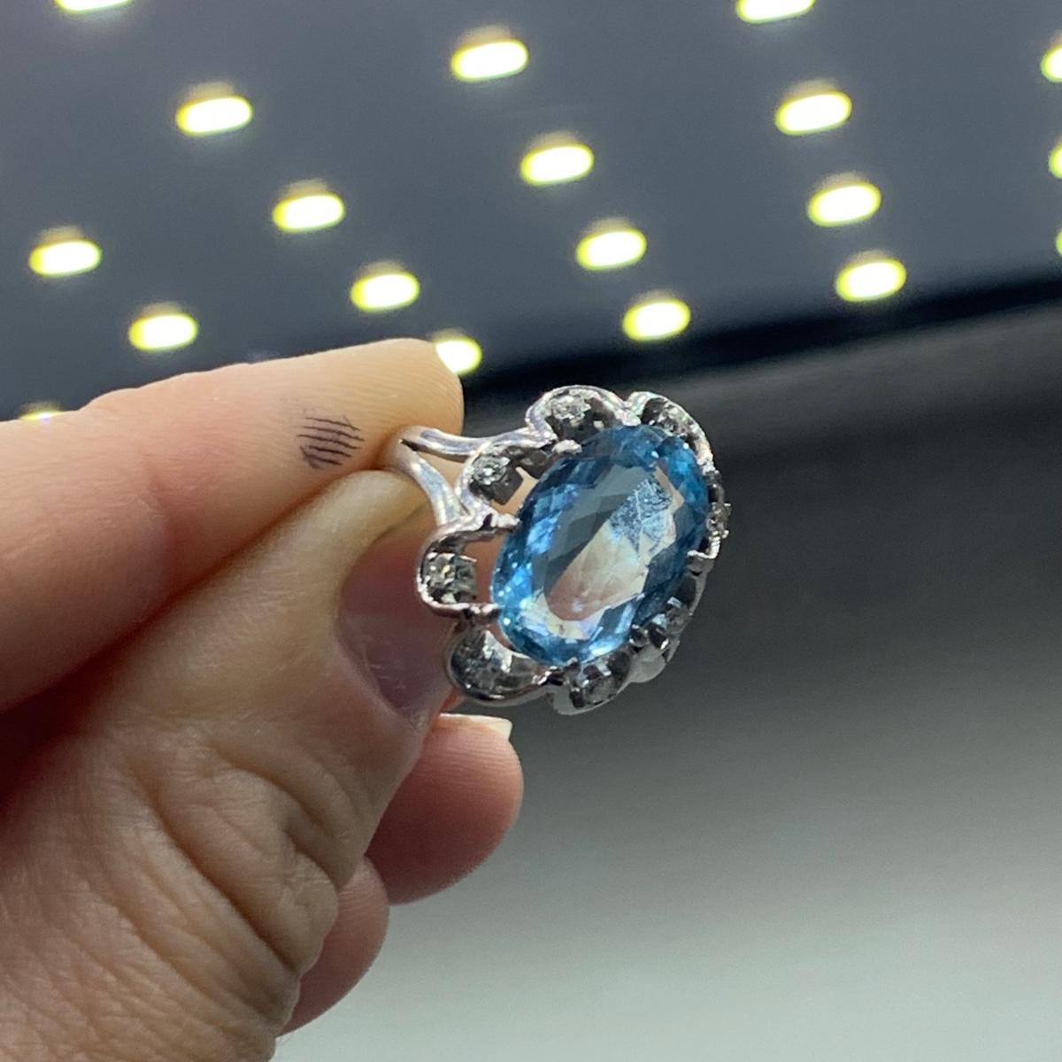 Gorgeous pear cut faceted gemstone that is aquamarine in color, with a small rhinestone sitting on top. Pendant is on a 15.5” chain marked 750 (signifying 18K). The gemstone on the ring is also aquamarine colored and is surrounded by eight small rhinestones in a floral shaped setting. Ring is stamped 18K. All sales are final. No returns or refunds. Please bid accordingly.