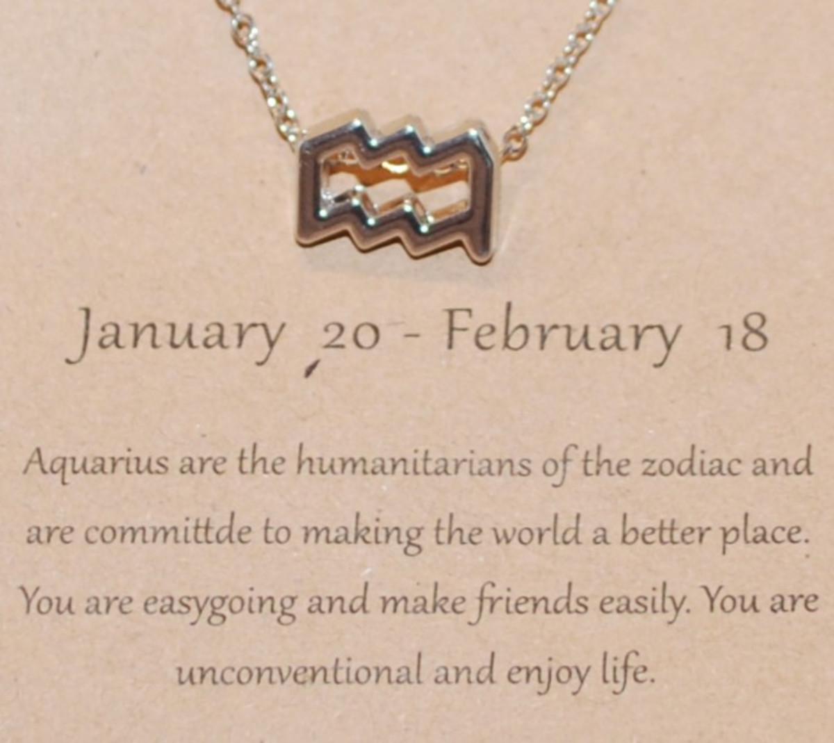 "Aquarius" Zodiac PENDANT (½" x ¼") on a Silver Tone Necklace Chain 14" L