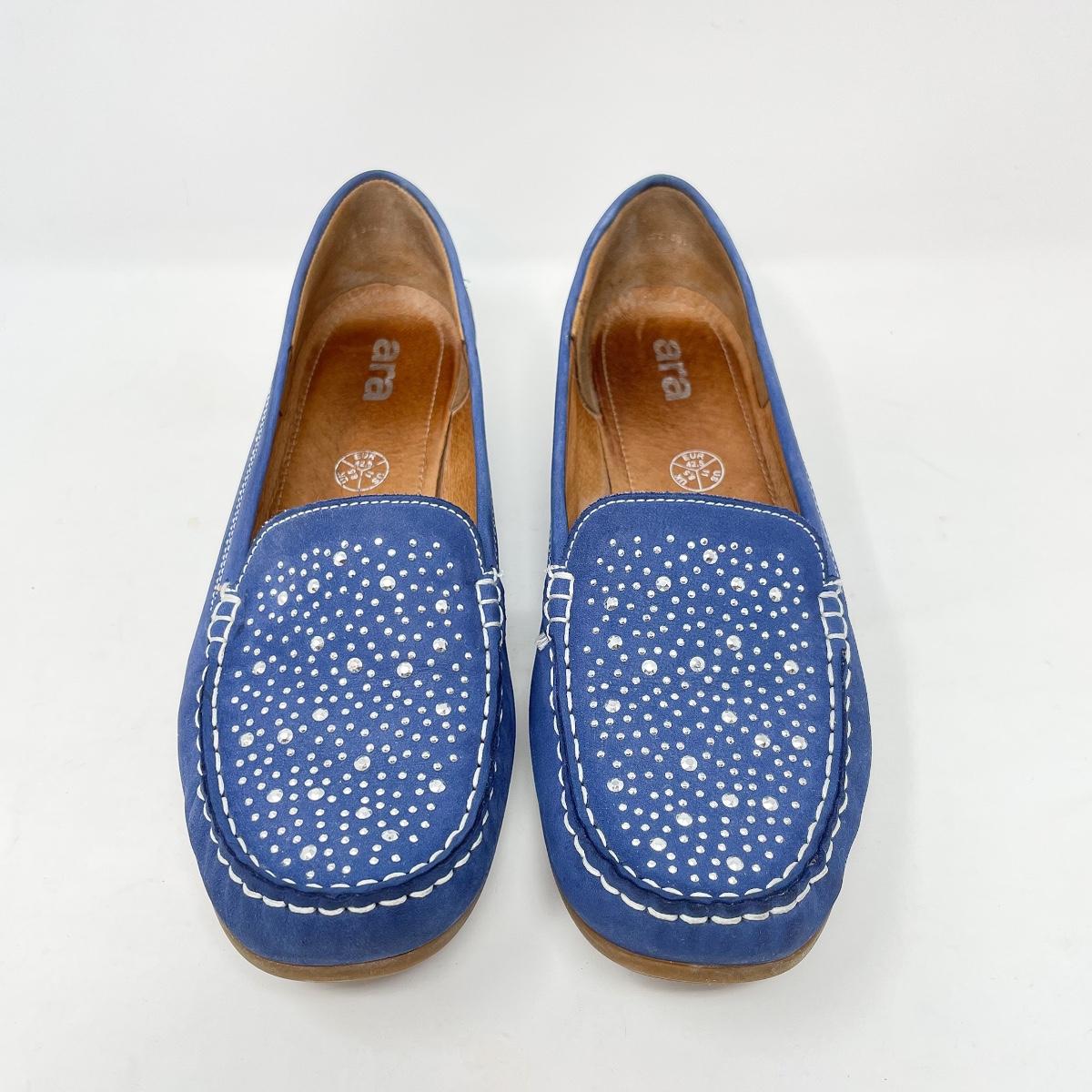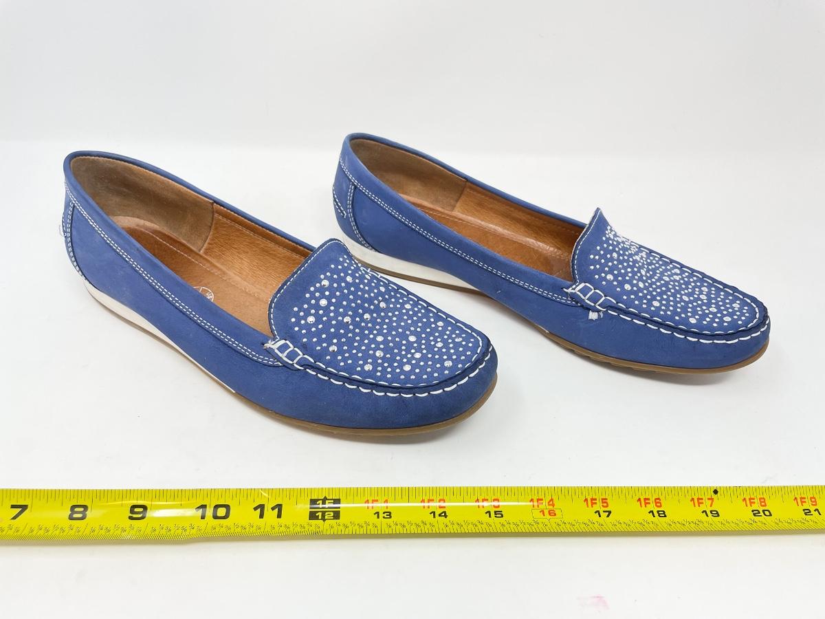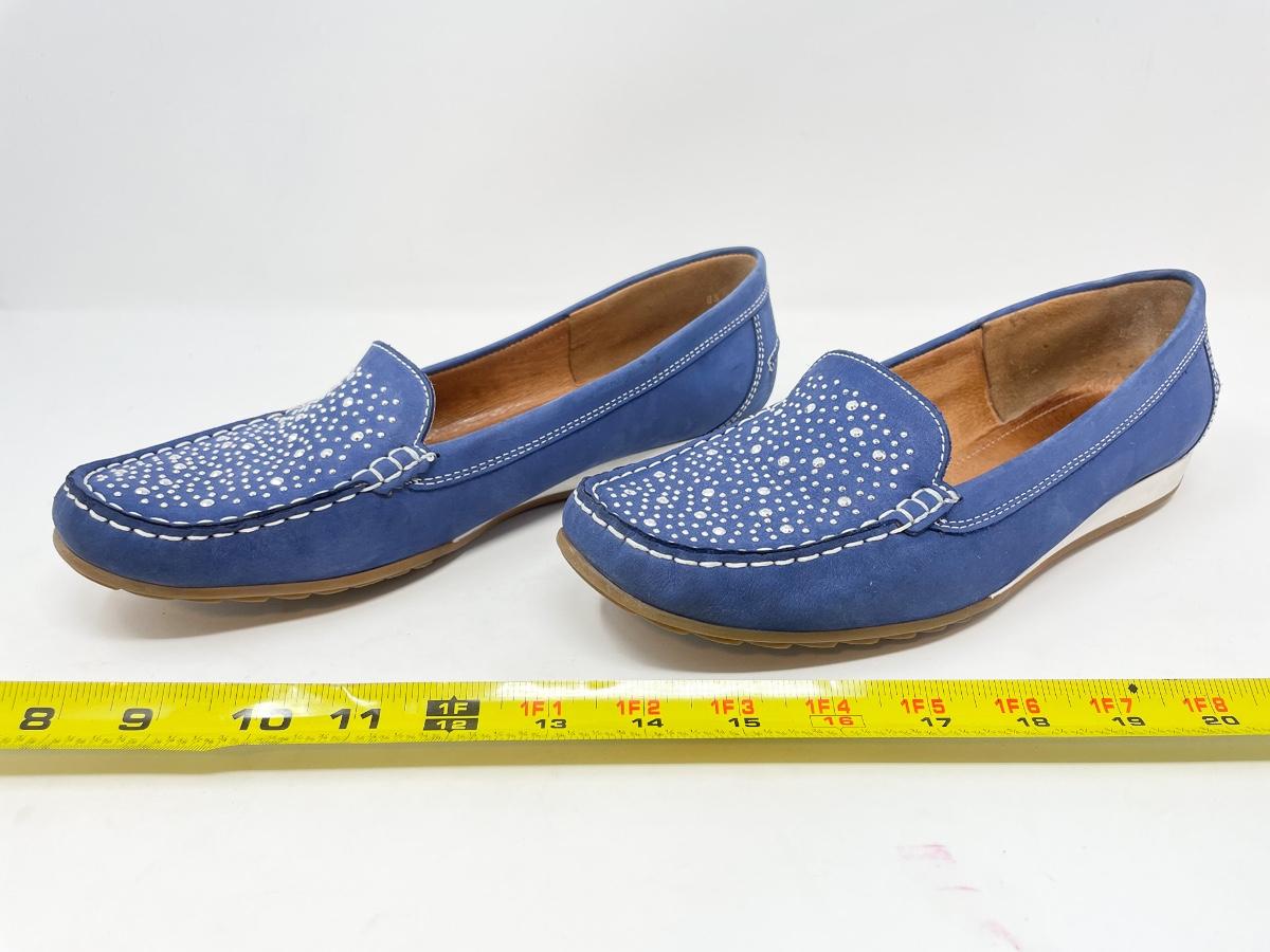 “ARA” BLUE SUEDE JEWELED MOCCASINS - WOMENS SIZE 11