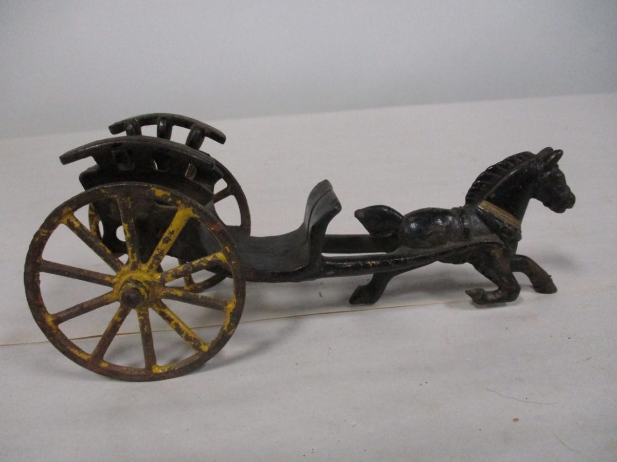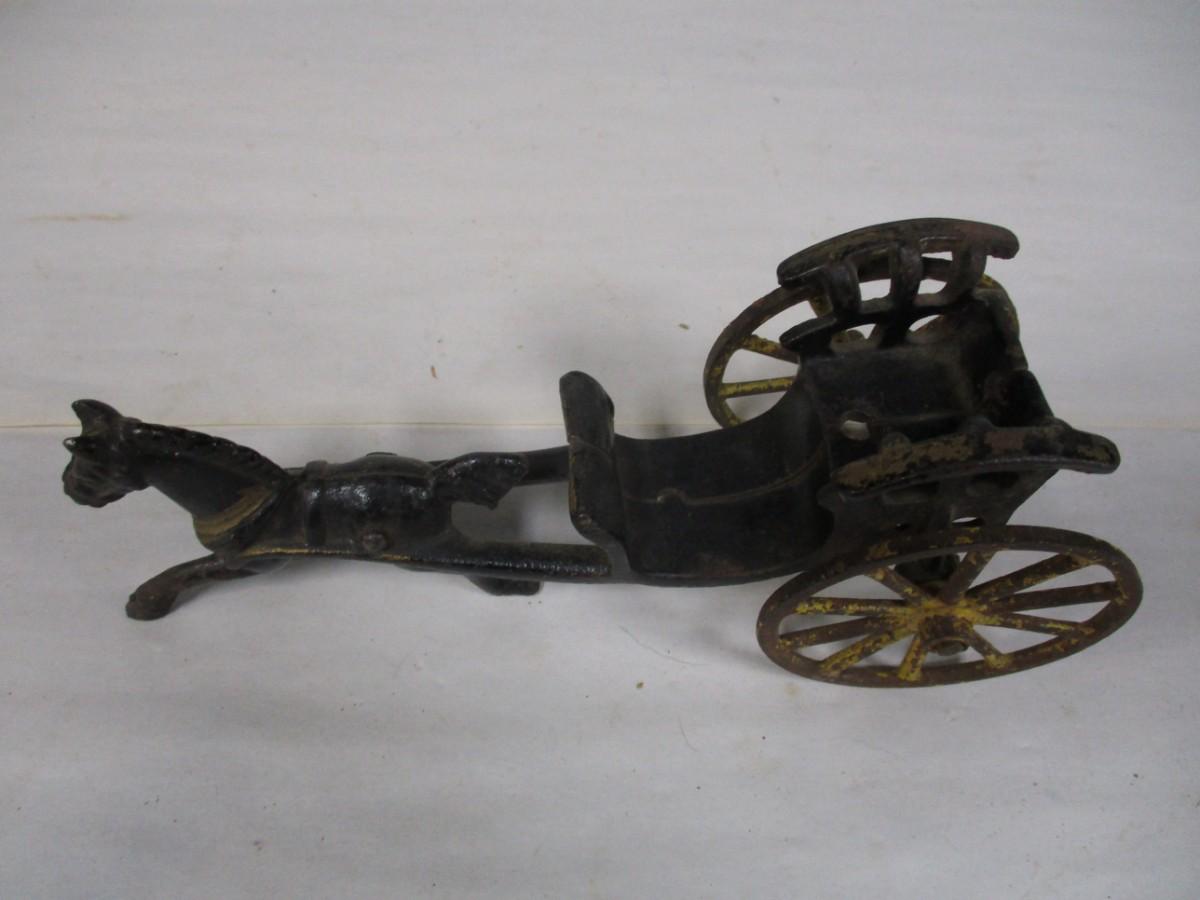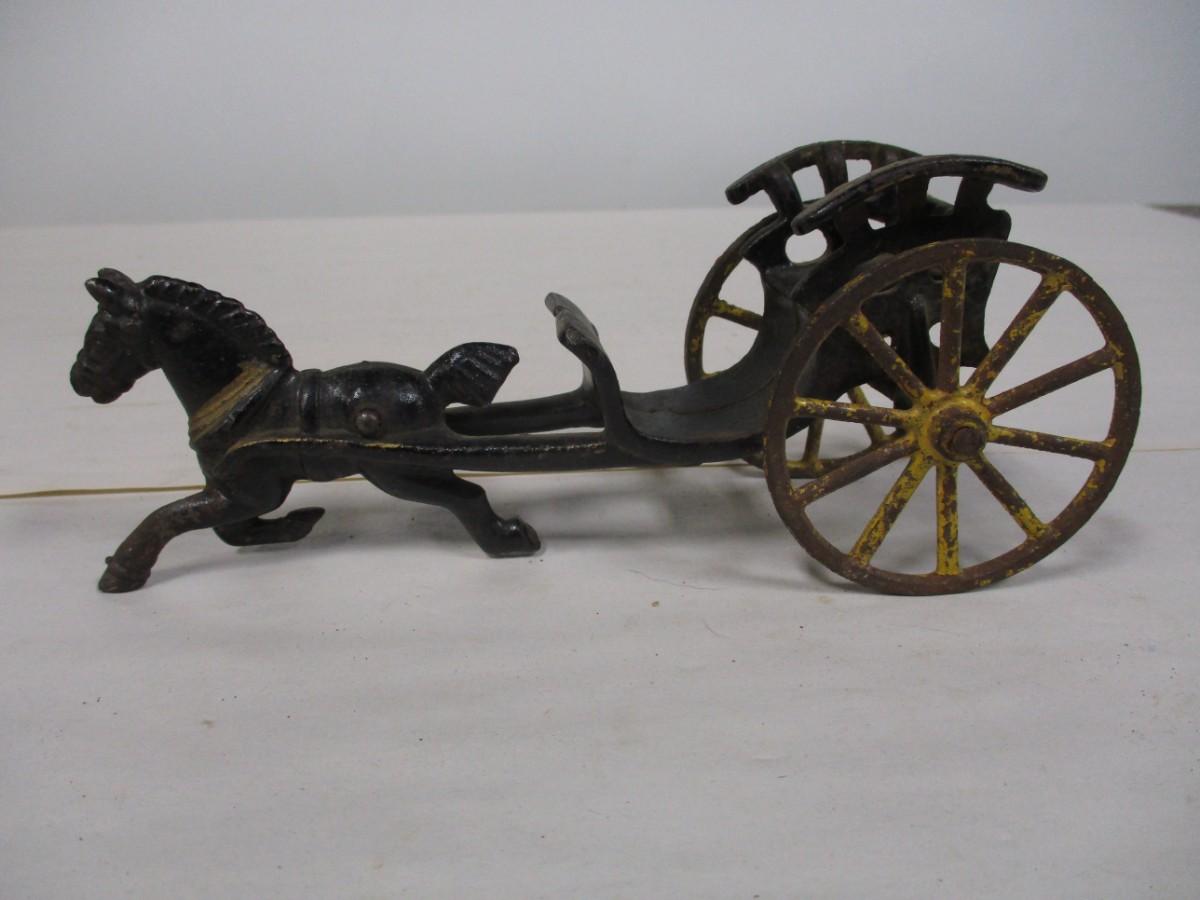 Vintage Cast Iron Arcade Black Surrey with Horse