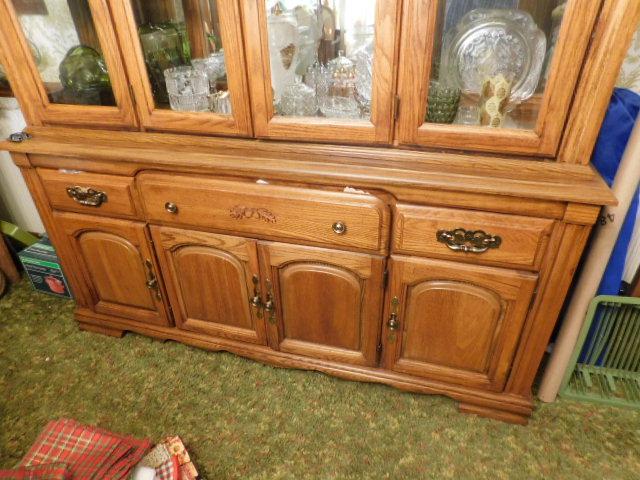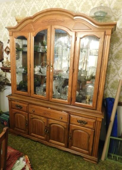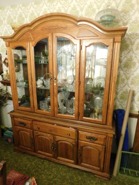Arch Top Pecan Wood China Display Cabinet Glass Front 64"x82" in very nice condition