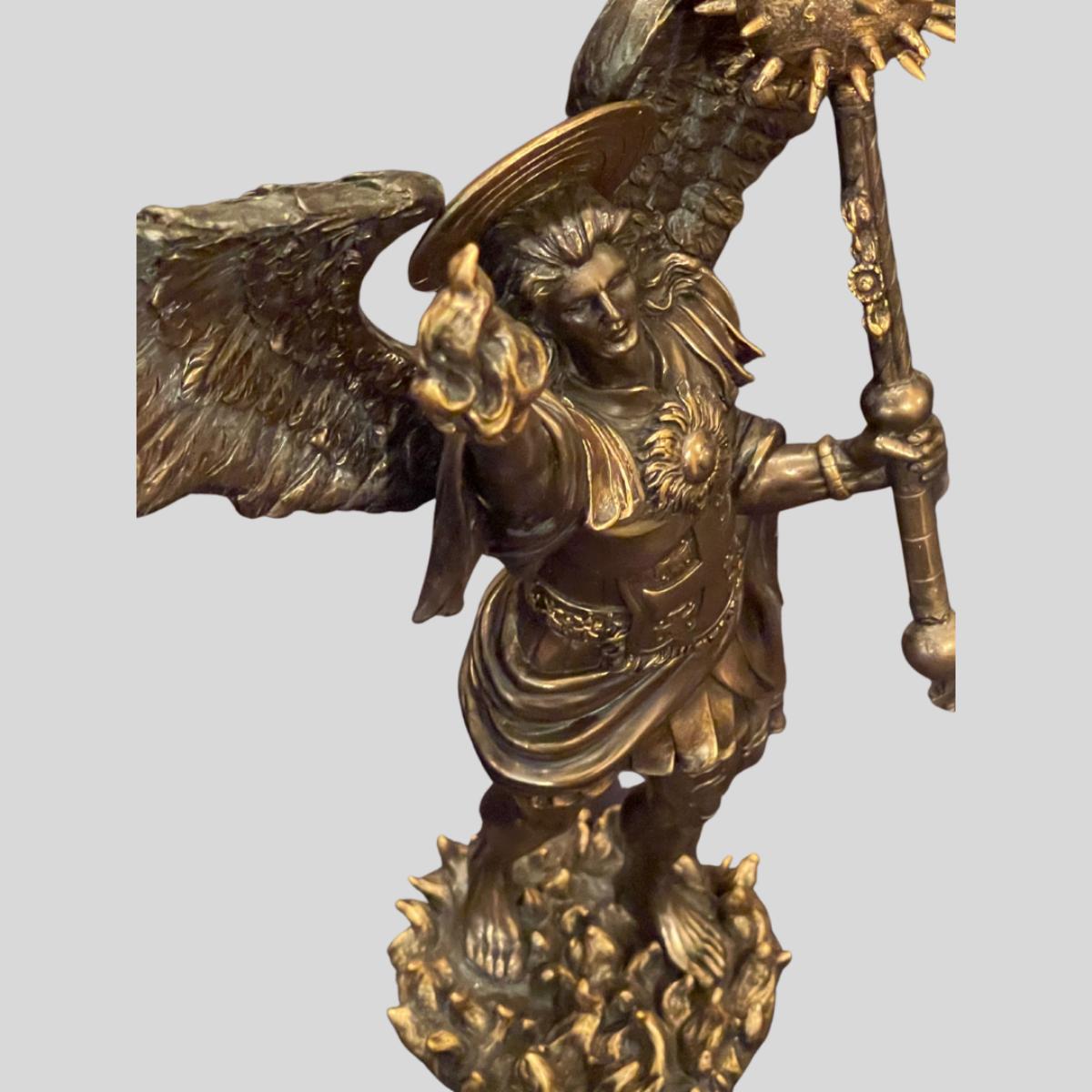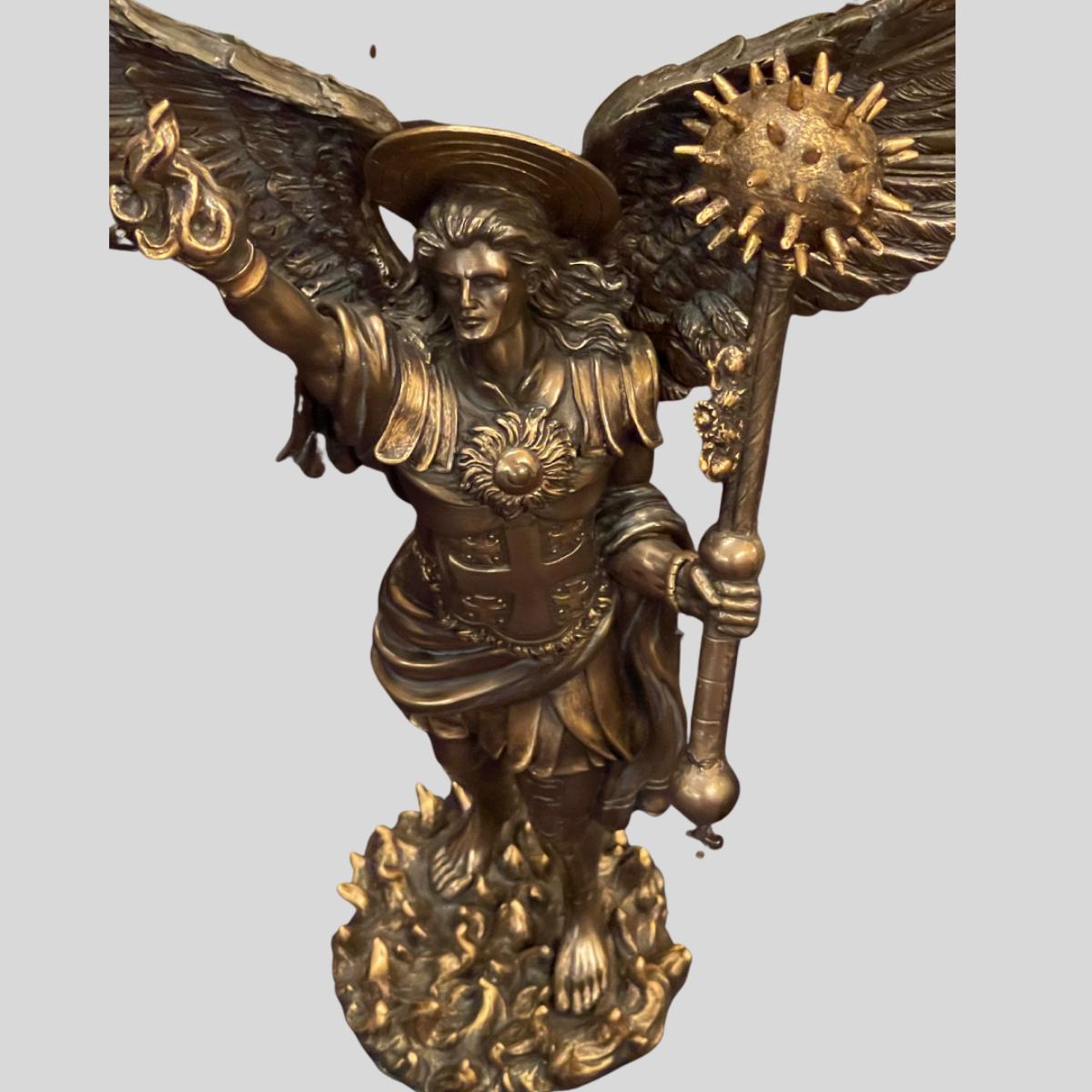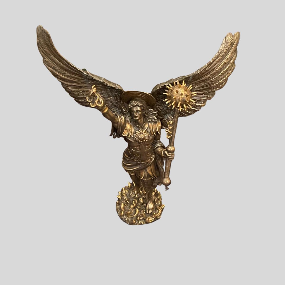 Archangel Uriel Battle Angel with Mace & Torch Bronze Statue - 12"