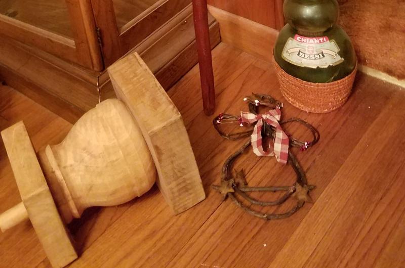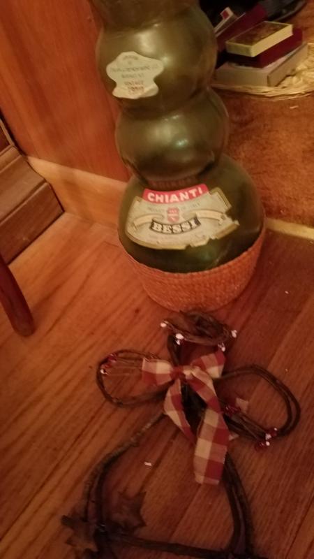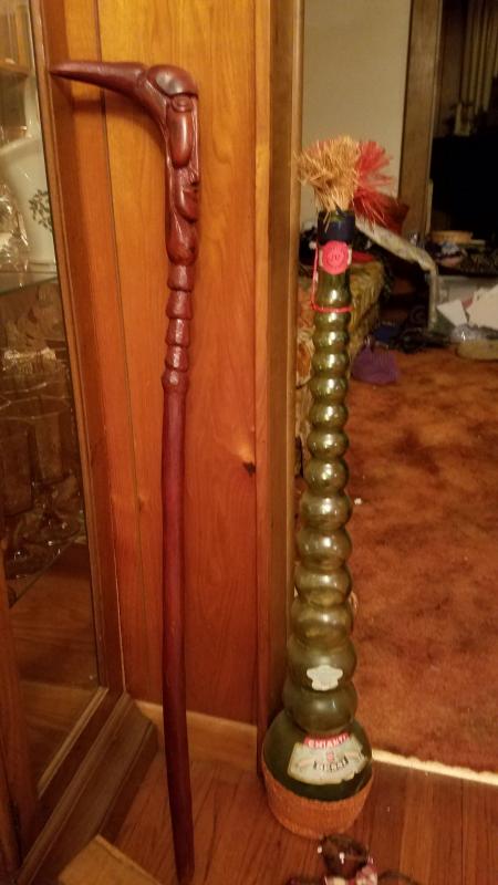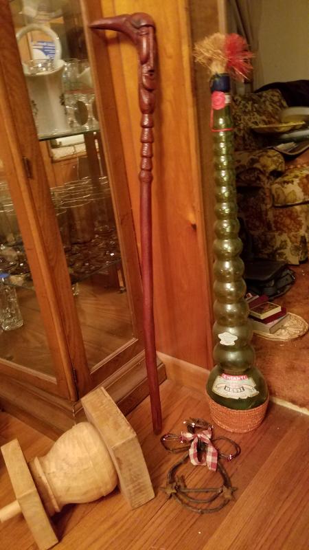 Architectural salvage a wooden cane and a very tall decorative bottle see pictures or you will miss it.