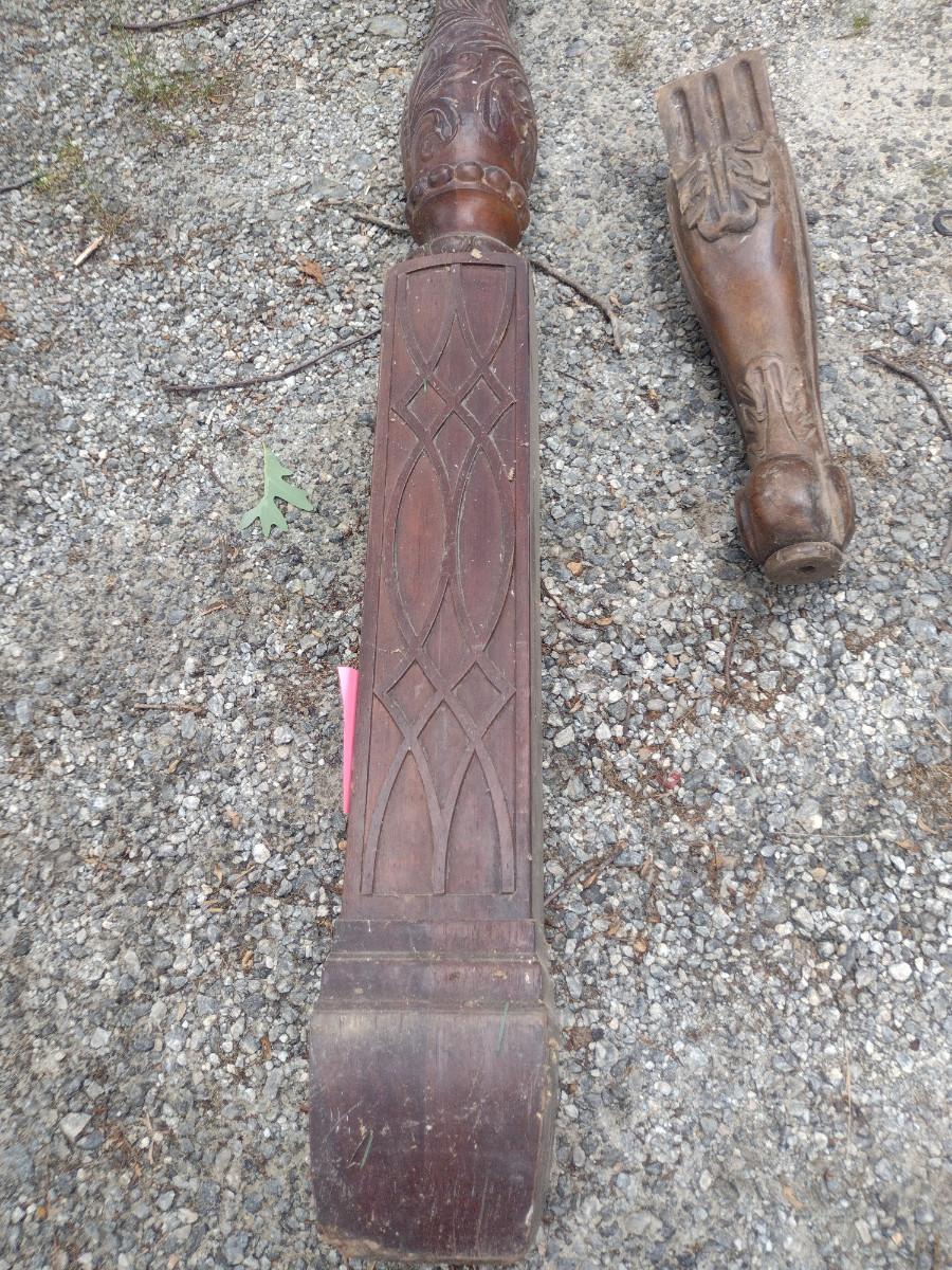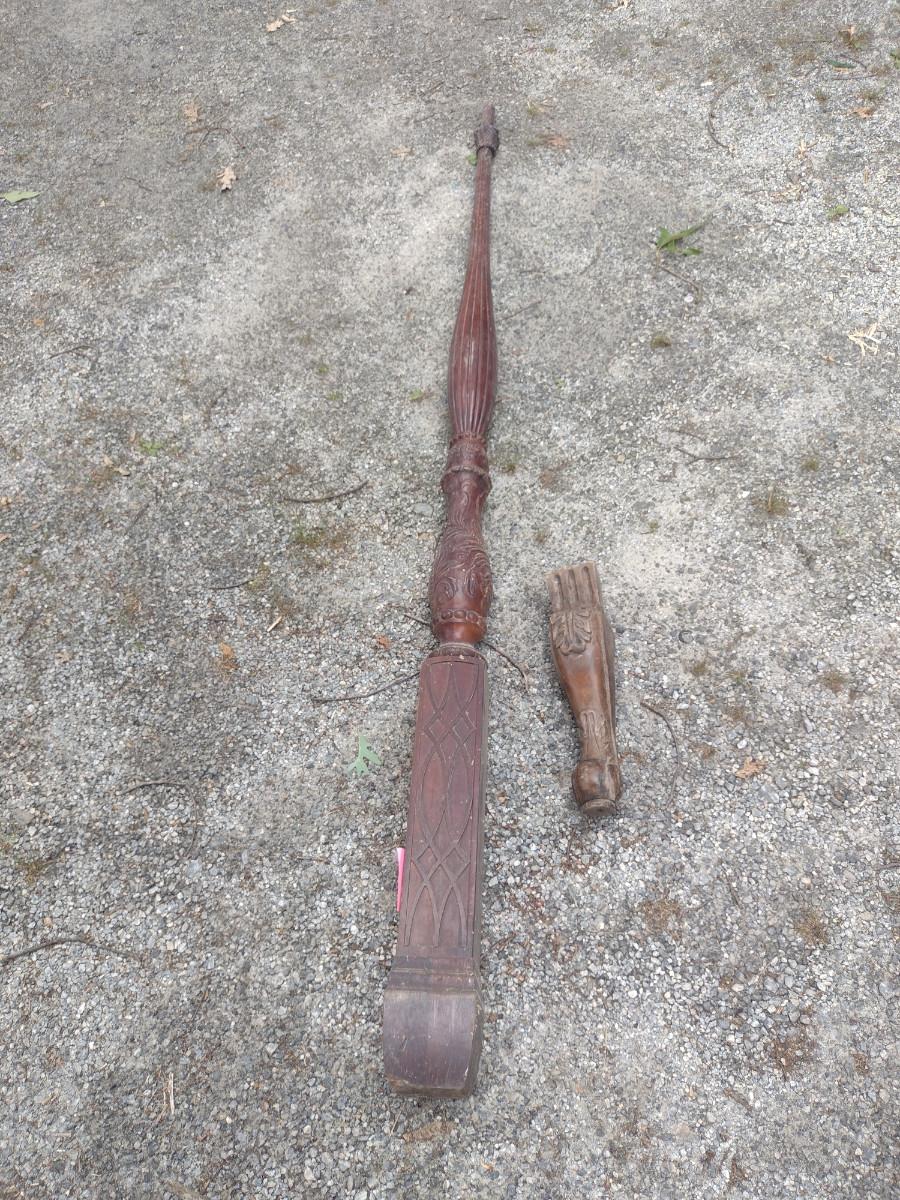 Architectural Wooden Posts and French Legs. Posts are approx 7 feet long- two pieces. French legs are approx 16 inches- 4 pieces.