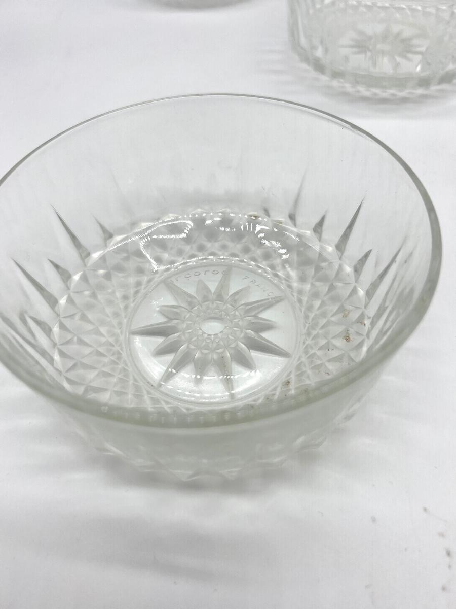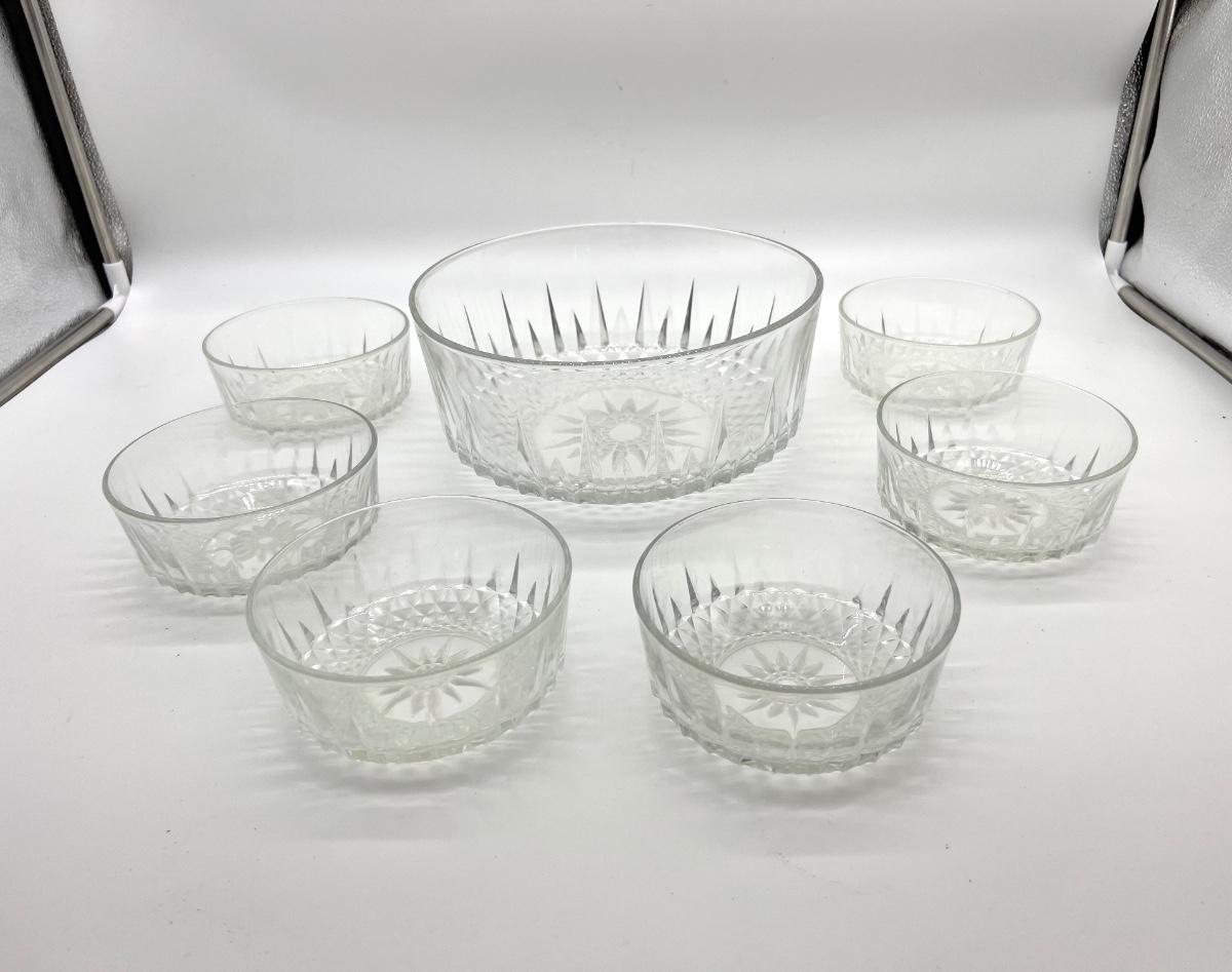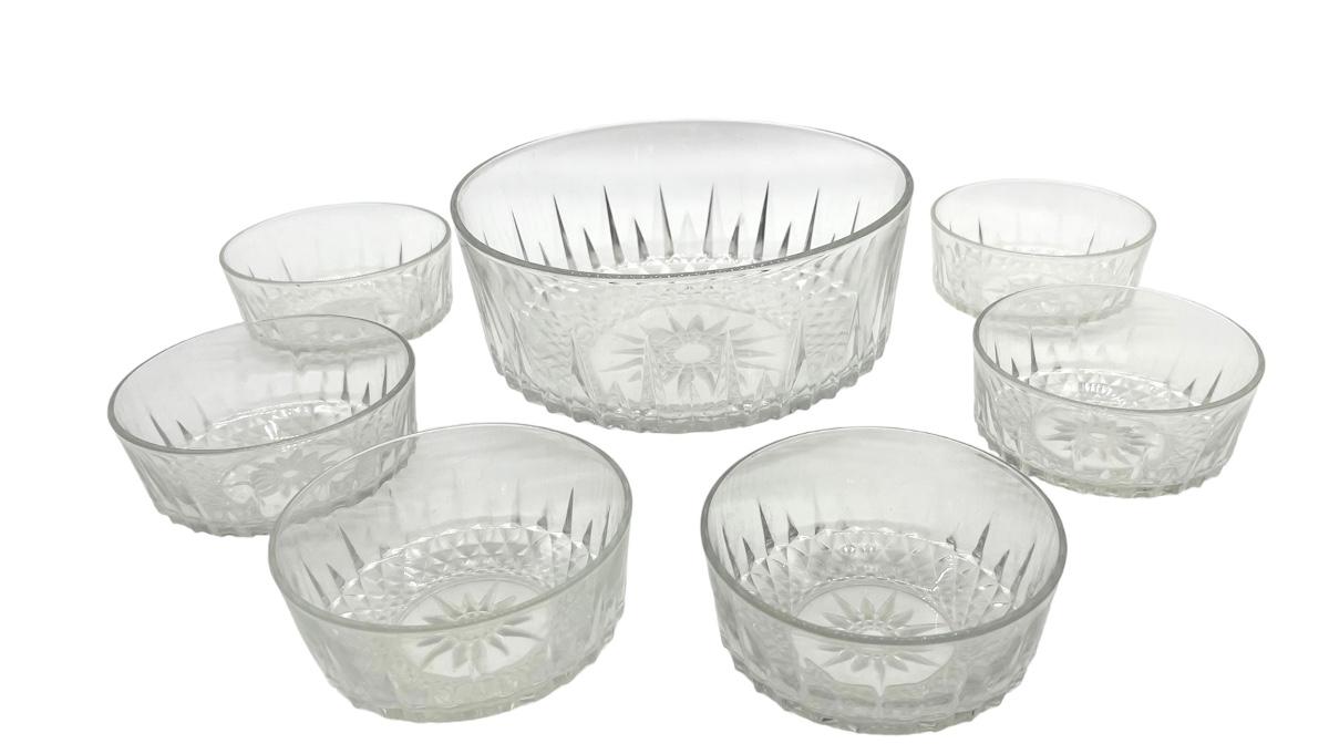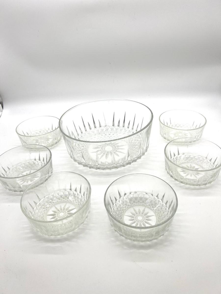 Set of 7. One big bowl and 6 smaller bowls. Arcoroc USA & France Diamond/Starburst/Sunburst Dessert bowl.