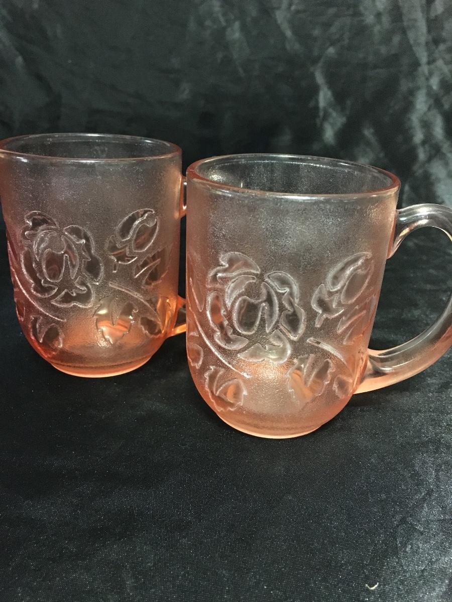 Arcoroc Rose Flower Pink Glass Coffee Tea Mug Cup, France Lot Of 2 4”