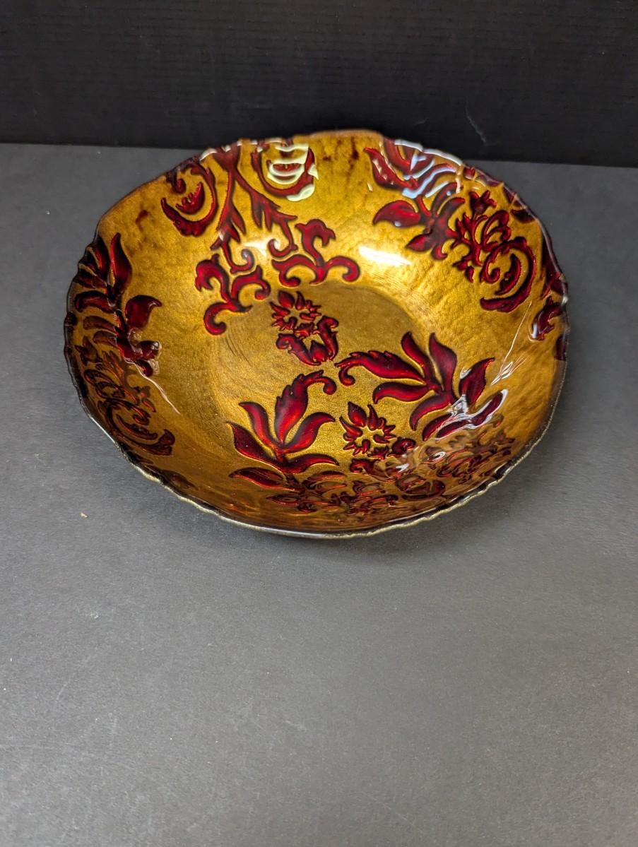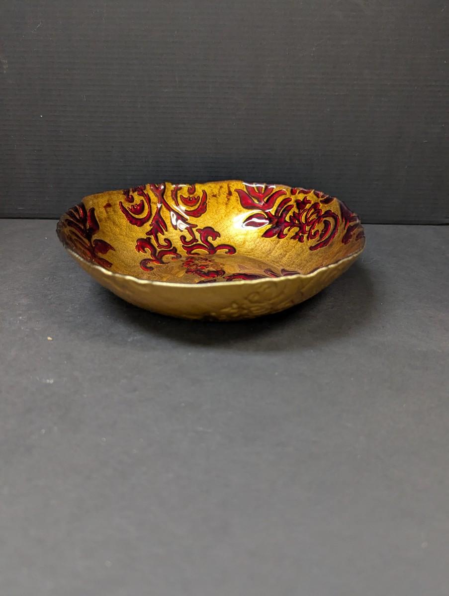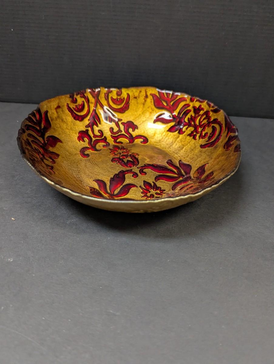 Arda Glassware Vanessa Shallow Bowl Antique Gold & Red