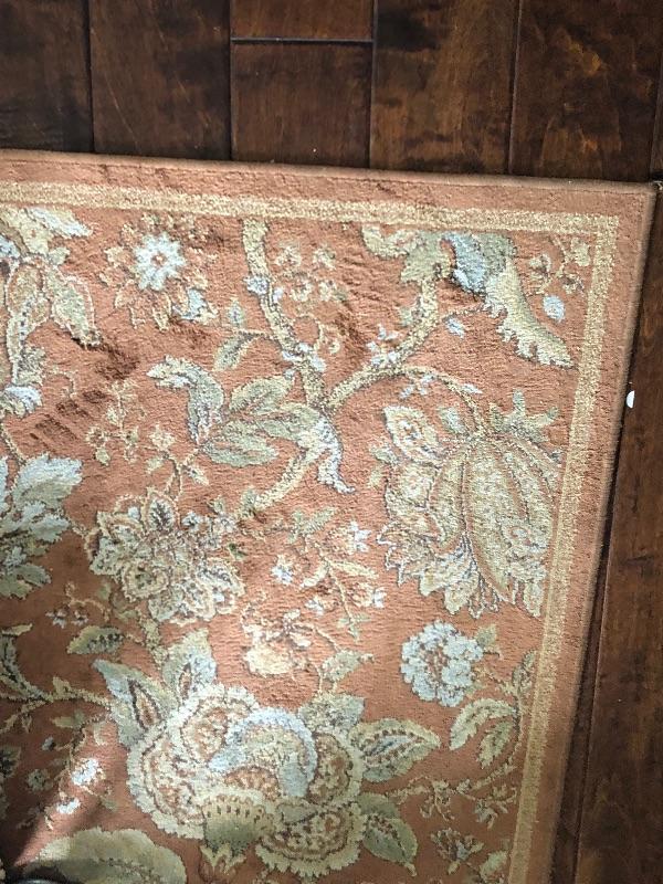 Used floral area rug. Measures 87”x52”. No holes or tears, needs to be cleaned.