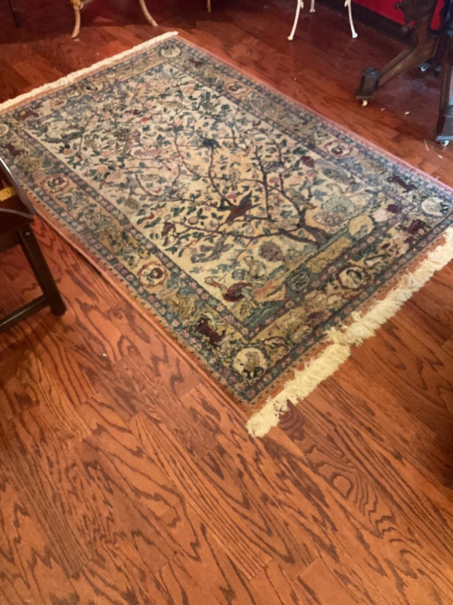 In nice condition area rug made in Egypt probably purchased mid 1990’s