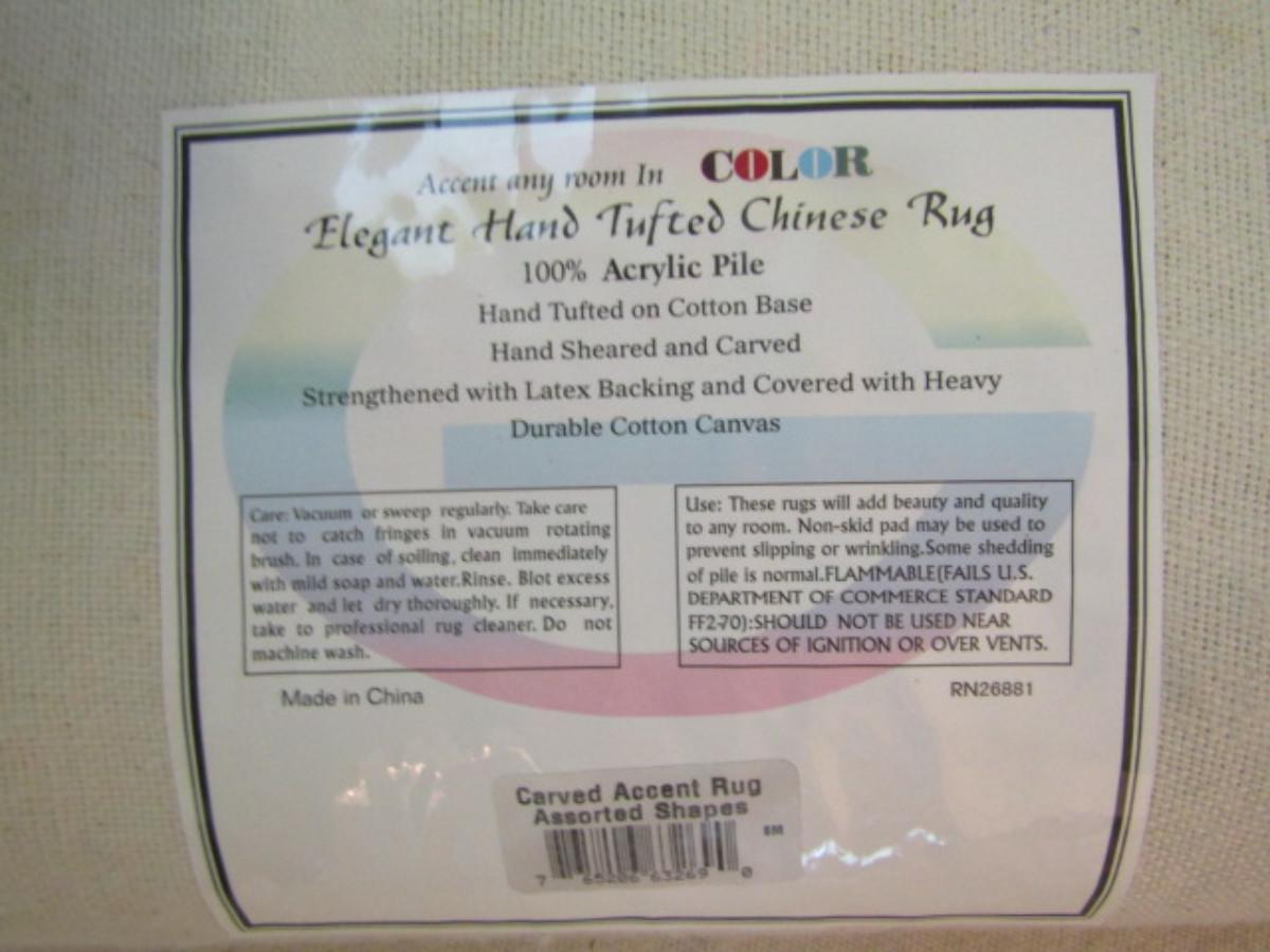 Area Rug- Approx 30" x 48". Made of acrylic on cotton base. Needs cleaning.