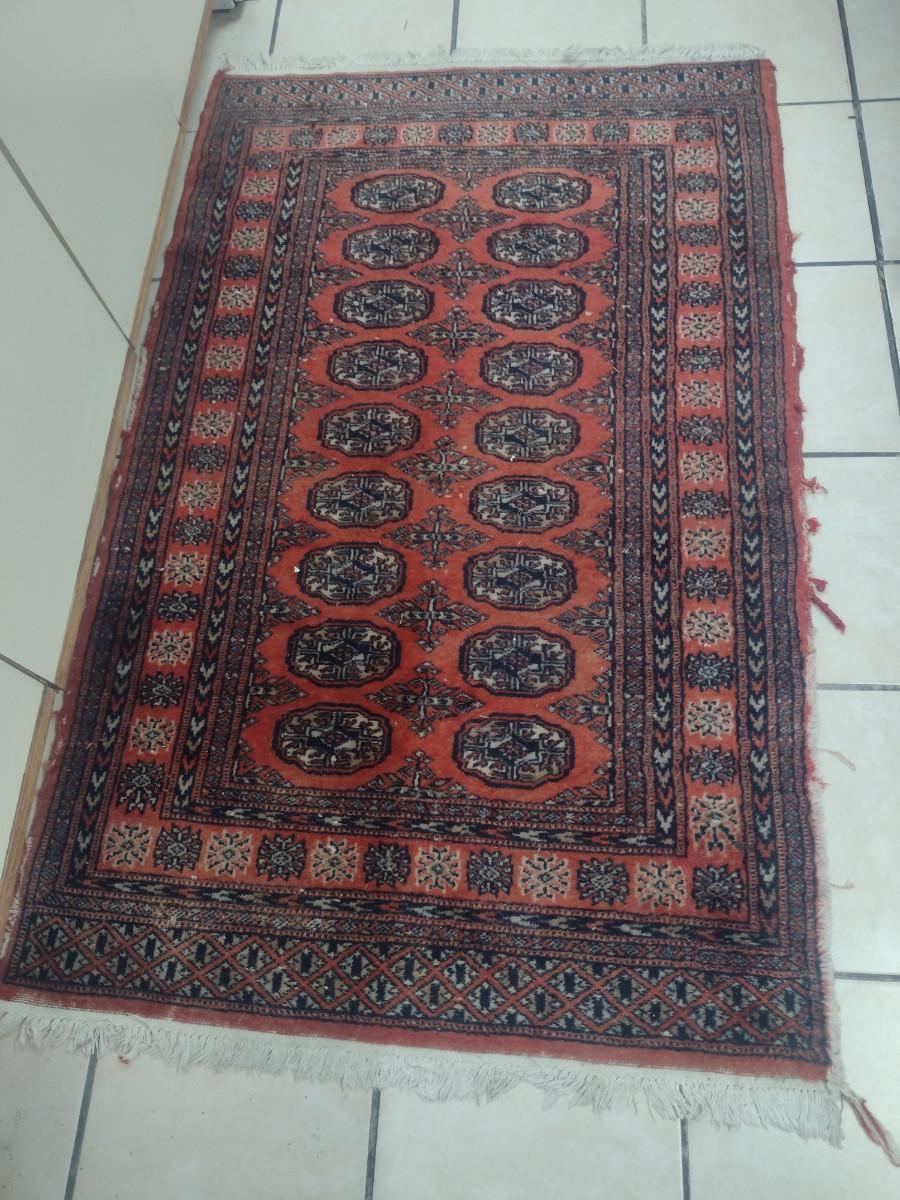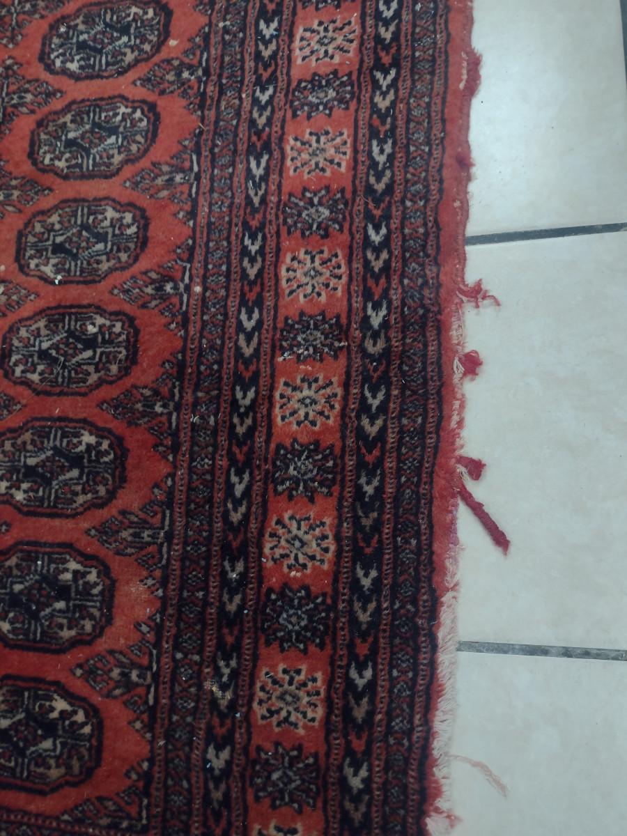 Area Rug- Approx 58" x 35". Item is in used condition and has fraying- please see all pictures.