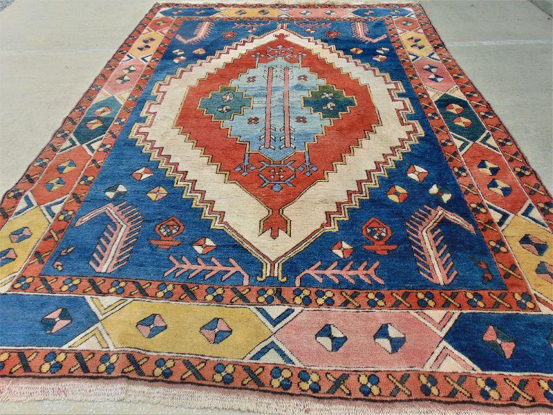Turkish Sultanhan Rug w/ Fringe - 100% WOOL - Orange/Blue - Hand Tufted