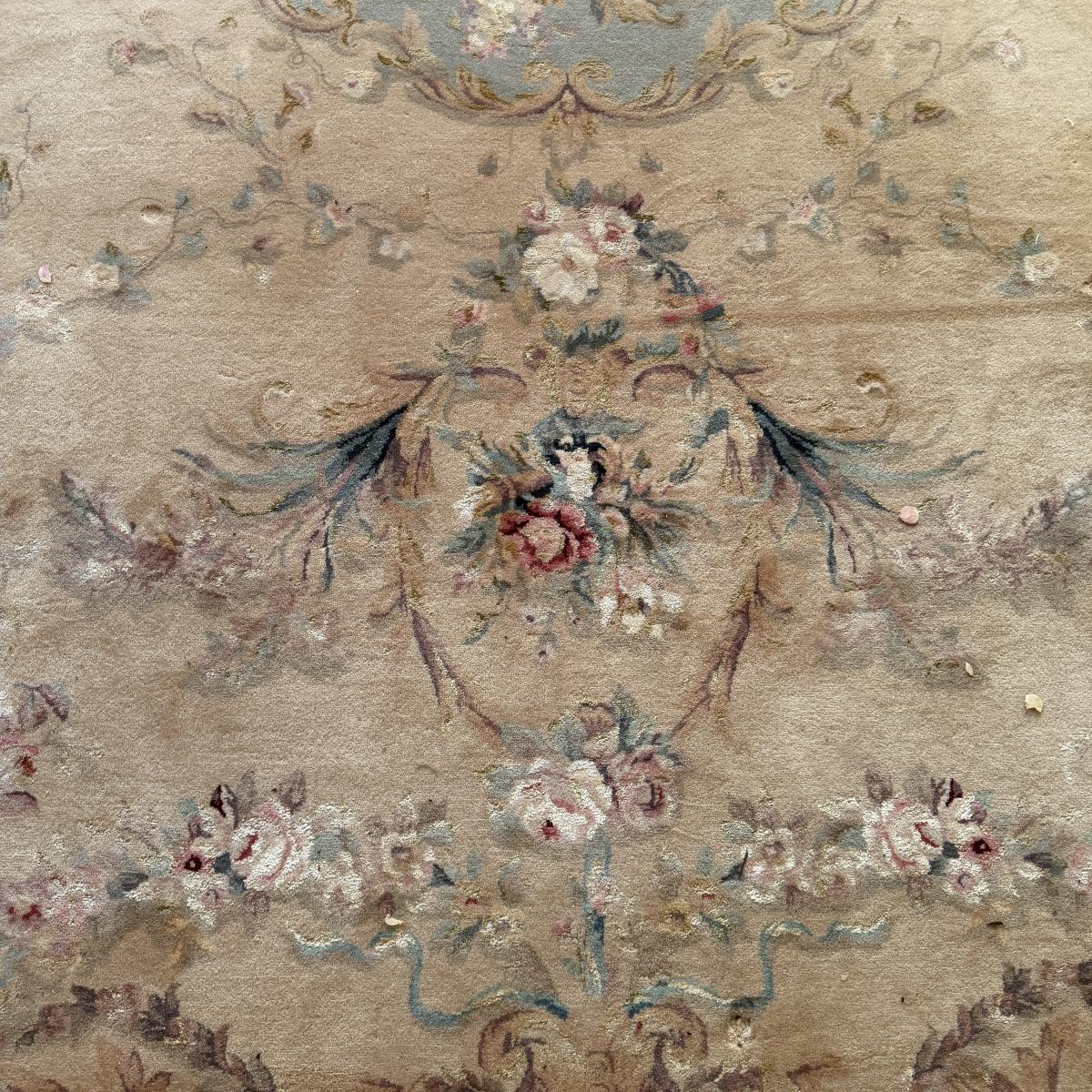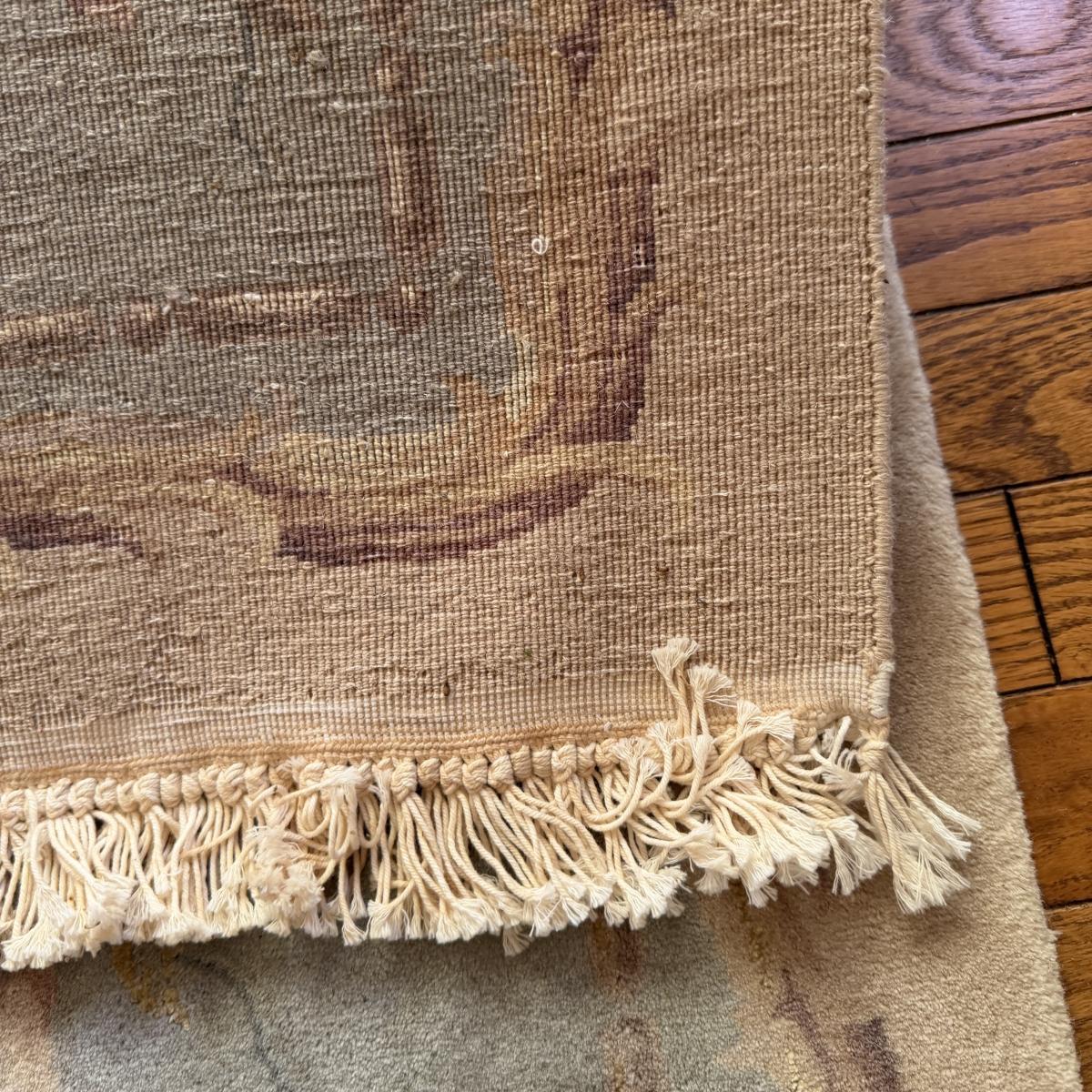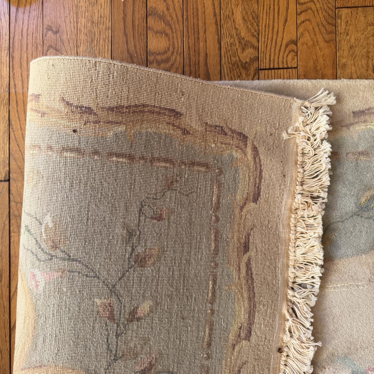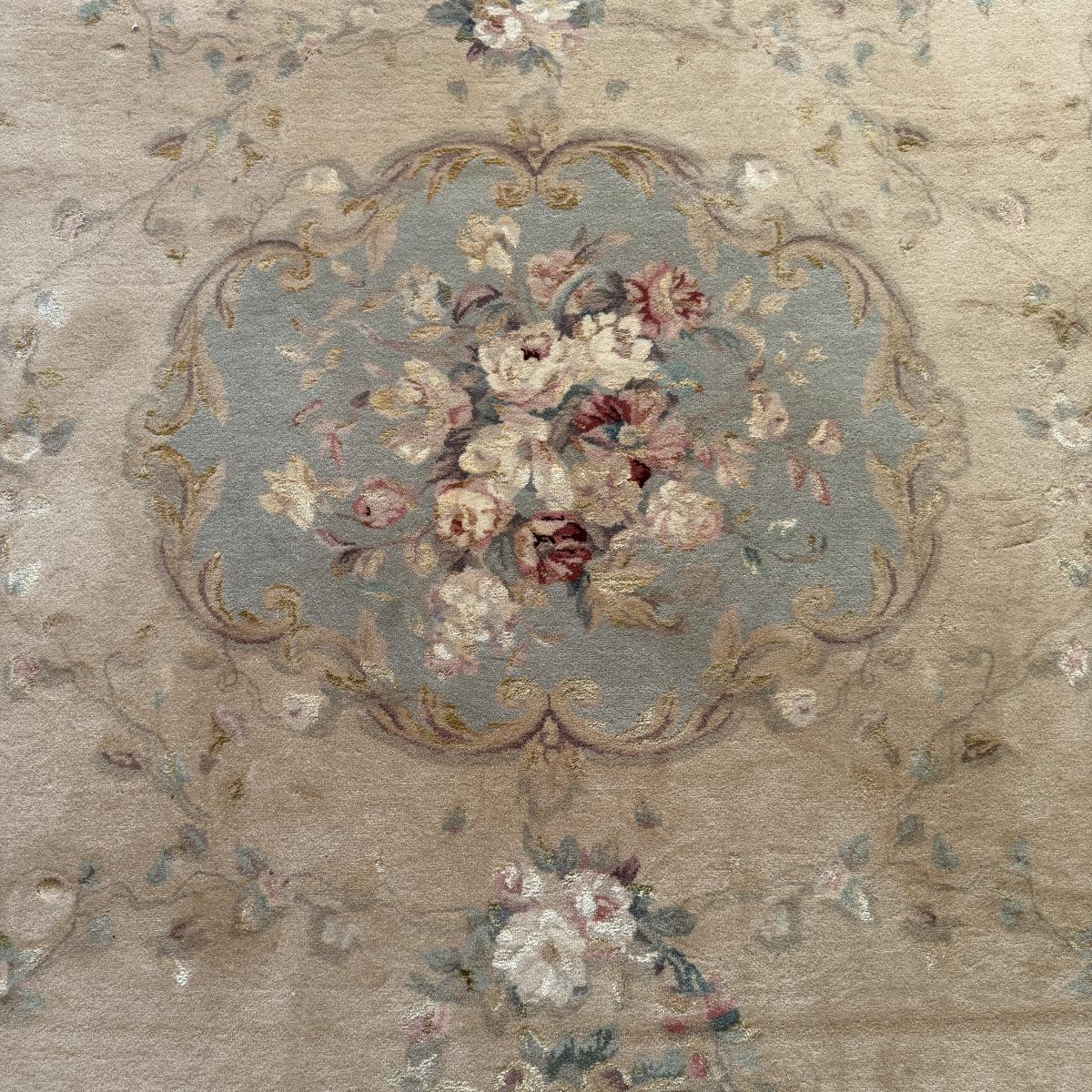 Lot includes an unmarked large area rug in predominantly blue and tan. Rug measures 10’ 2” x 7’ 10”.