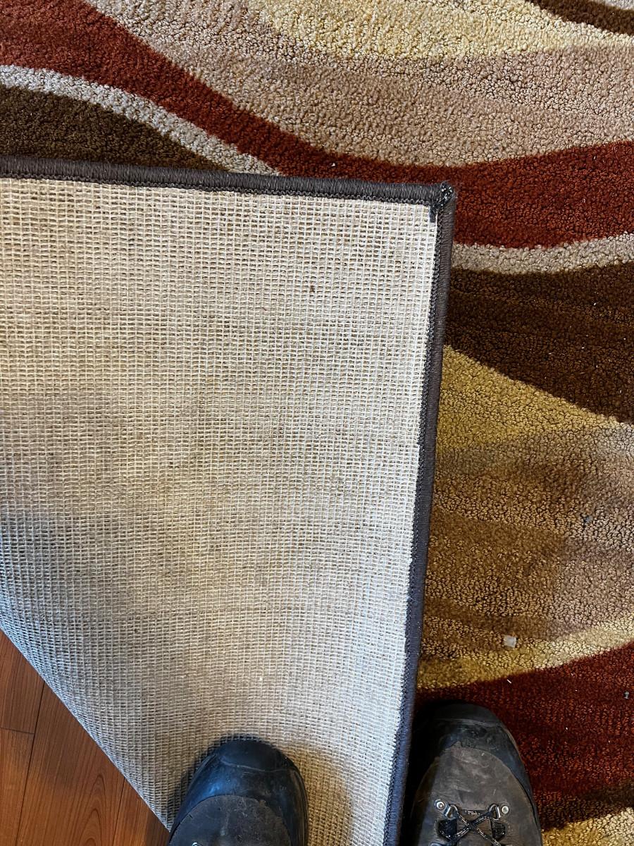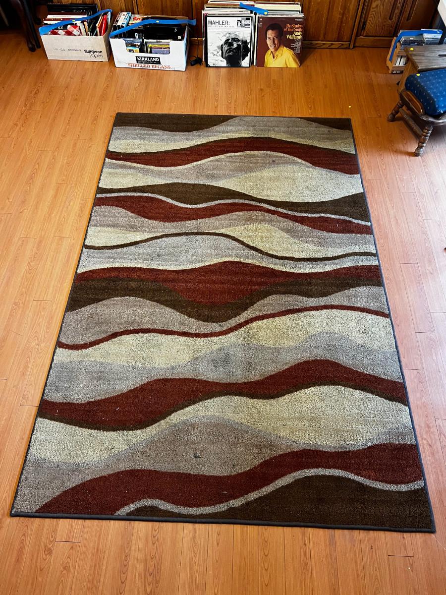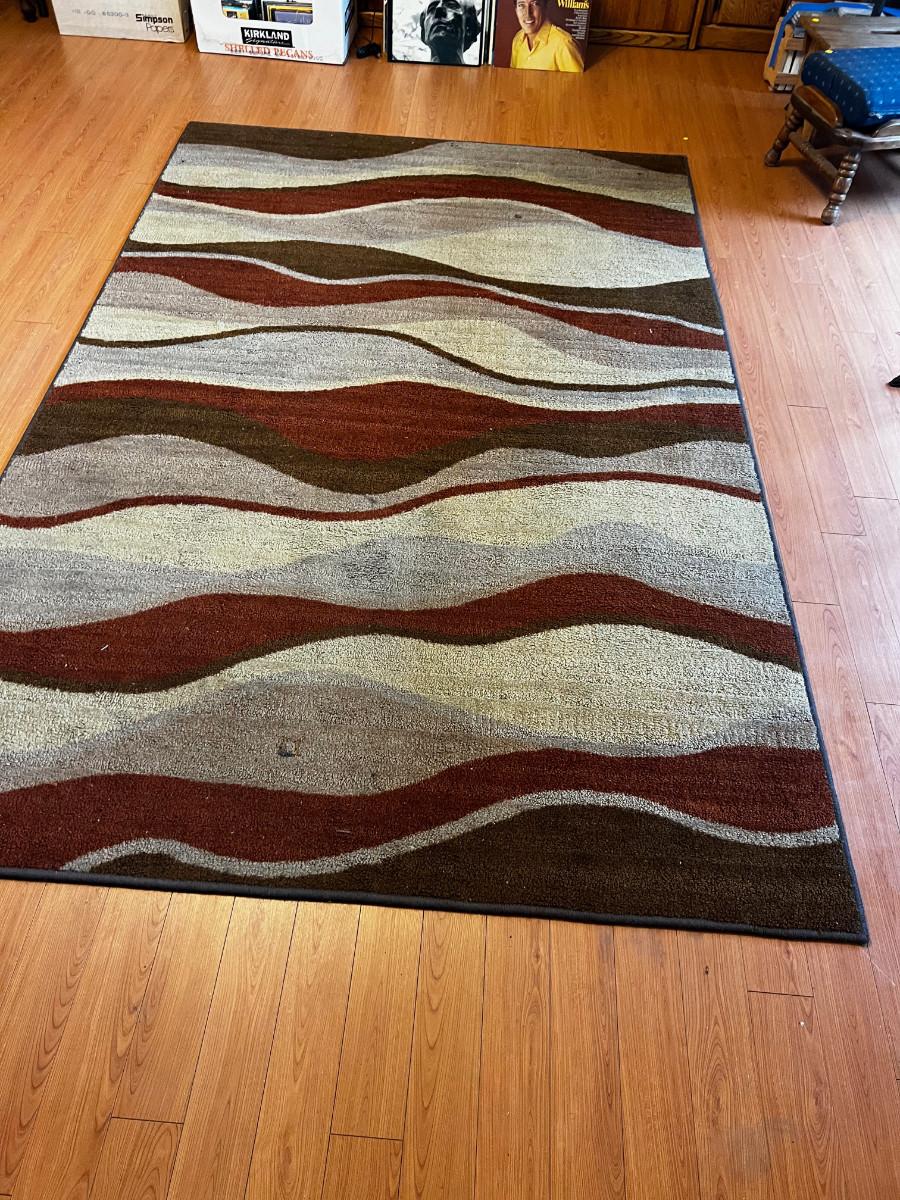 Machine Woven Needs Cleaned but not really stained. 61" X 95"