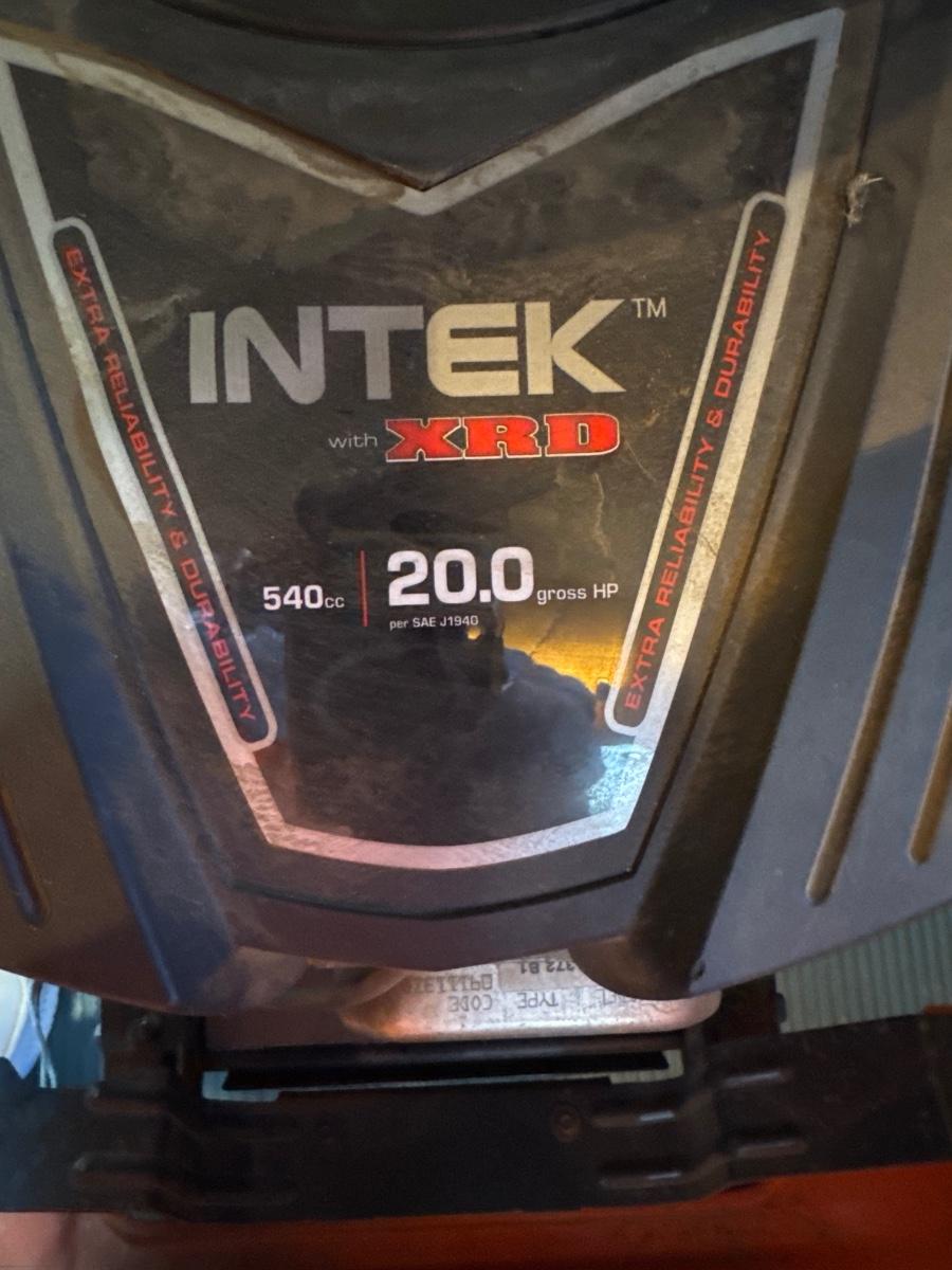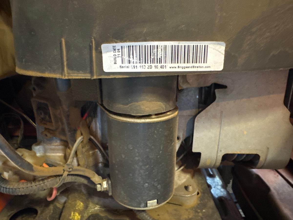 Has a 20HP Briggs & Stratton engine. Started up and runs good. Also includes bagger attachments shown in pics.