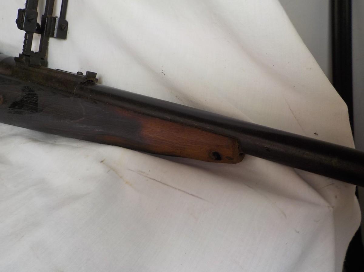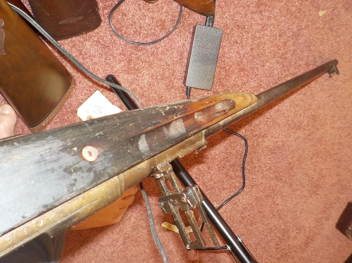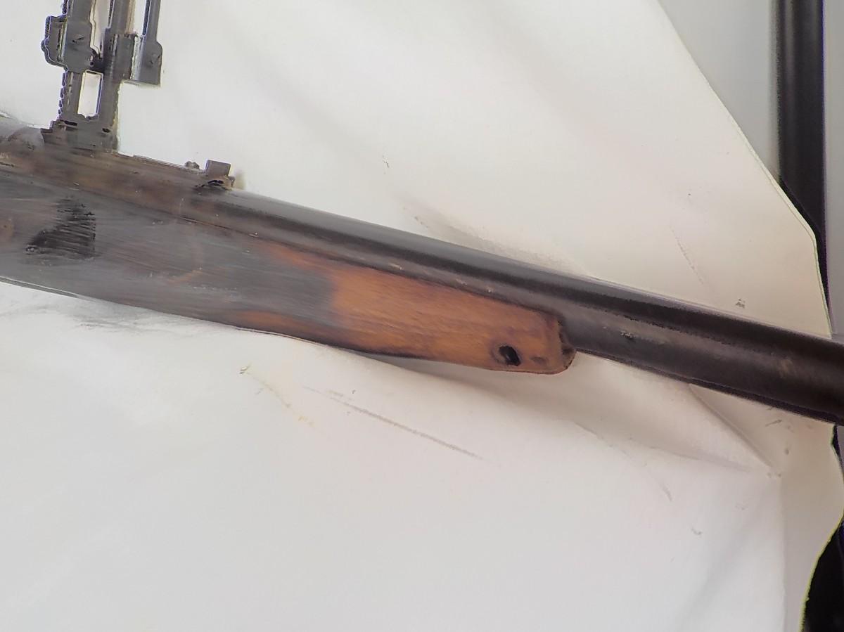 This one was brought back from our clients father, not sure who cut off front stock, have aviation gun sites and japan sign still visable. Mechanic's look and feel normal.