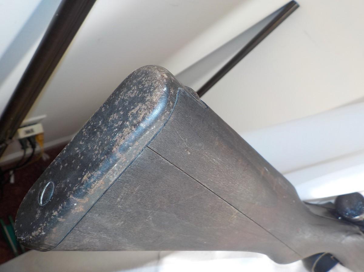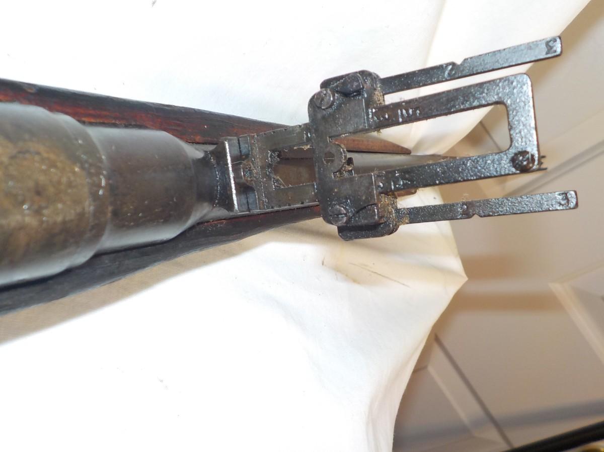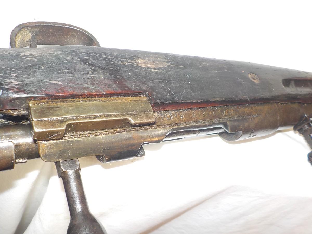 This one was brought back from our clients father, not sure who cut off front stock, have aviation gun sites and japan sign still visable. Mechanic's look and feel normal.