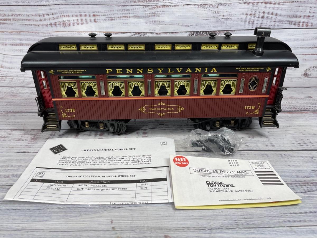 Aristo Craft G scale Pennsylvania Nassawadox clerestory windowed wooden passenger coach
