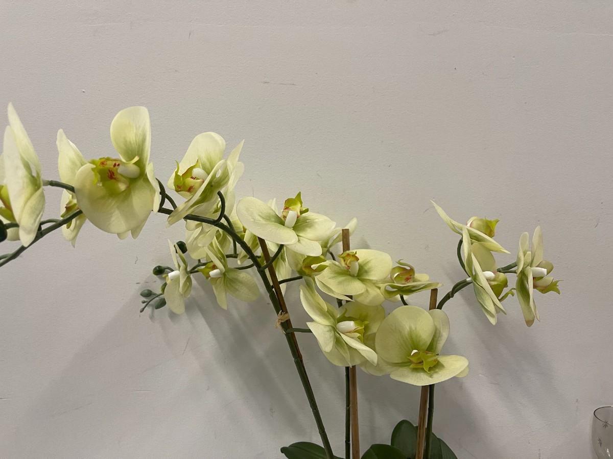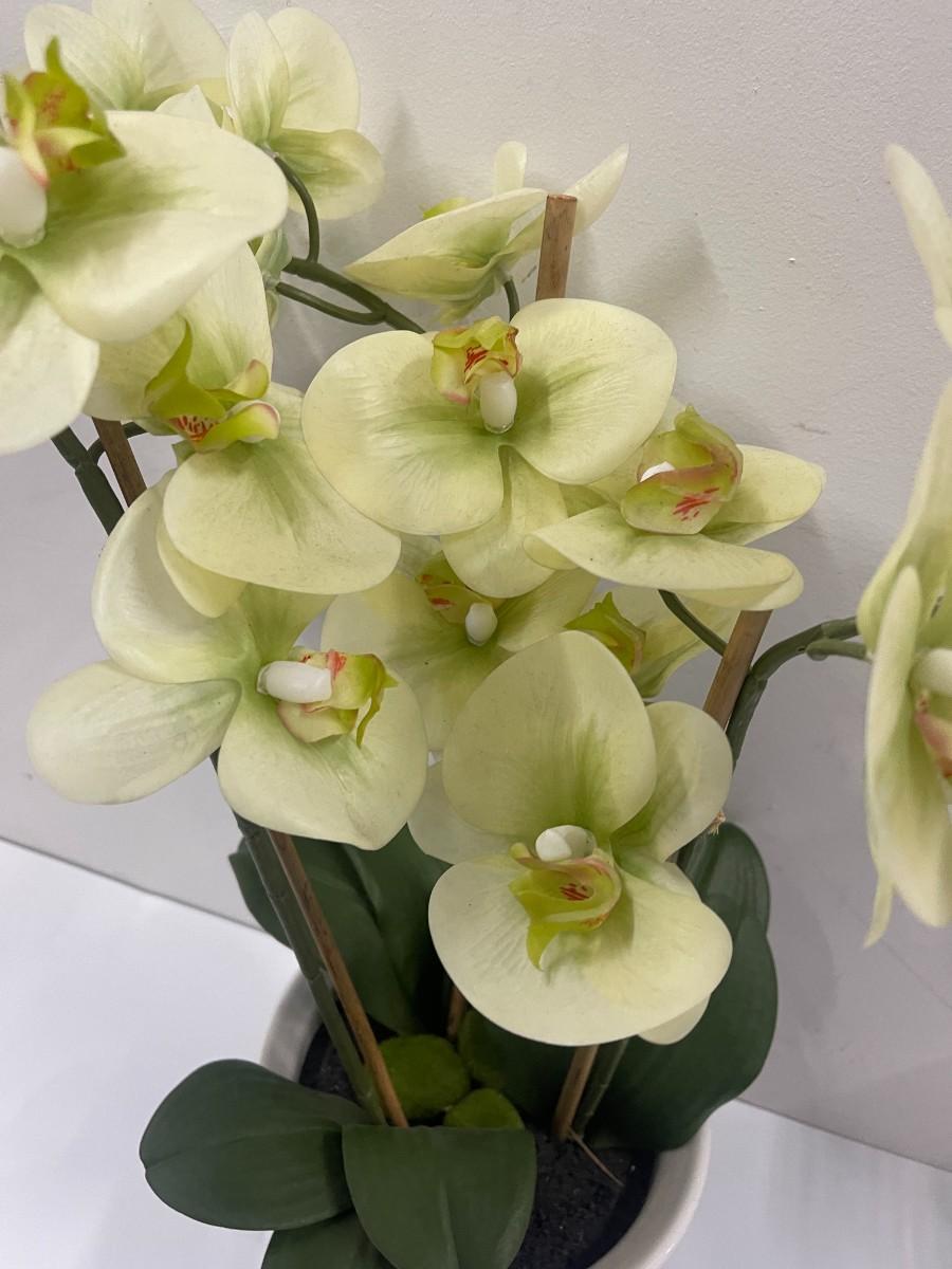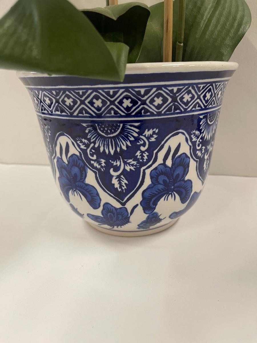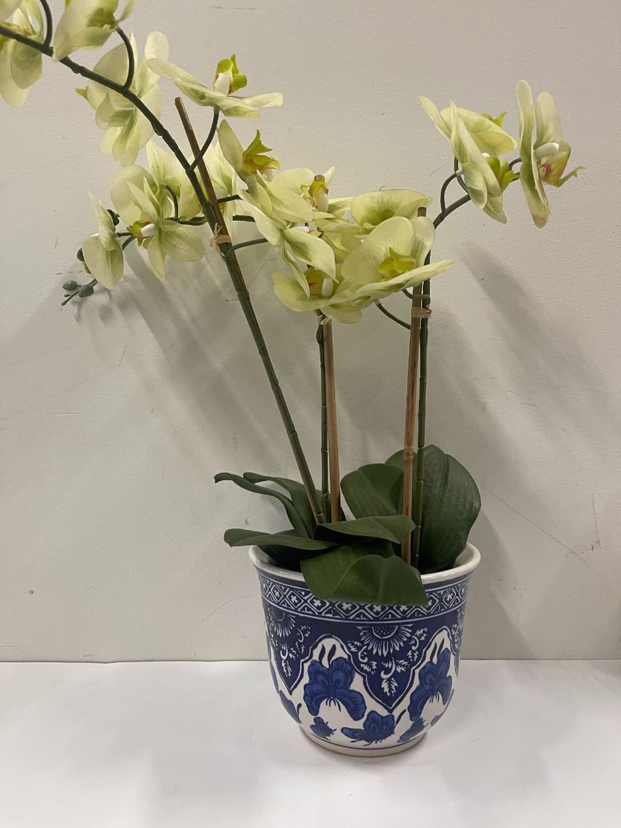 Aritifical Potted Orchid in Blue and White Planter