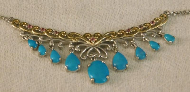 Arizona Sleeping Beauty Torquoise 19" Princess Necklace 14kt yellow gold over sterling silver.