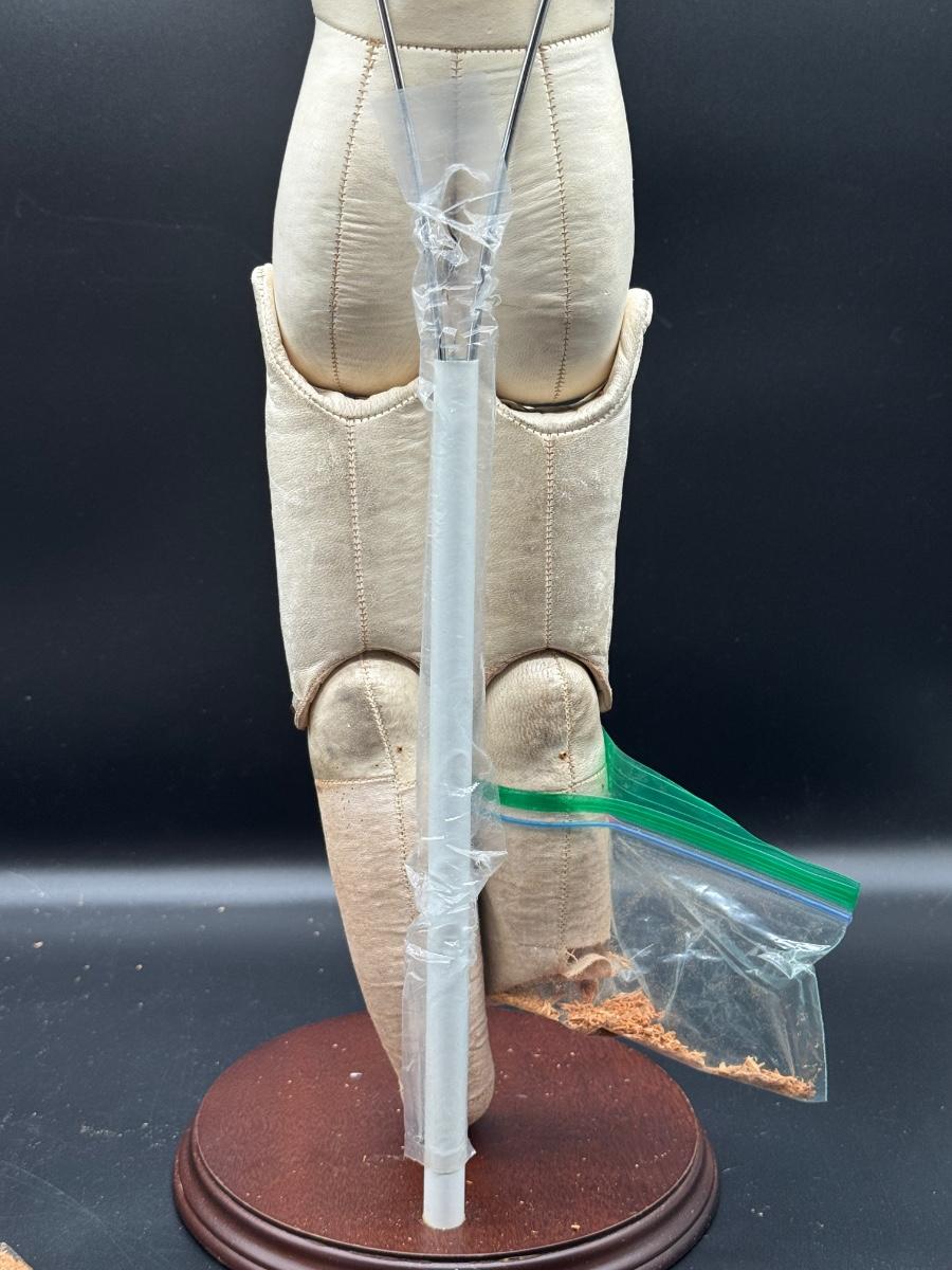 One lower leg is present but detached at the knee.