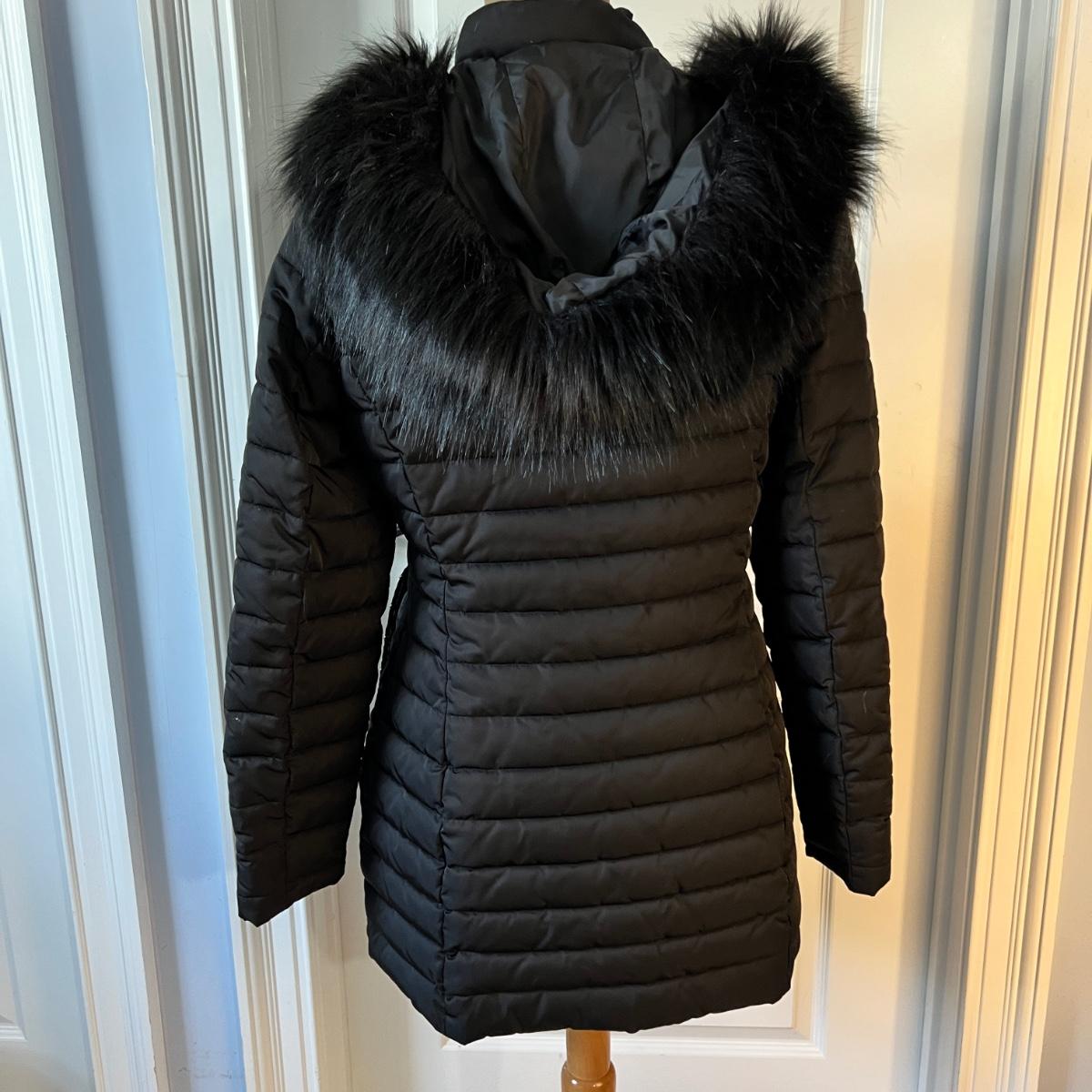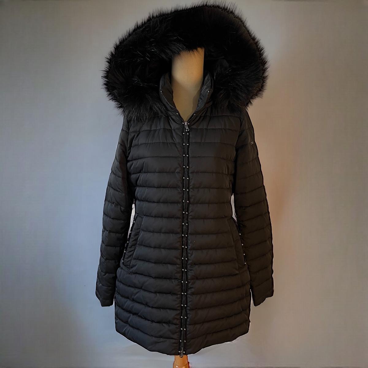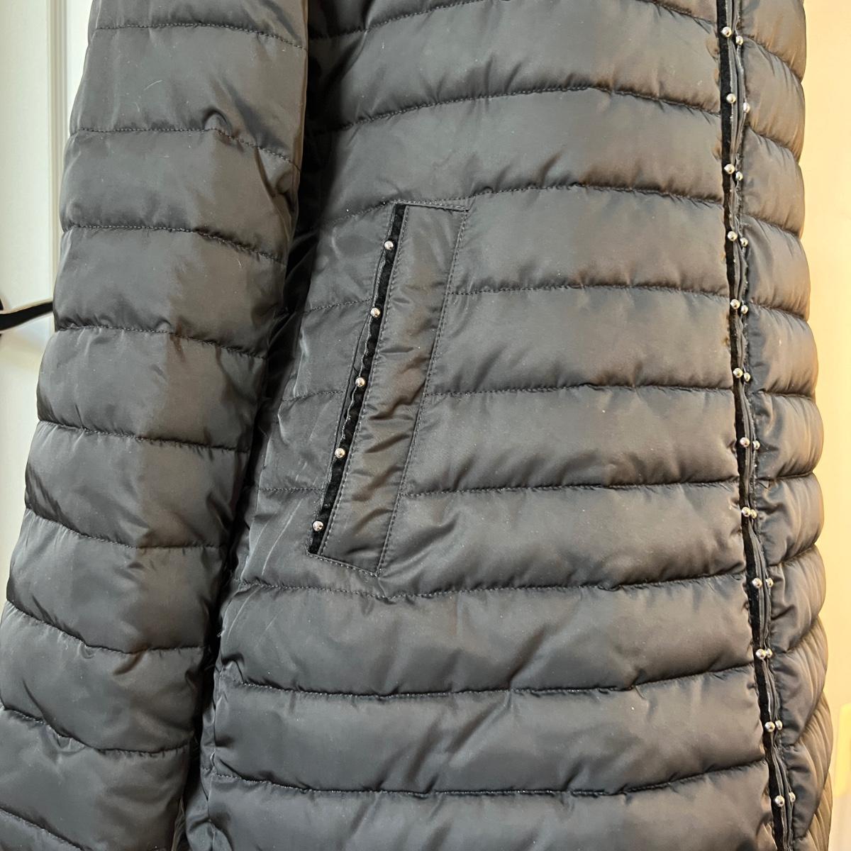 Zip-front fitted jacket with detachable hood. In good used condition. Its a size Italian 42 which the site lists as US. size 6 Medium.