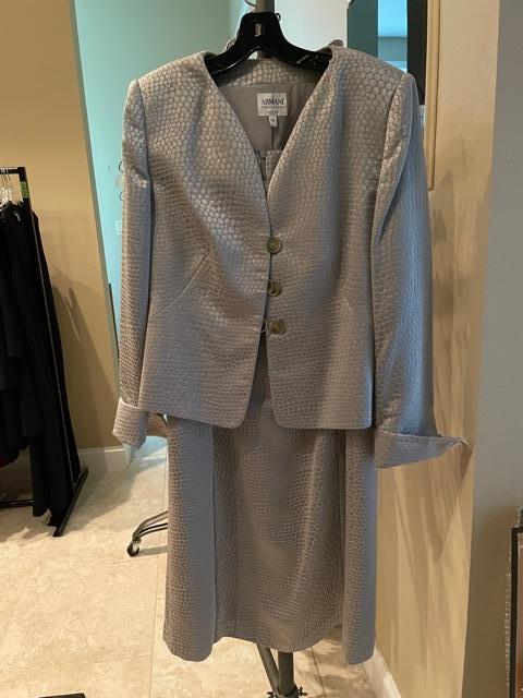 Gray/Silver Armani Jacket & Dress set. Jacket size 16, Dress size 14