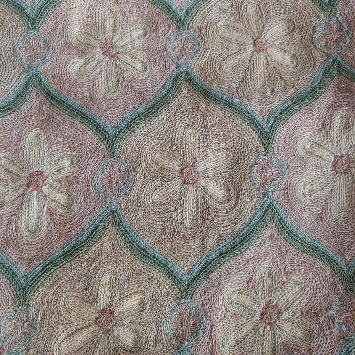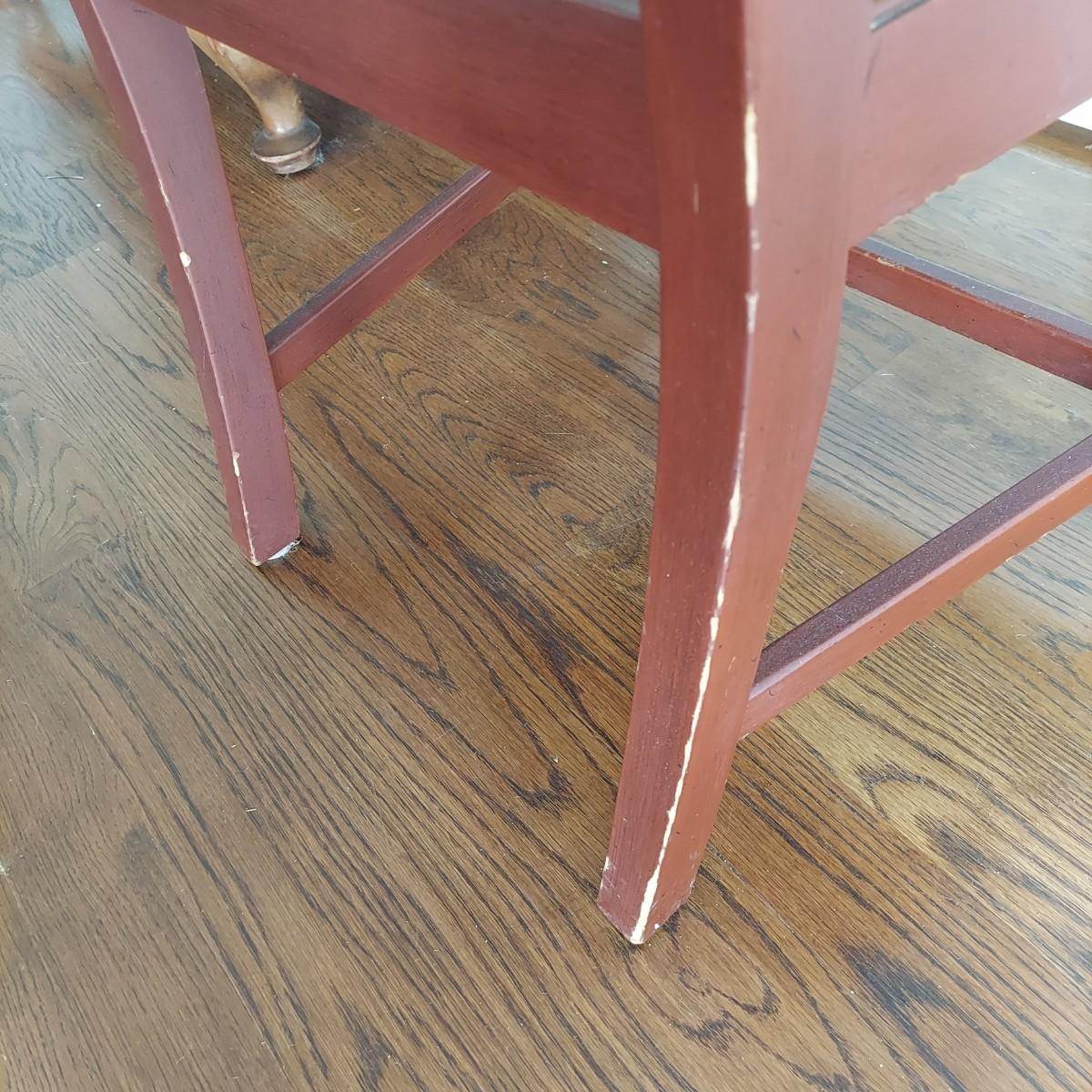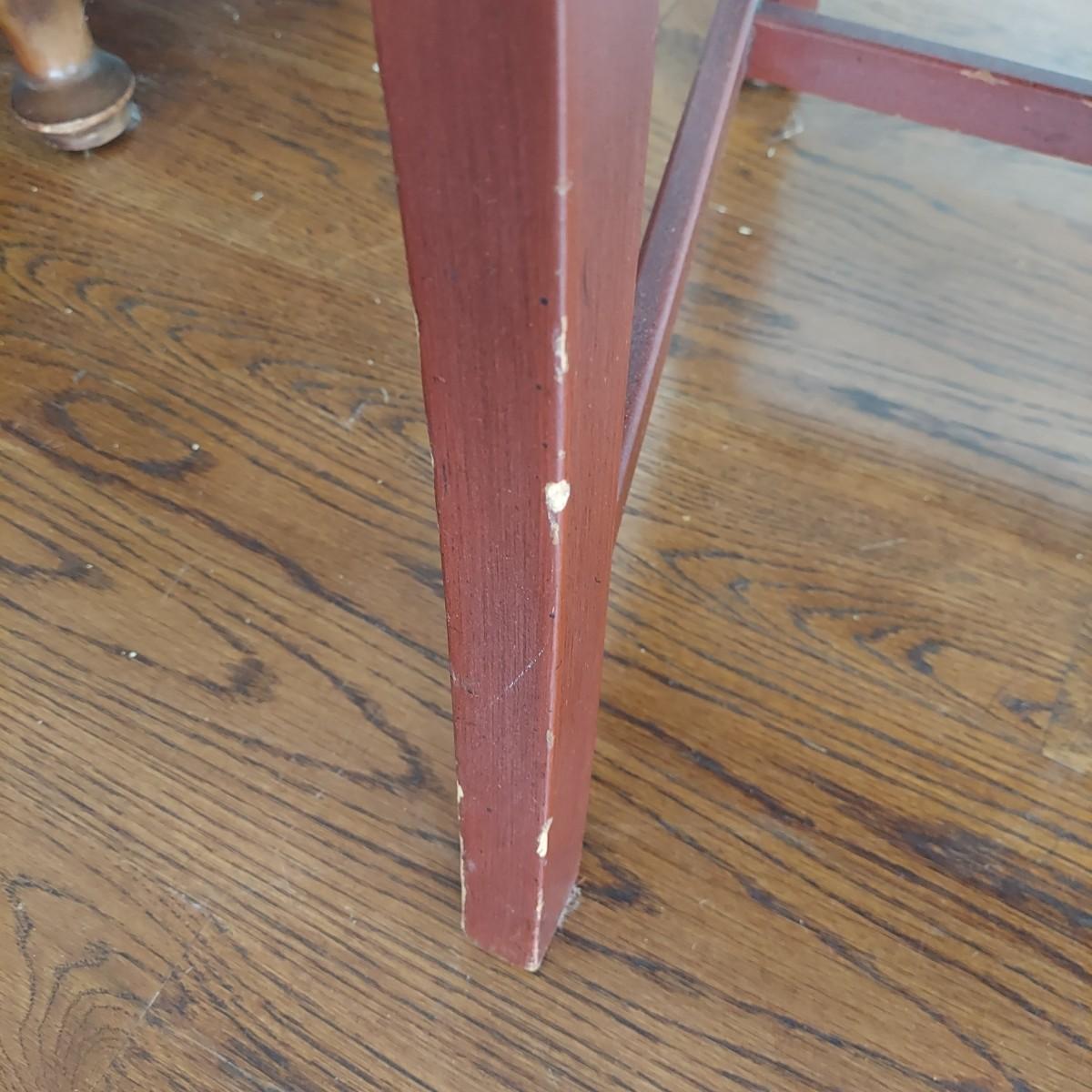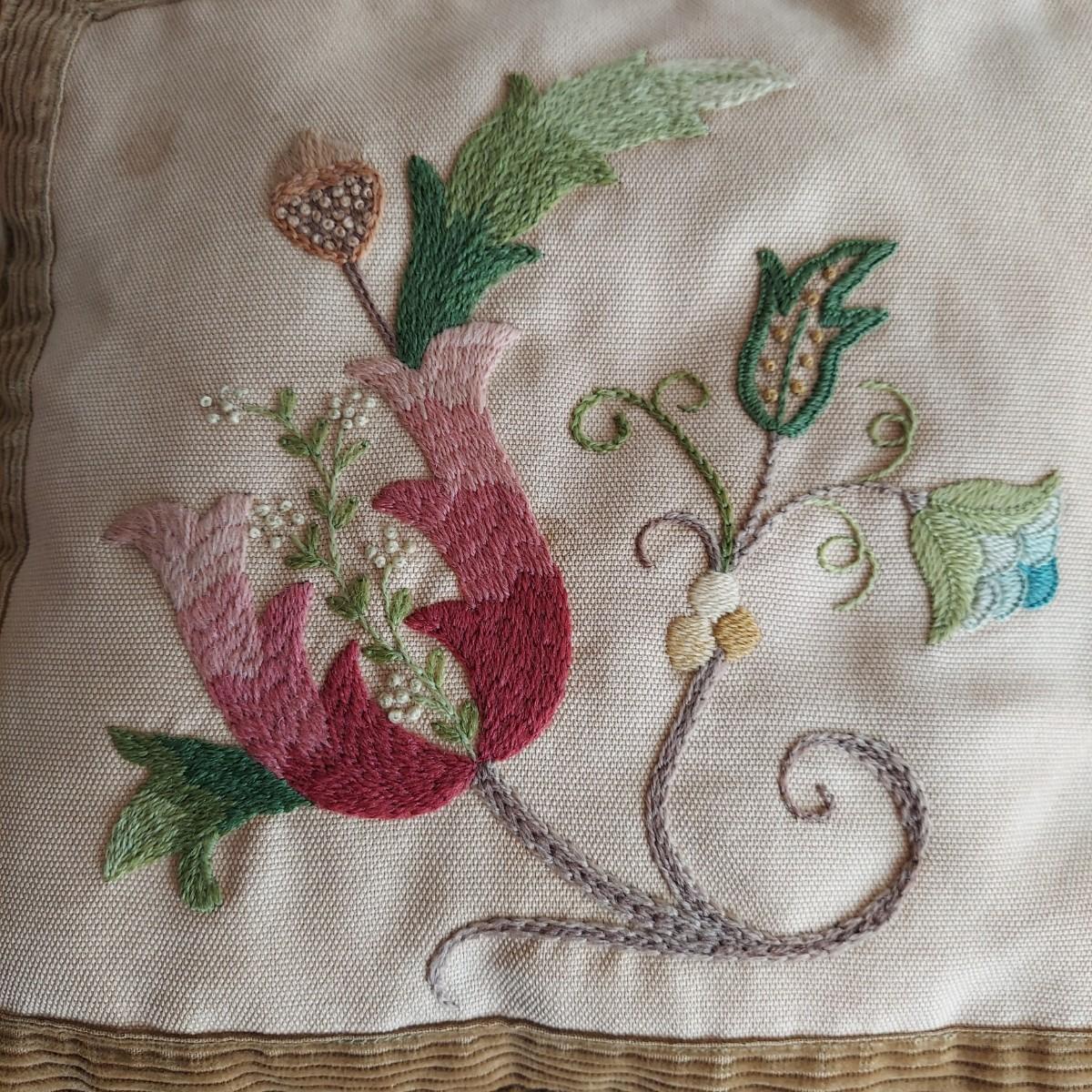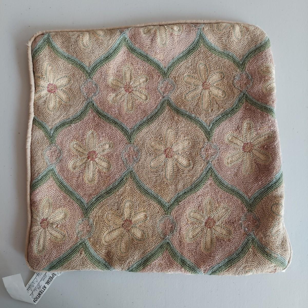Lot includes a wooden chair with a needlepoint upholstered seat cushion. Plus an embroidered pillow and a pillow cover. Per the handwritten tag, the pillow cover is 100+ years old. The chair measures 27” x 22” x 36"H w/ an 18"H seat height. Please see photos for details. Local Pickup Only