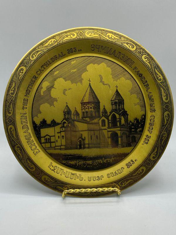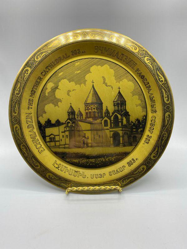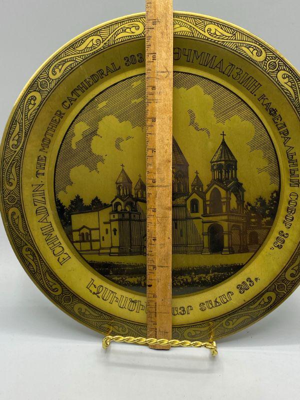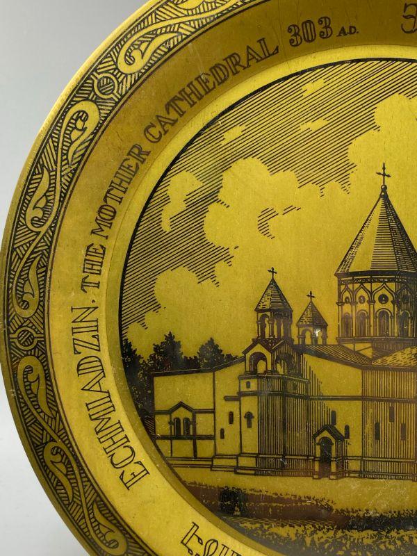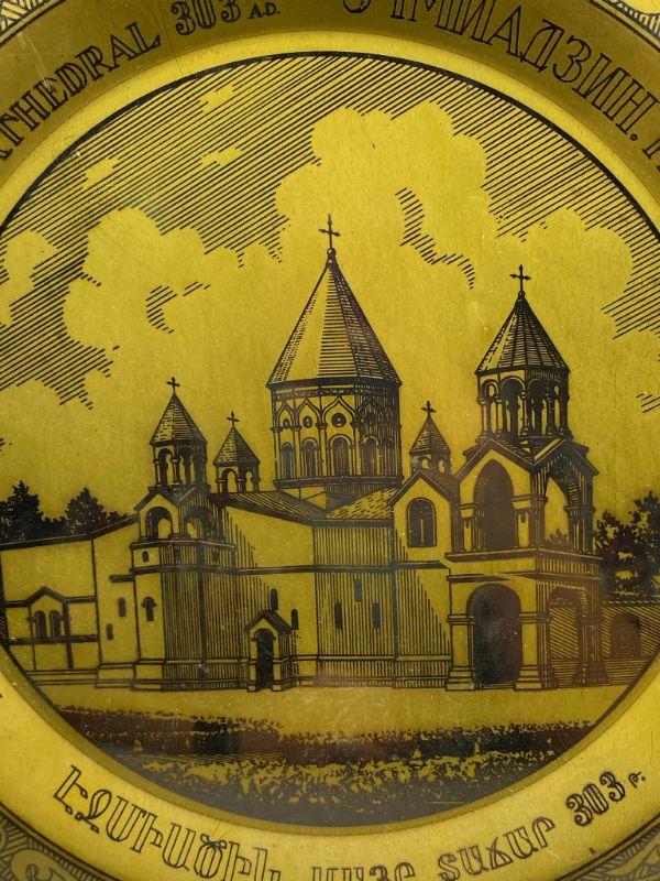 Armenian Cathedral Echmiadzin "The Mother Cathedral" souvenir plate. Metal tray is about 11" size. In good condition.