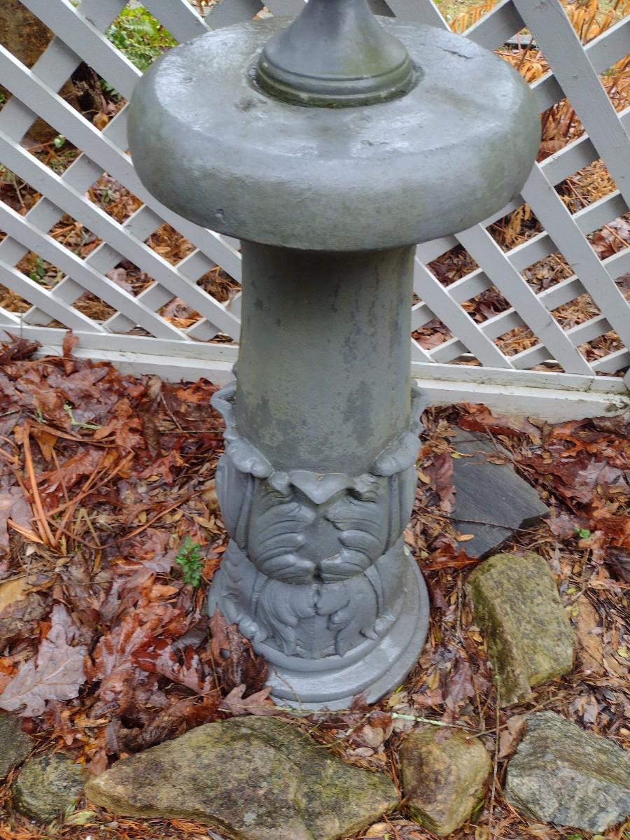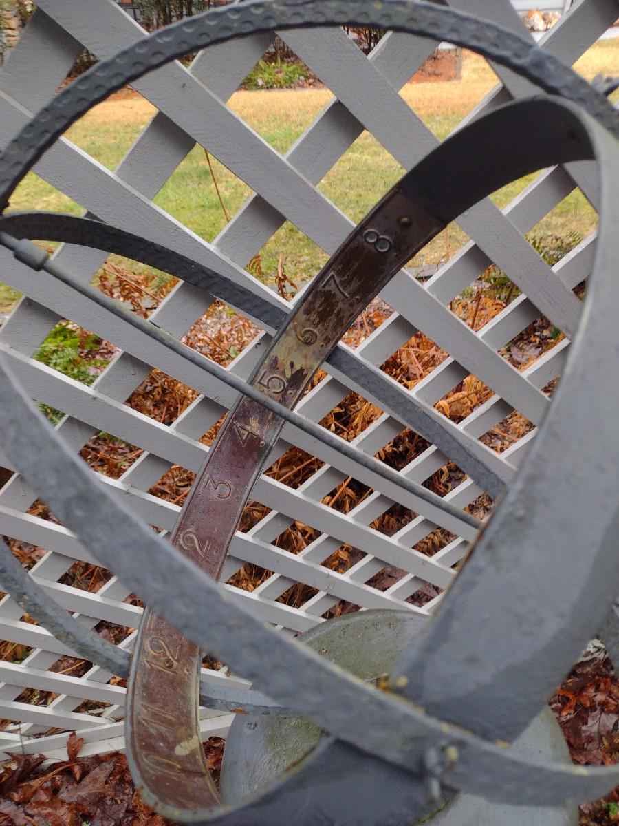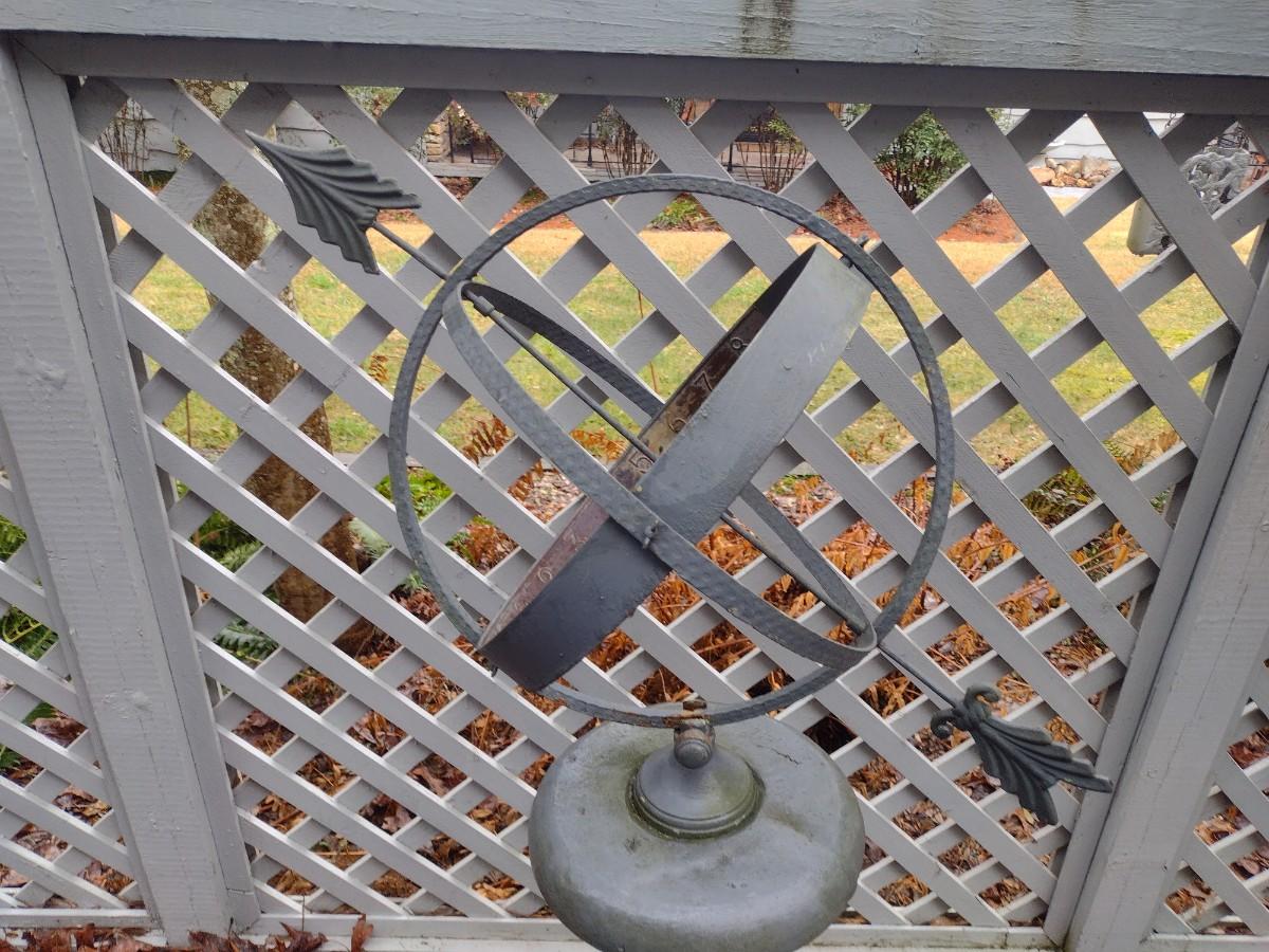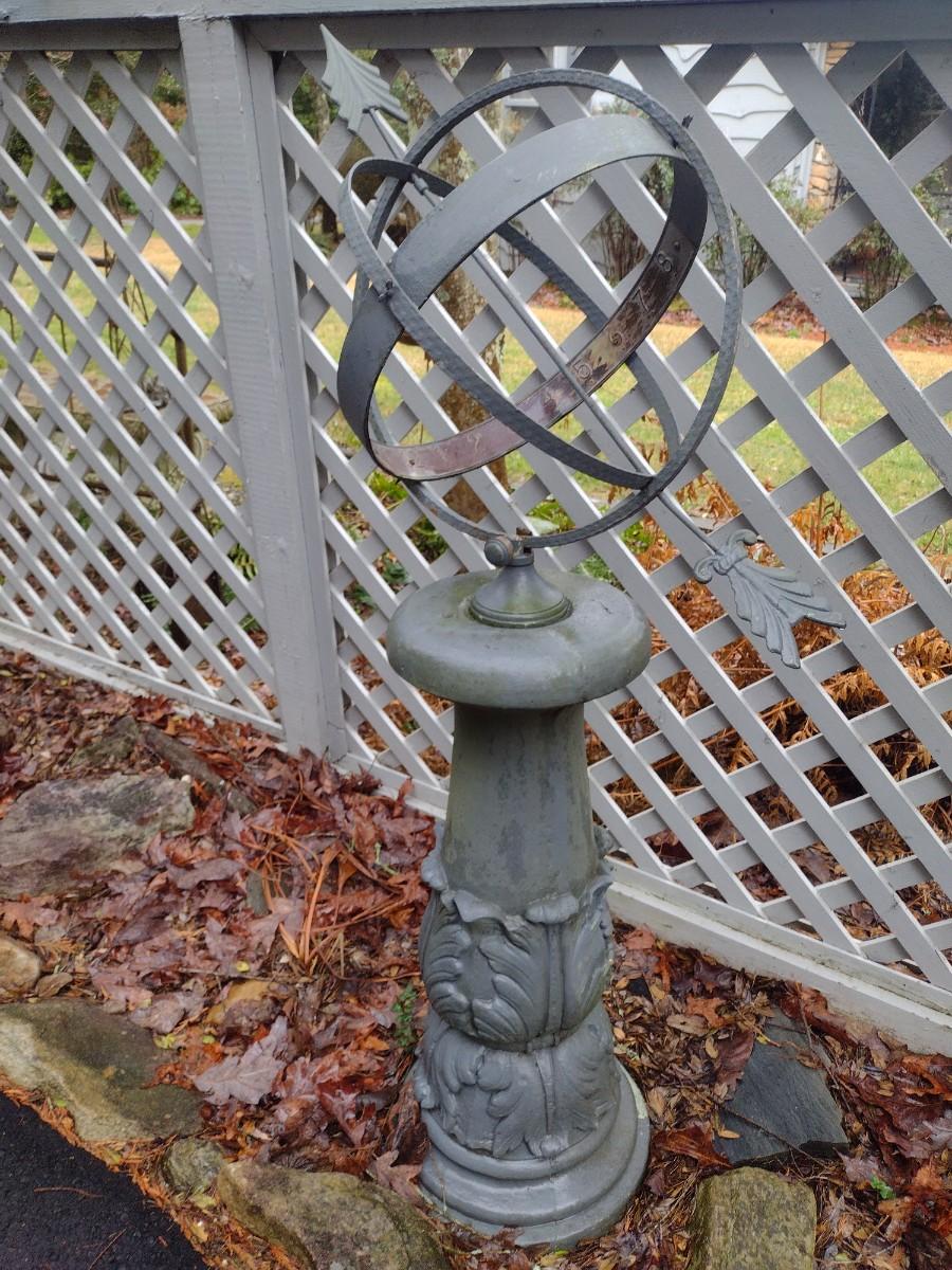 Concrete and Metal Garden Armillary. Two pieces. Bring assistance to move.