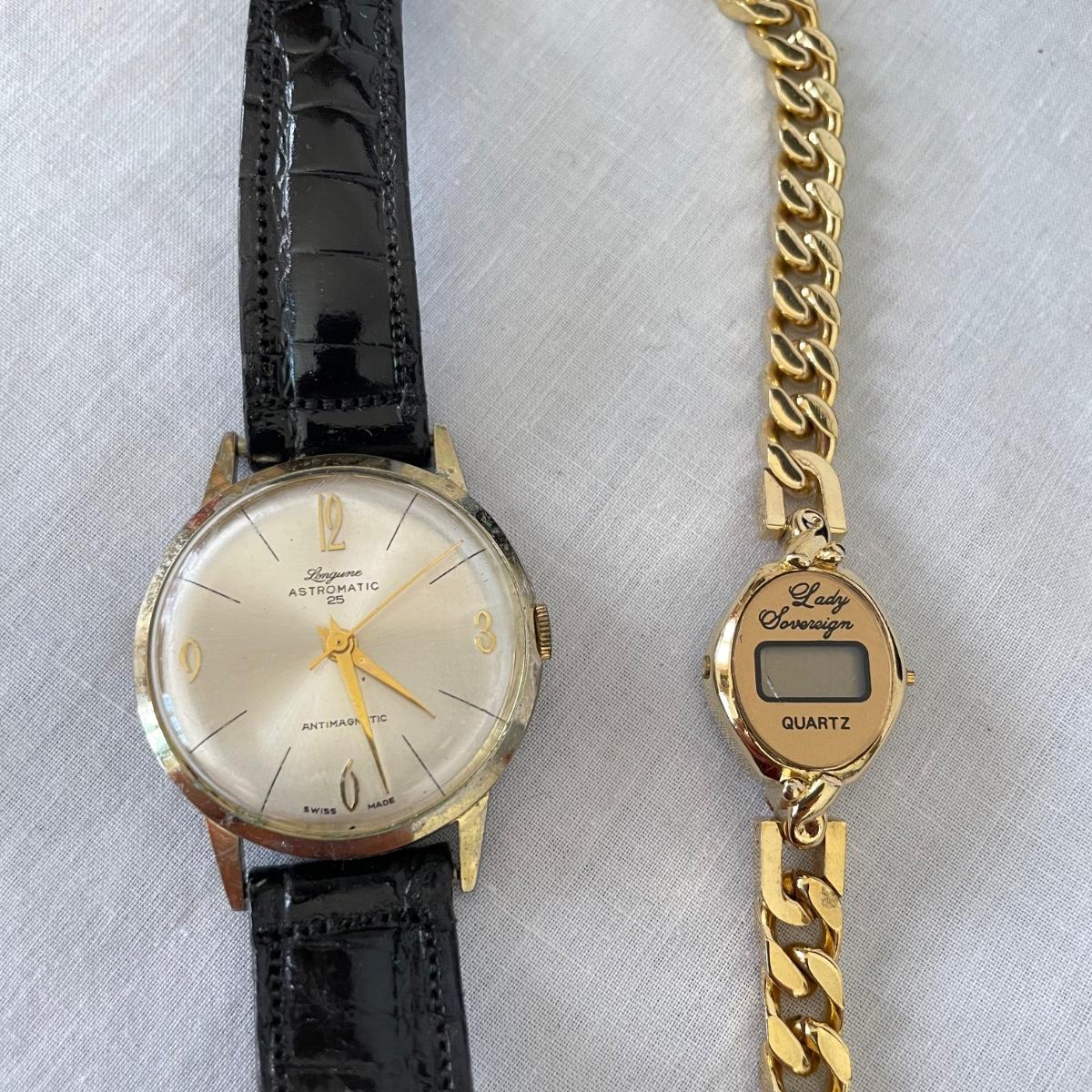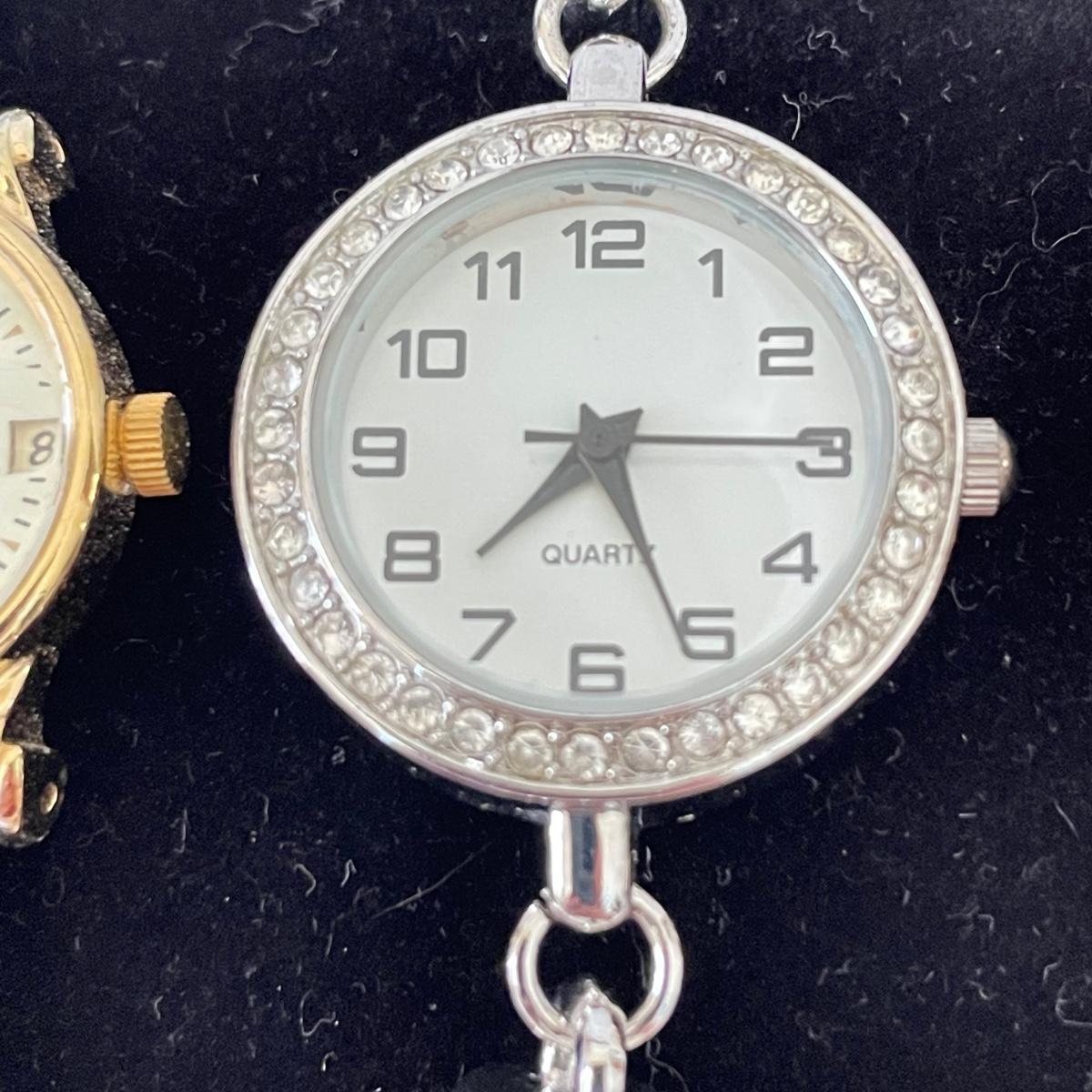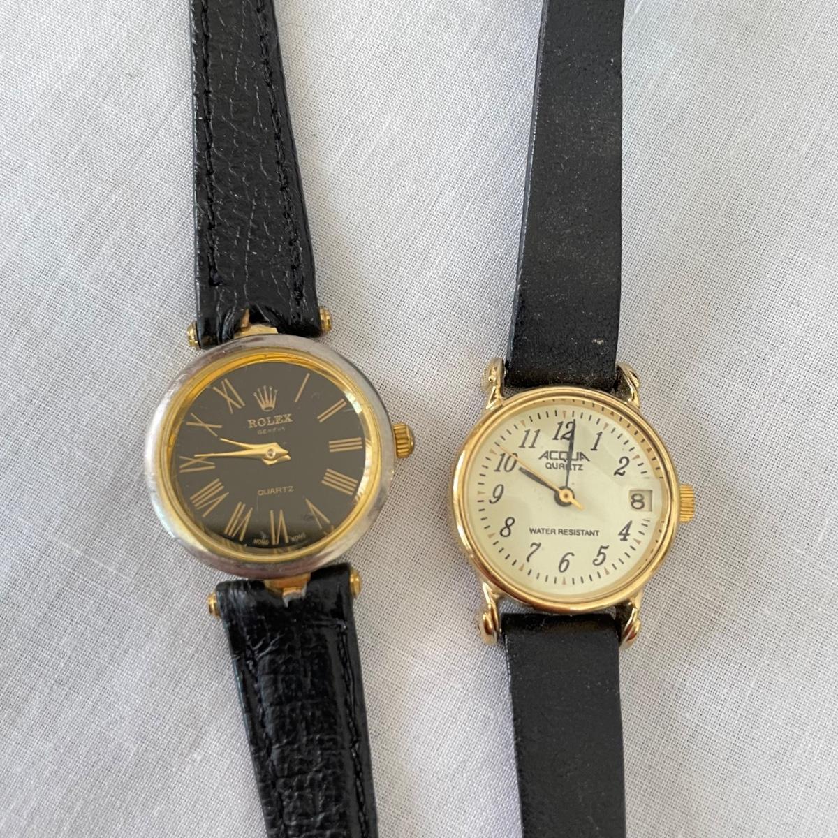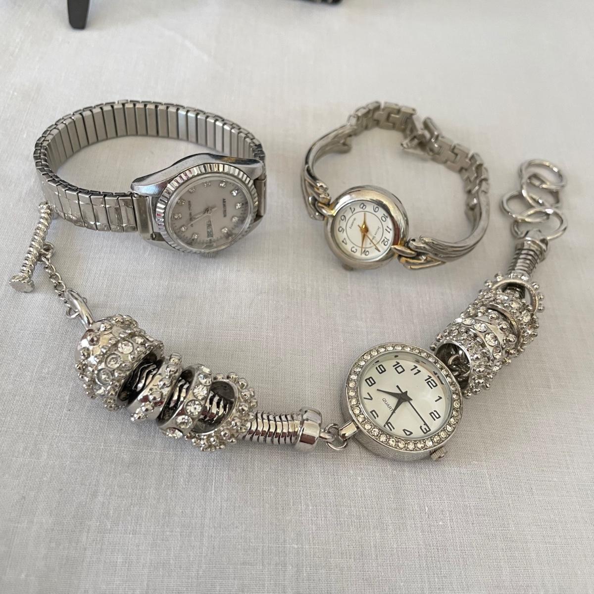 Seven watches varying from elegant to everyday styles. Brands include Armitron, Jaclyn Smith, Linguine and even a Rolex! We do not think the Rolex is genuine. Two have genuine leather markings, the third soft band is stamped Alligator. An unbranded Quartz watch has ten charms. No watches were tested, we believe they need new batteries. See images. Shipping available. All sales are final. No returns or refunds. Please bid accordingly.