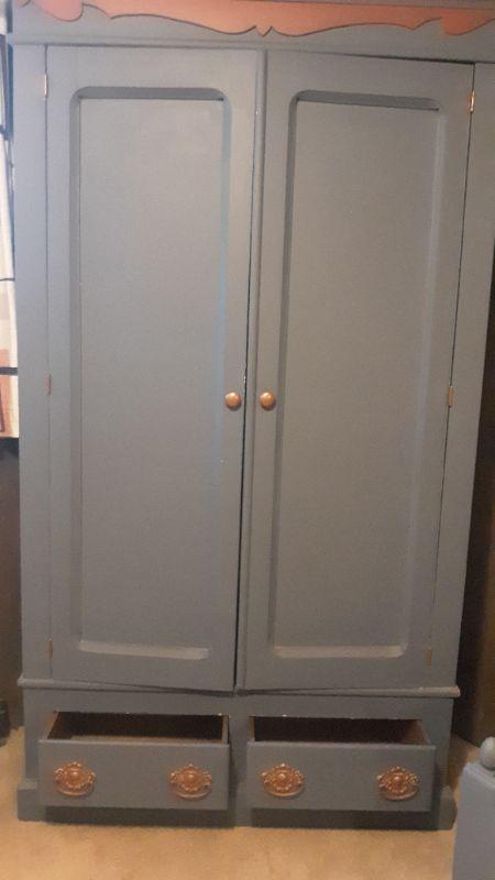 WOODEN 2 DOOR-2 DRAWER CABINET WITH SHELVES.