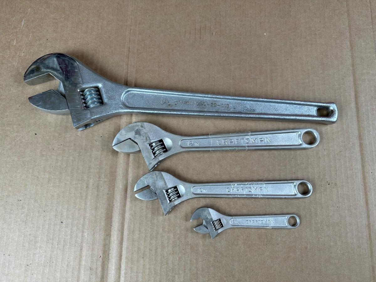 Armstrong & Craftsman Adjustable Wrench Lot – 4 Pieces (6”–18”)