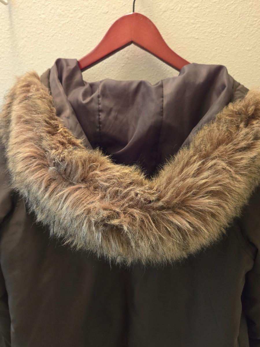 Army Green Faux Fur Lined Hooded Coat