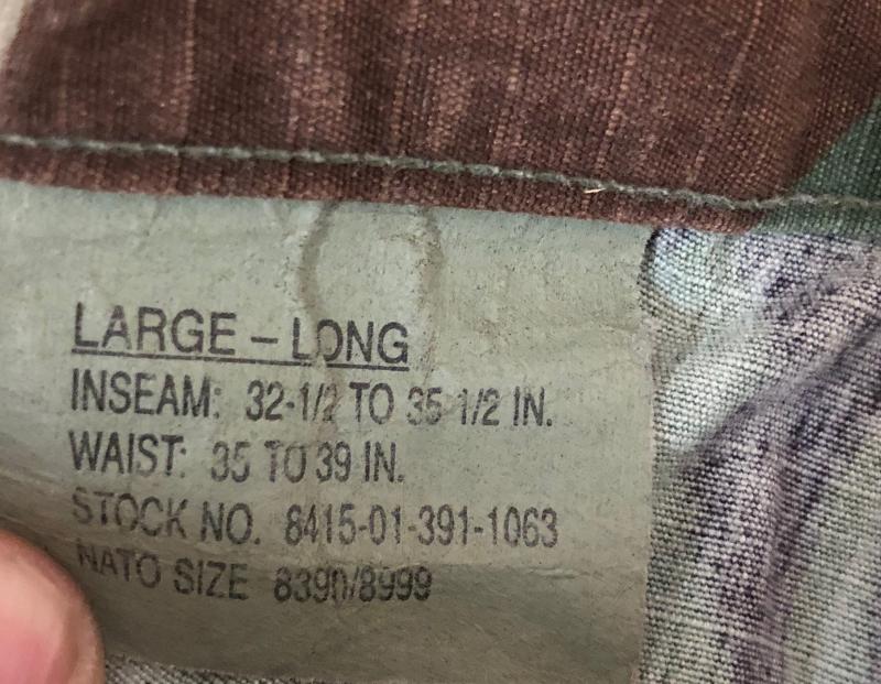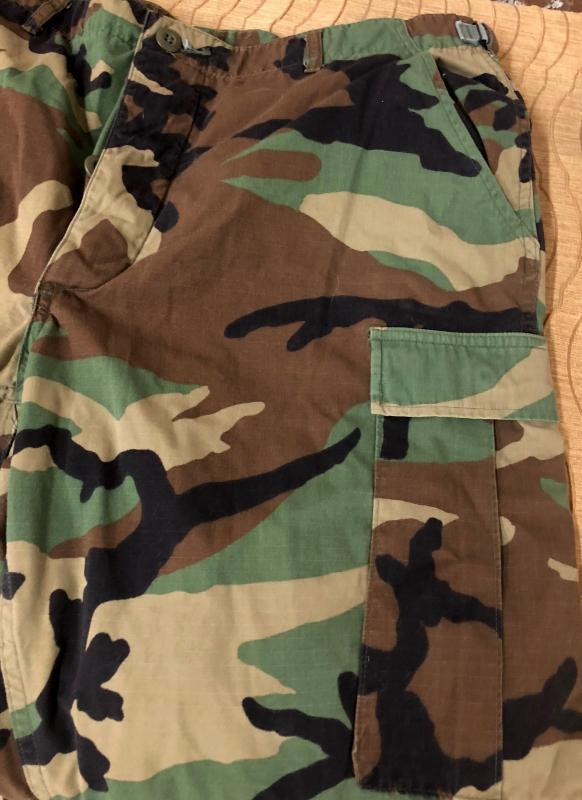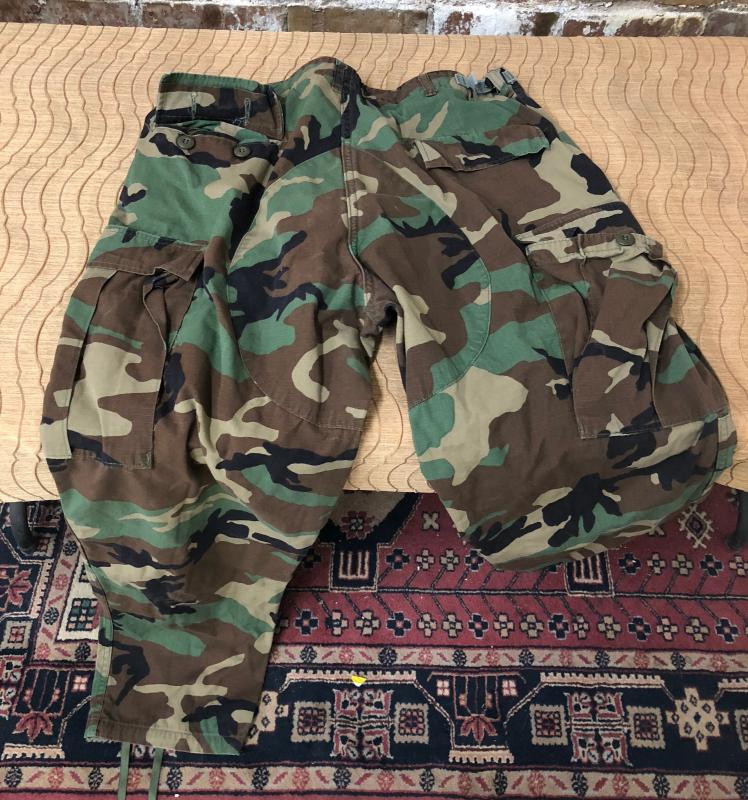 LARGE-LONG pair of Army surplus BDU camo pants...Inseam 32 1/2 to 35 1/2"..Waist 35-39"...