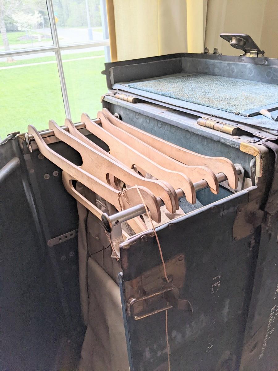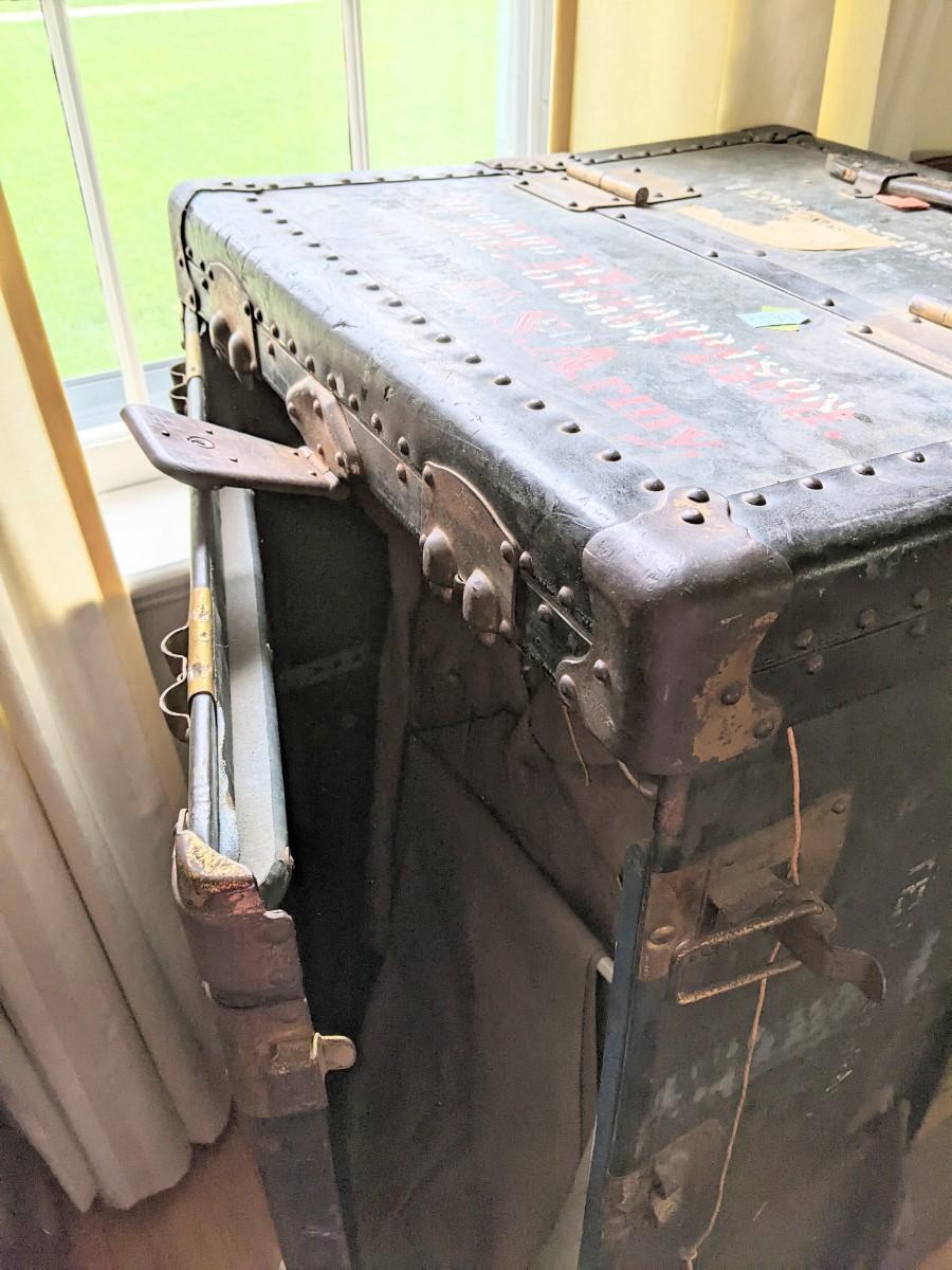 Purchased on site. Army wardrobe trunk Wooden hangers drawers