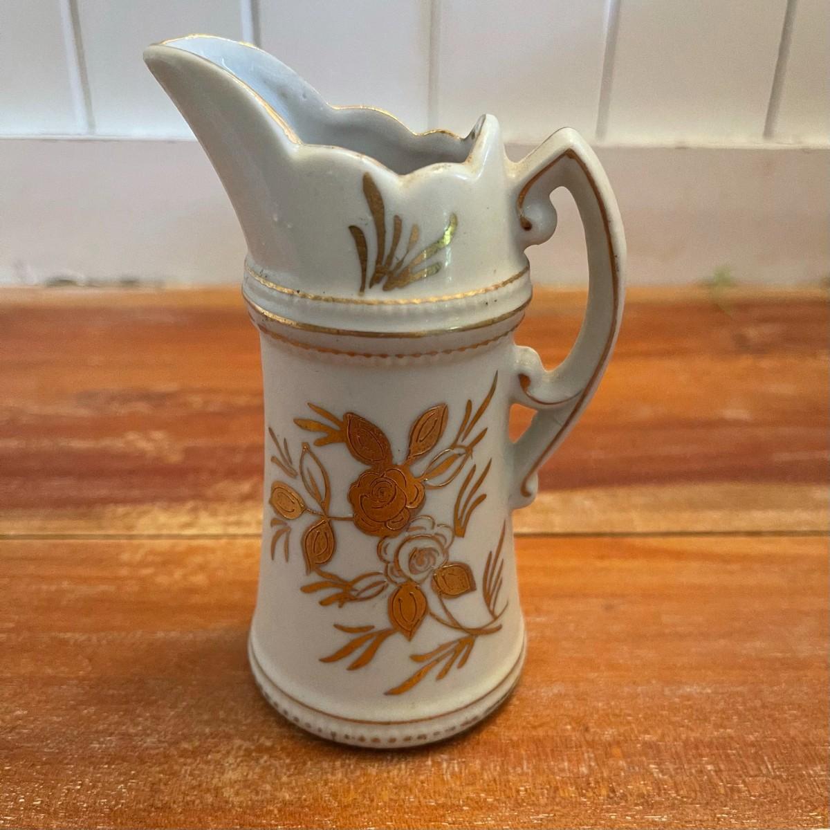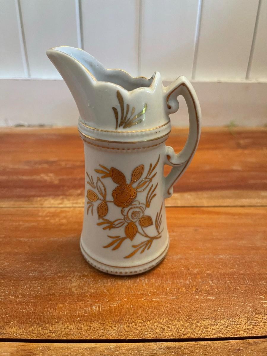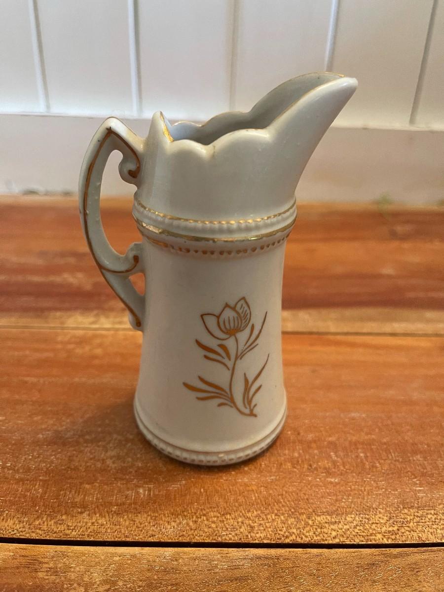 Arnart Creations, Small Pitcher/Vase, White with Gold floral accents
