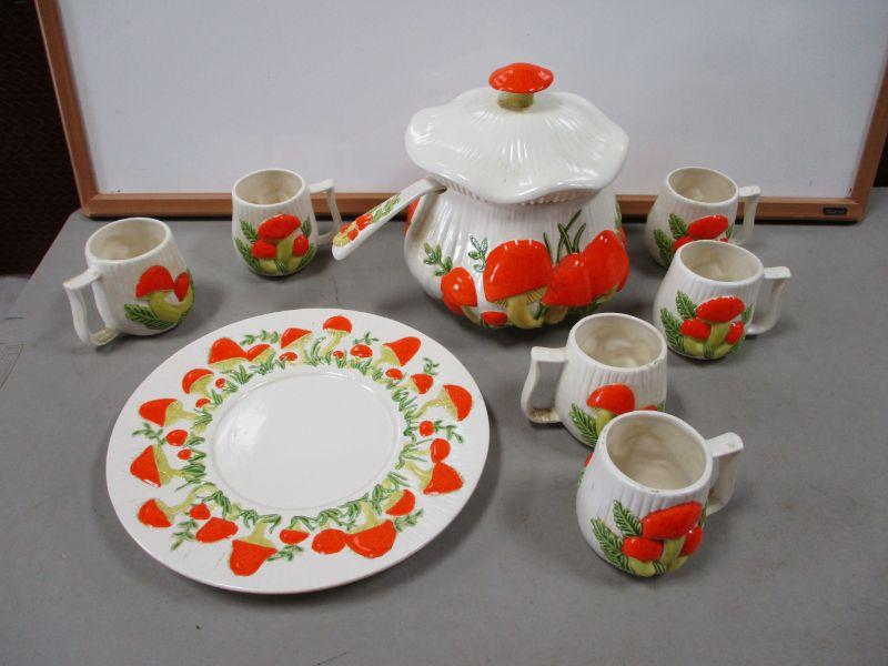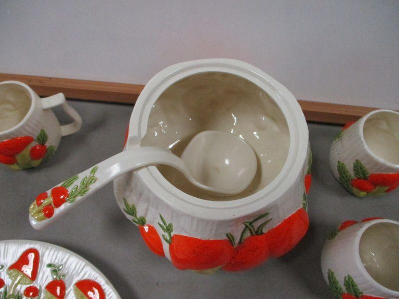Soup tureen, plate and soup mugs