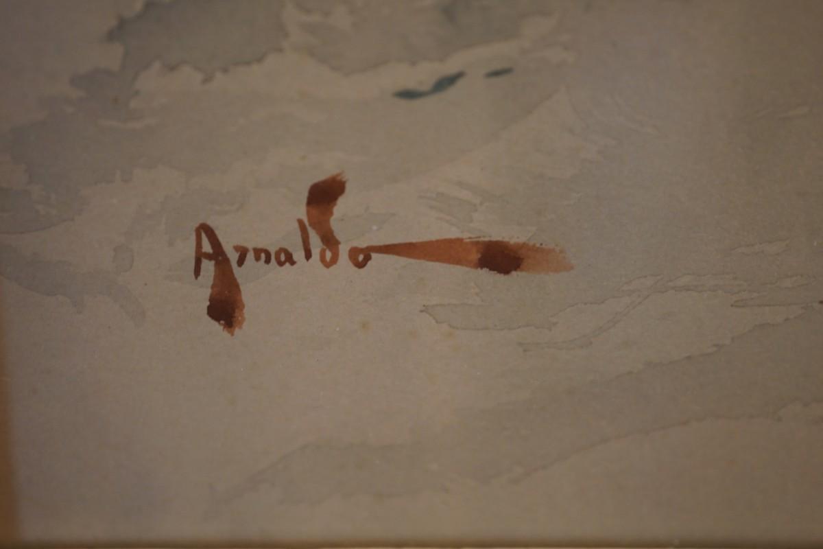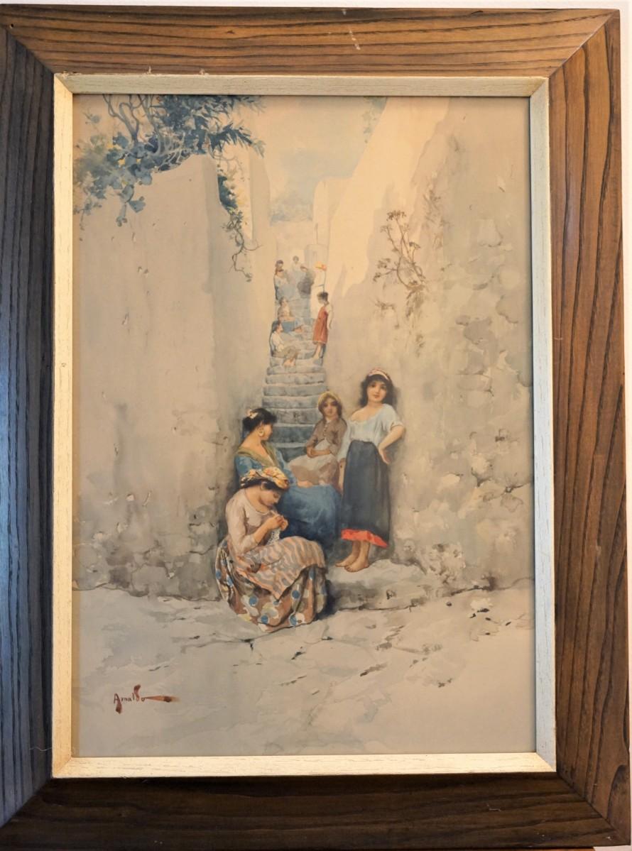 Signed lower left original watercolor Arnoldo Italian artist.late 19th century and early 20th century.