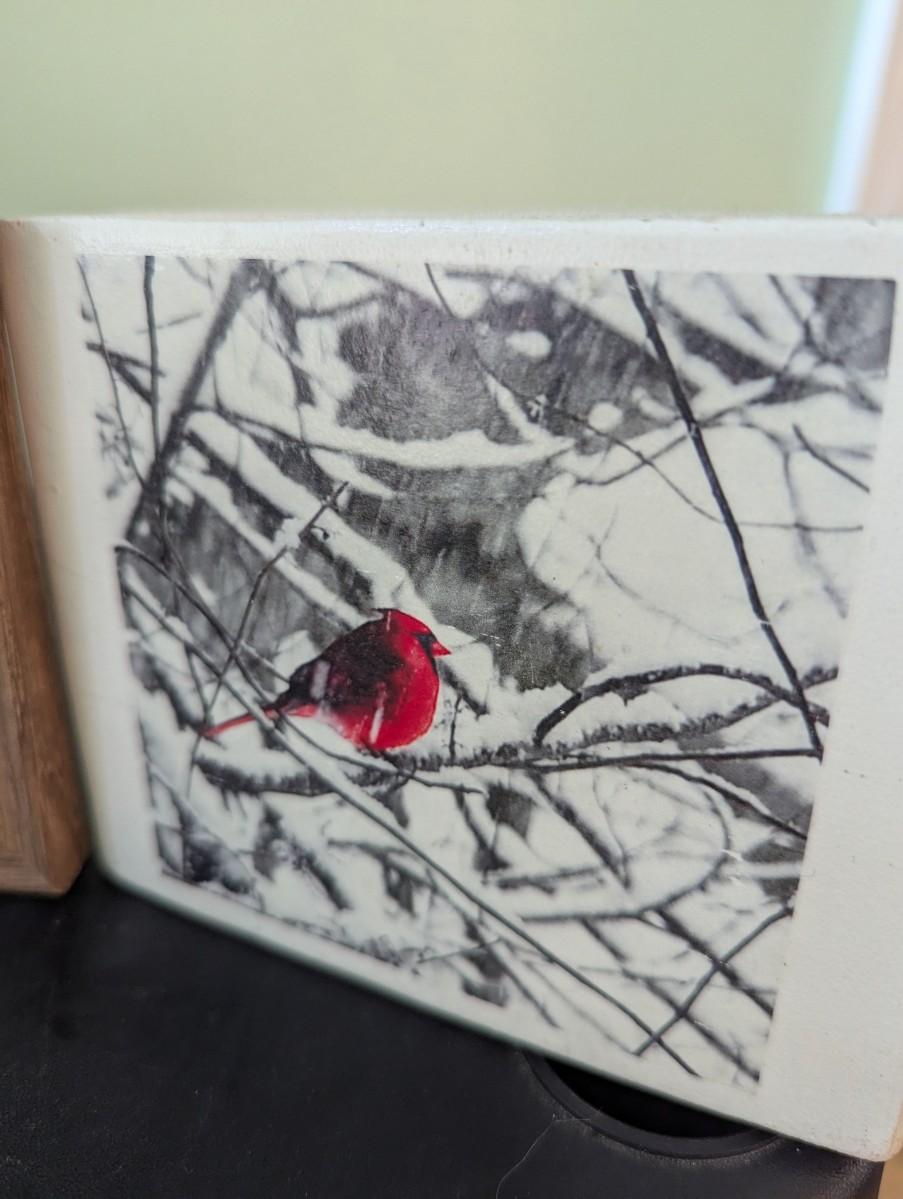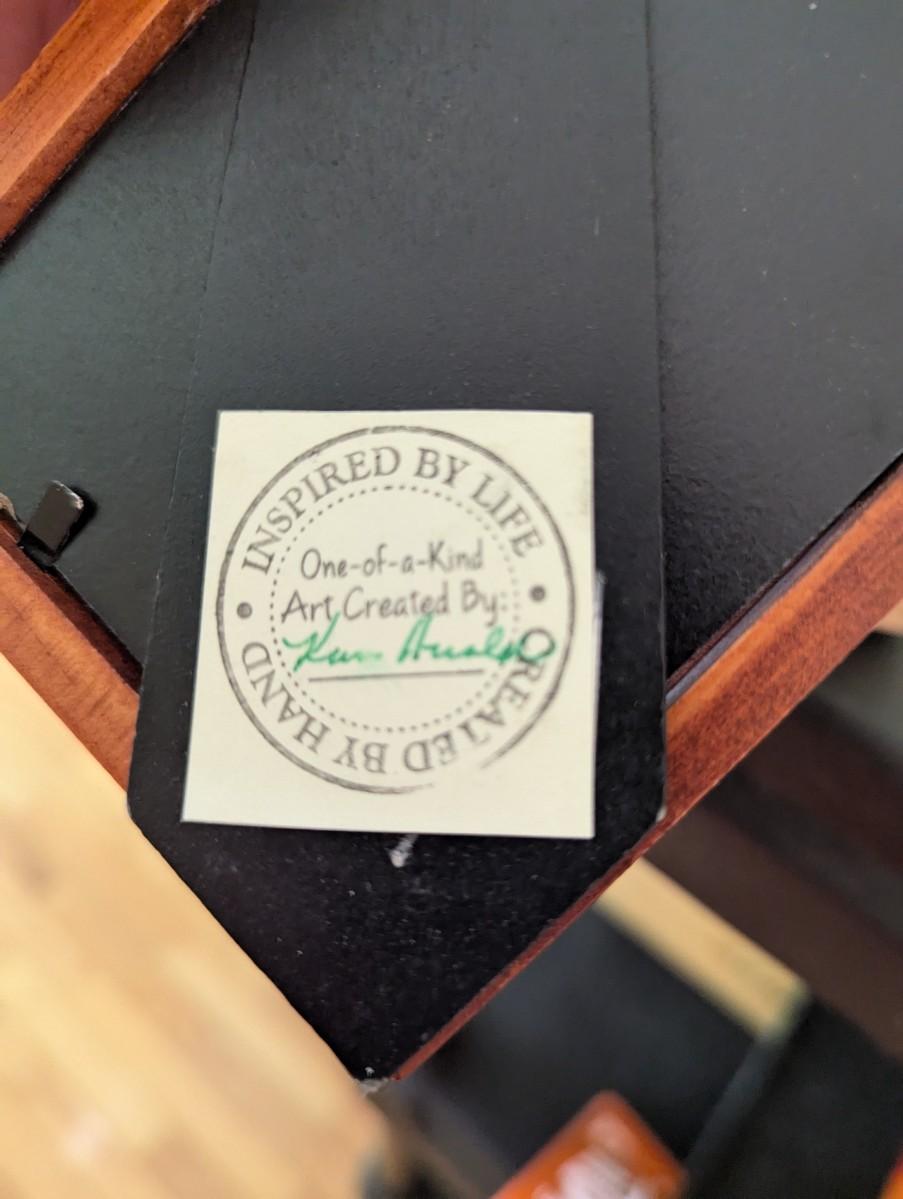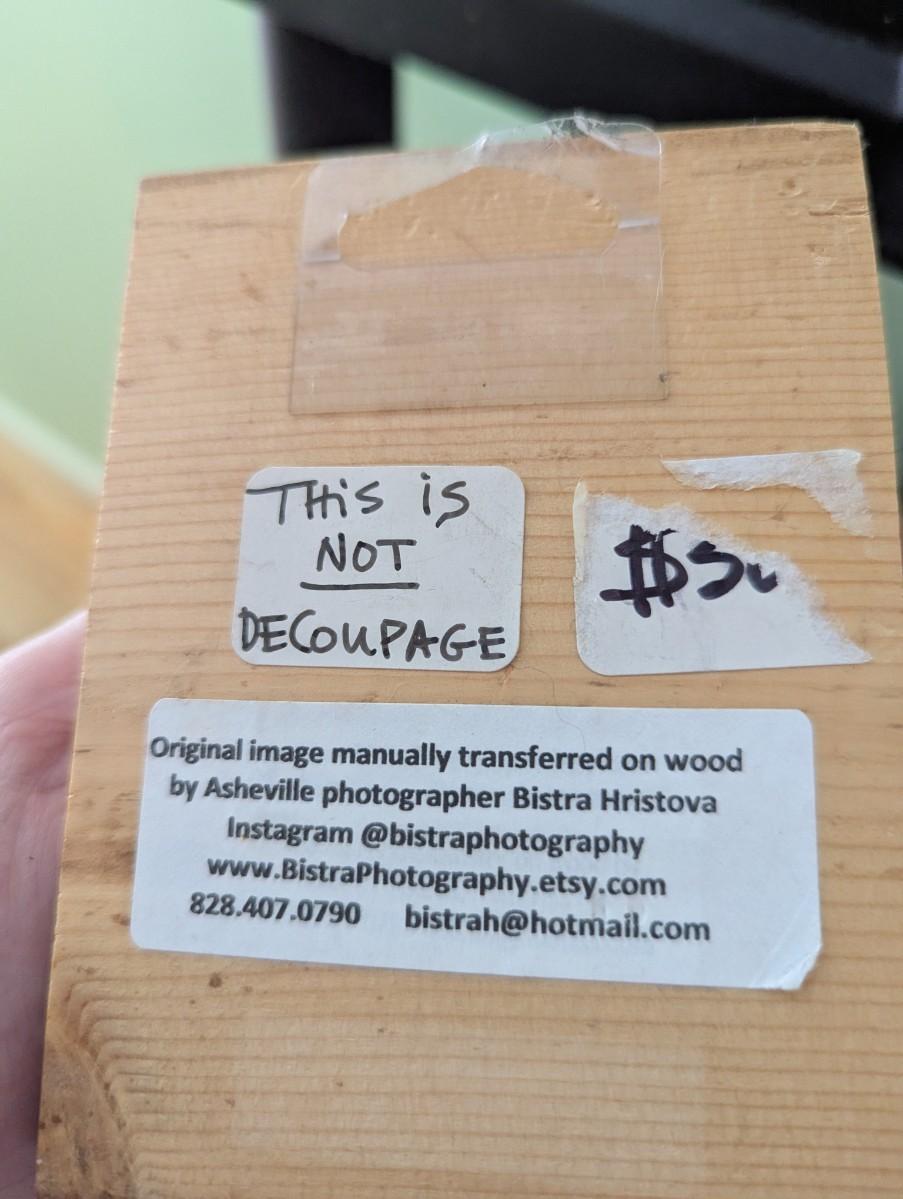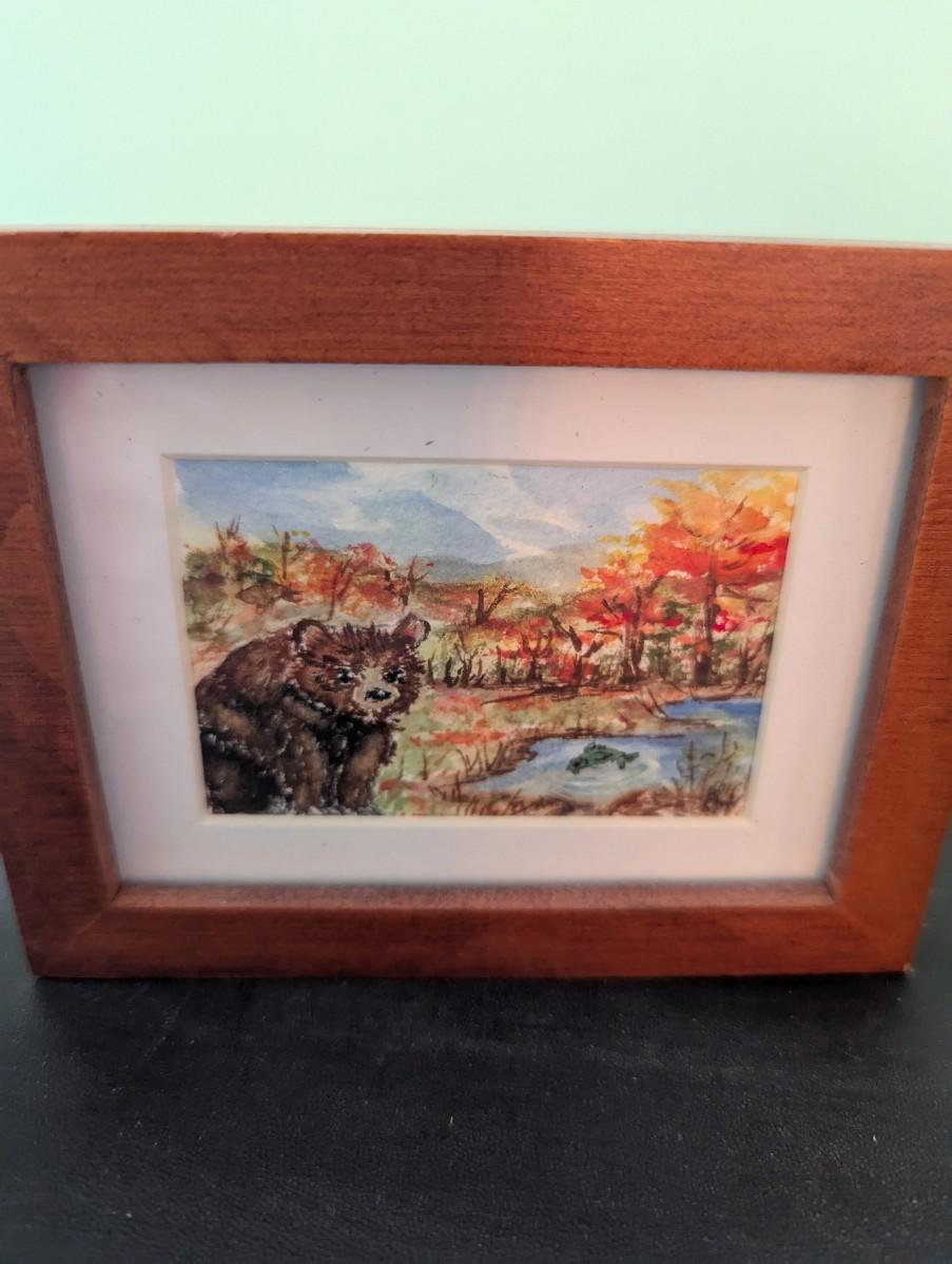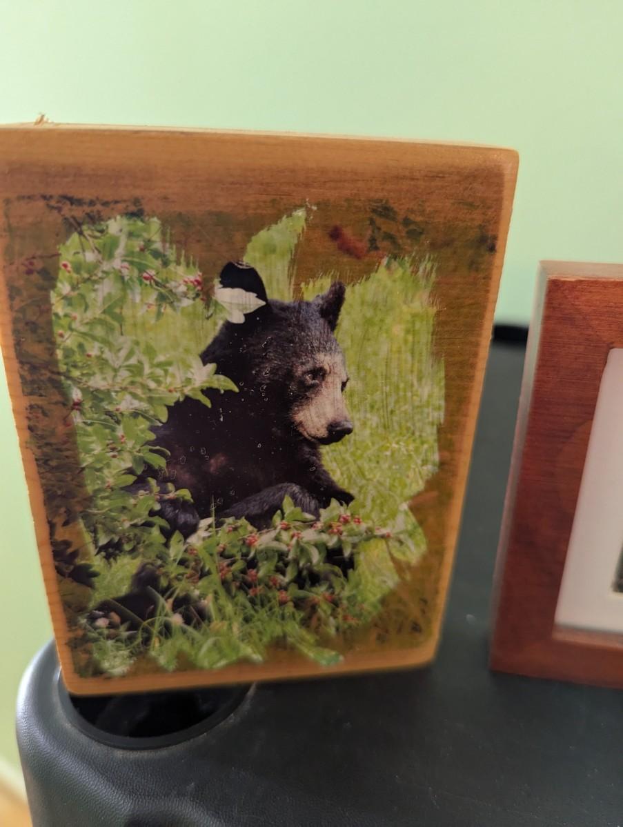 The bear plaque is an original image transferred on wood