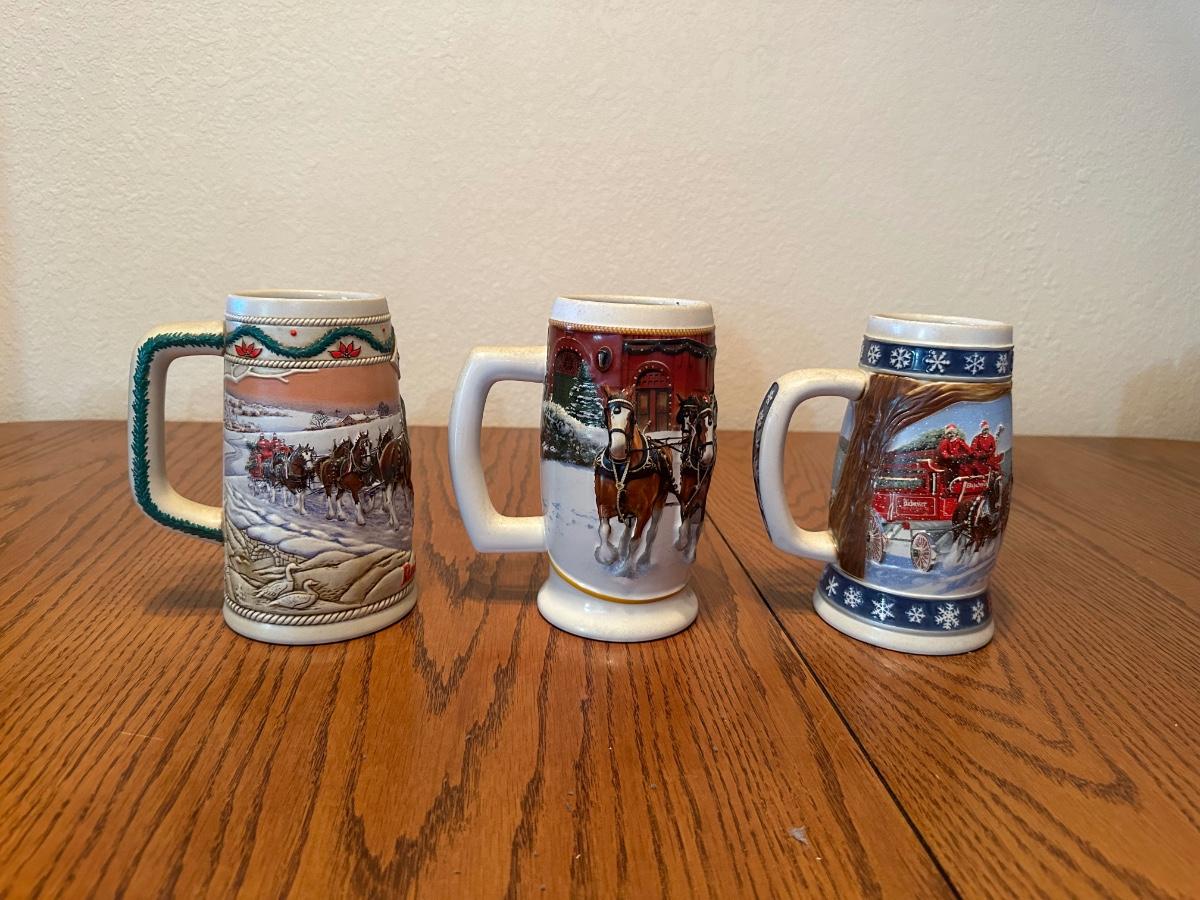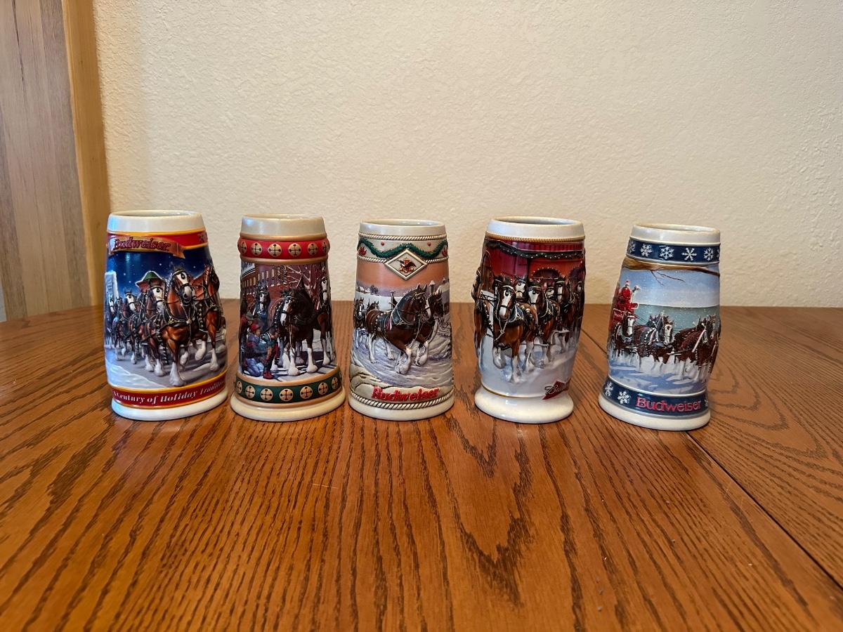 ARRAY OF BUDWEISER STEINS