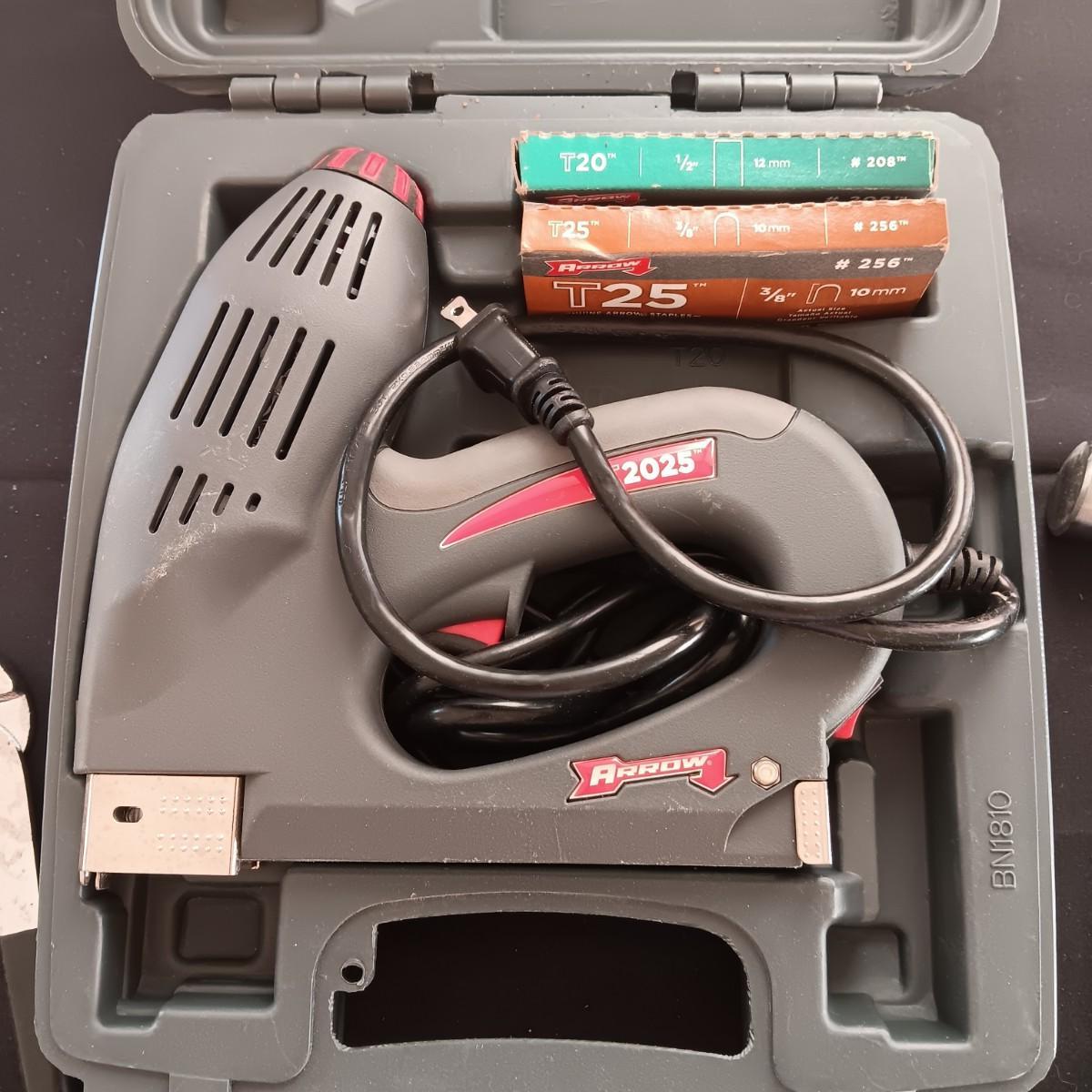 ARROW ELECTRIC STAPLE GUN, HAMMER, CHANNEL LOCK PLIERS AND SCREWDRIVERS