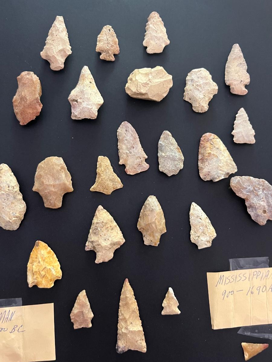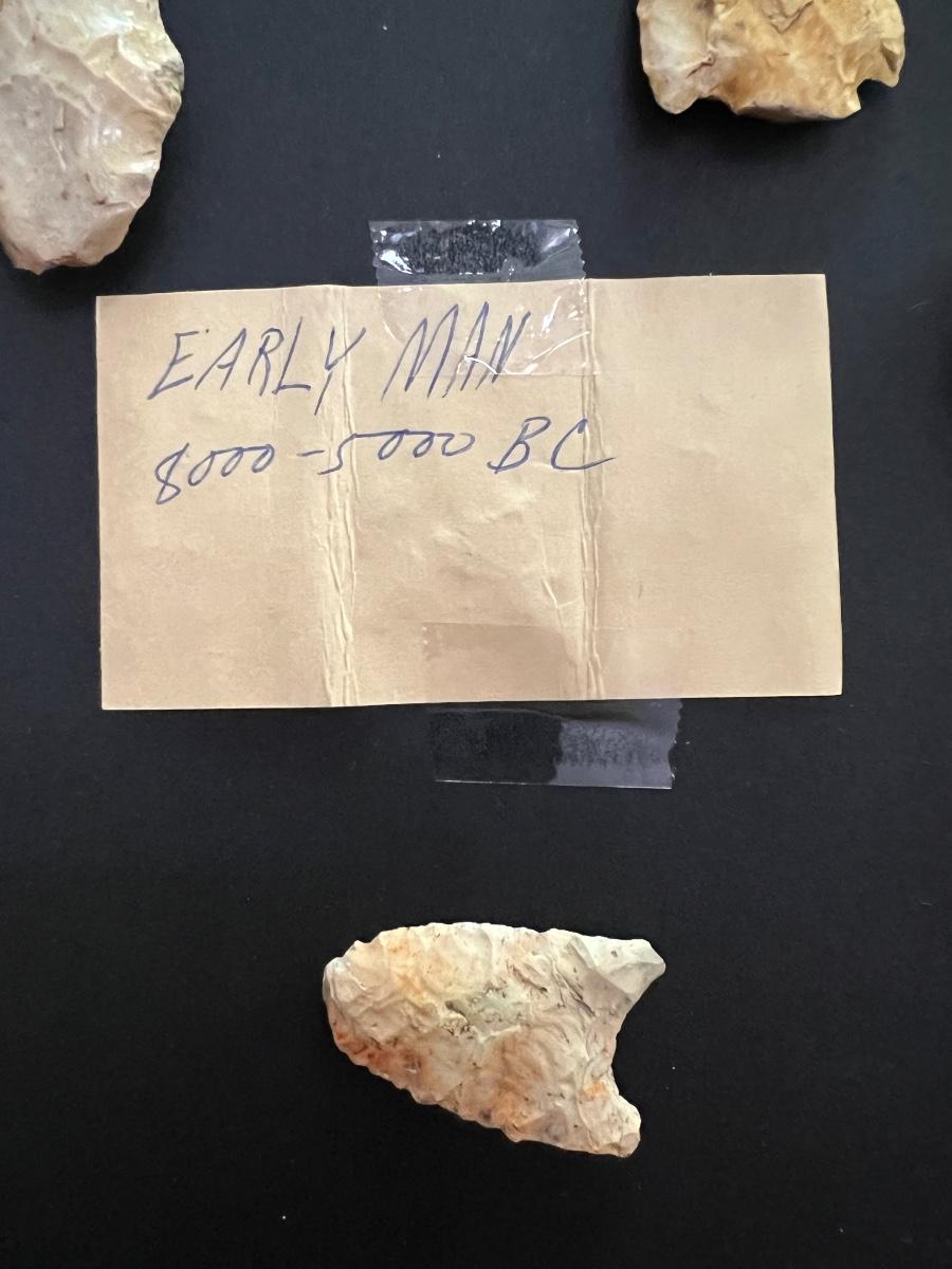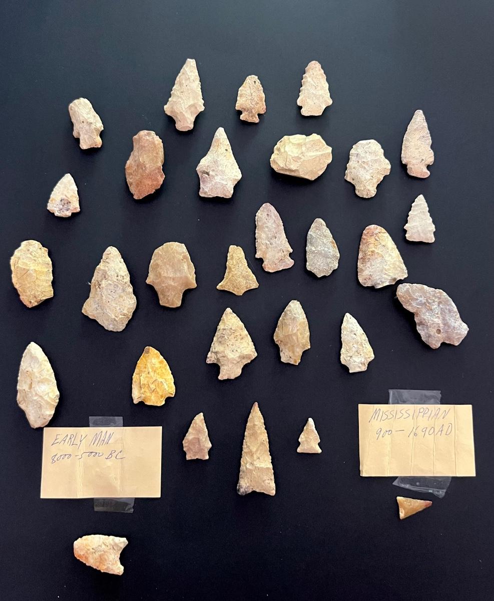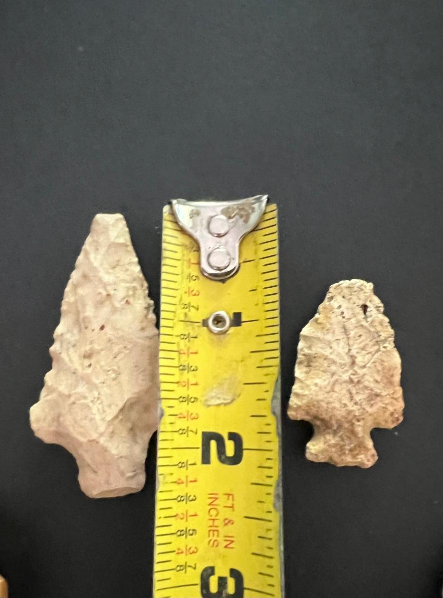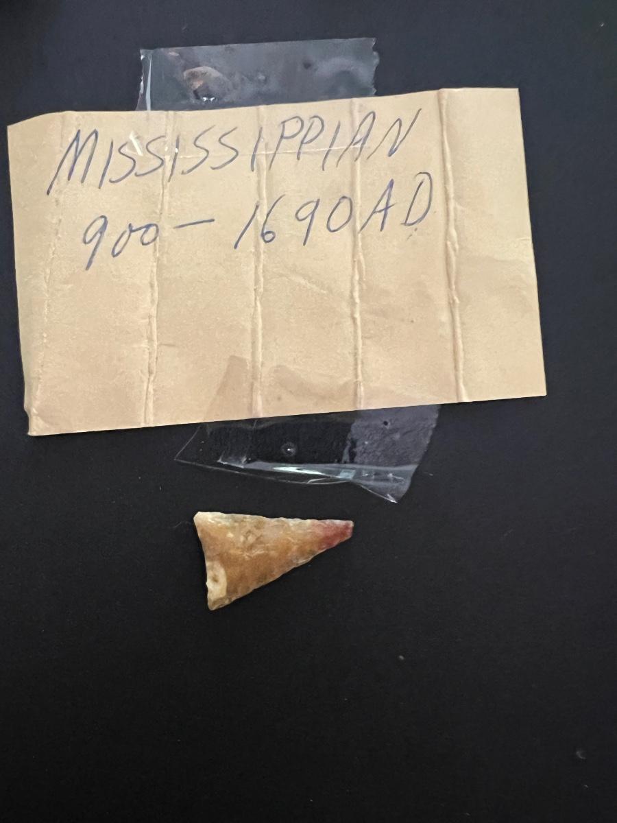29 arrowheads are in this lot. Only two were wrapped and marked separate. One says MISSISSIPPIAN 900-1690AD. Other reads Early Man 8000-5000 BC. We have no way to verify this. See hand written notes. See pictures for general size information.